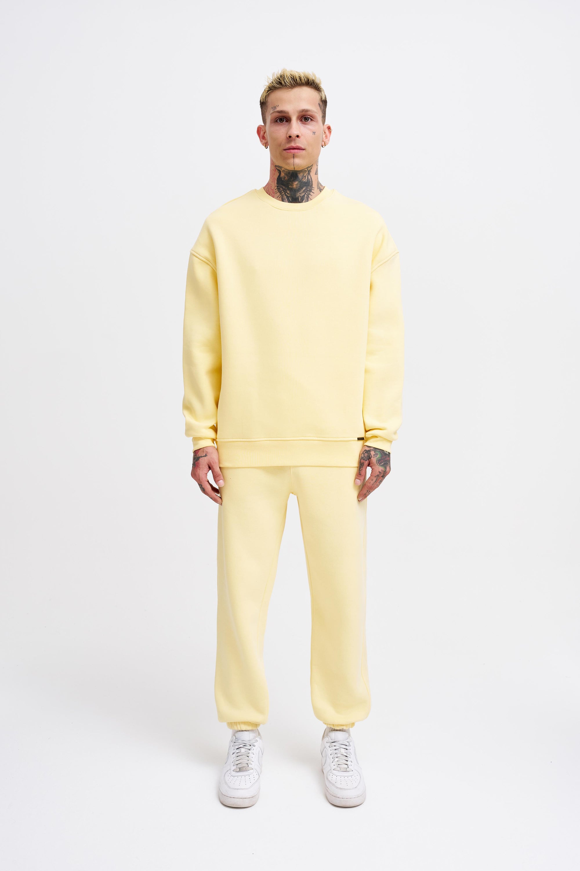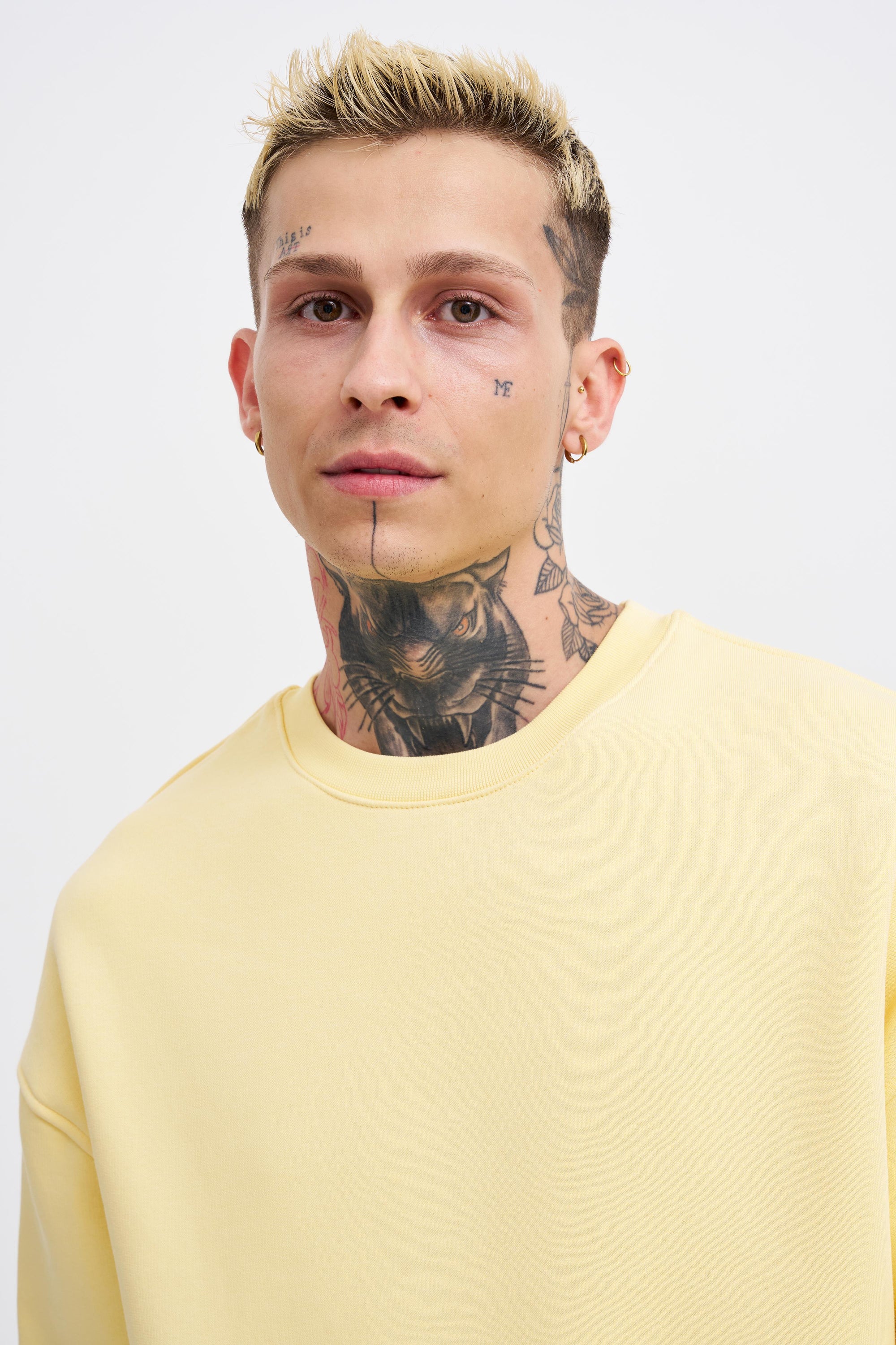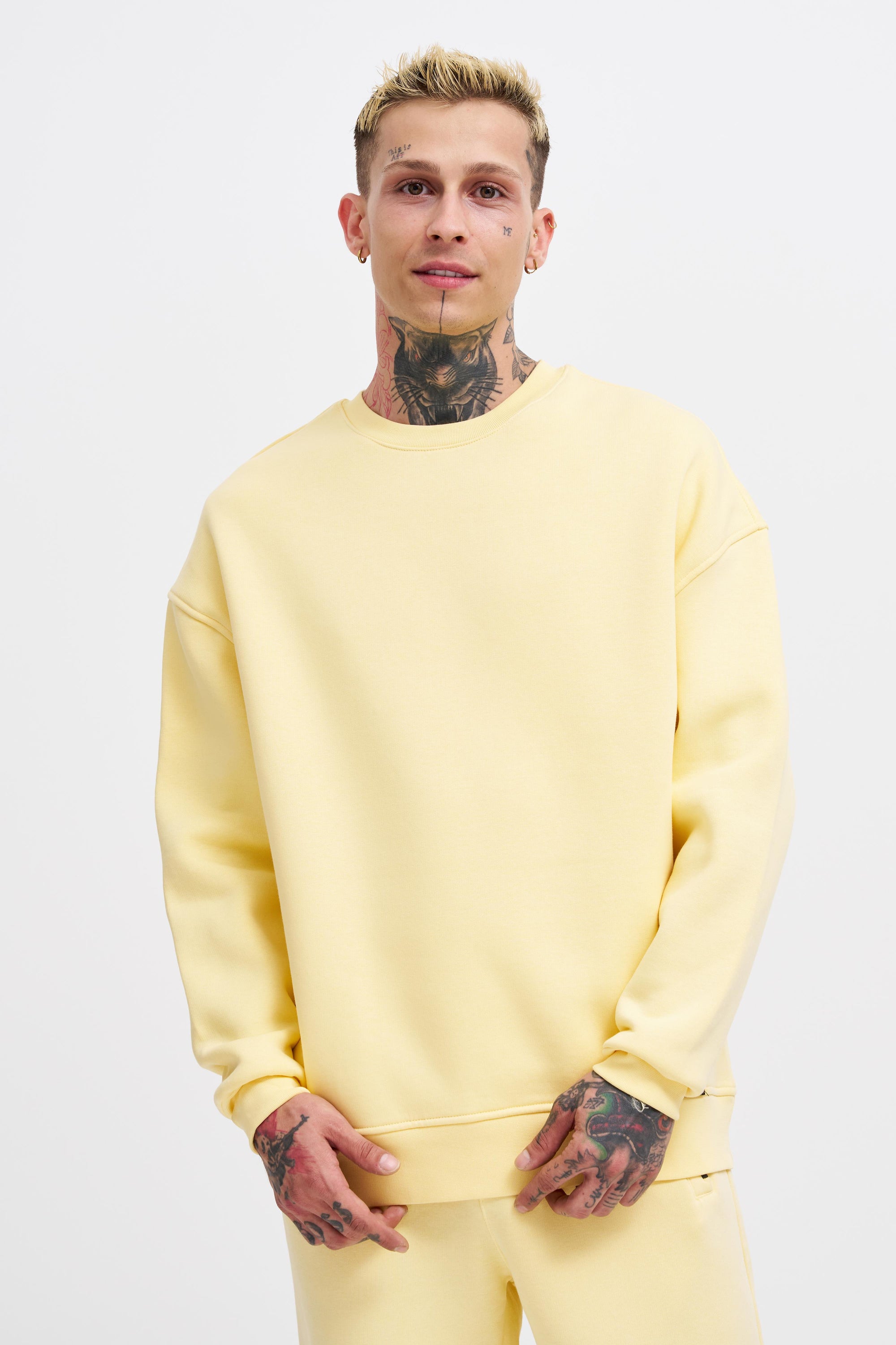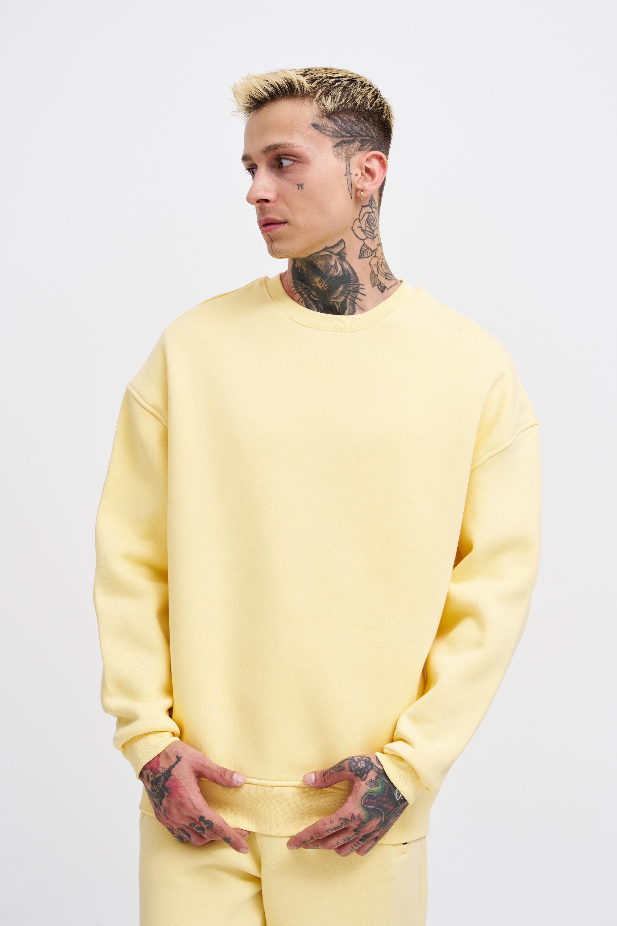 Erkek Basic Bisiklet Yaka Oversize Sweatshirt Sarı