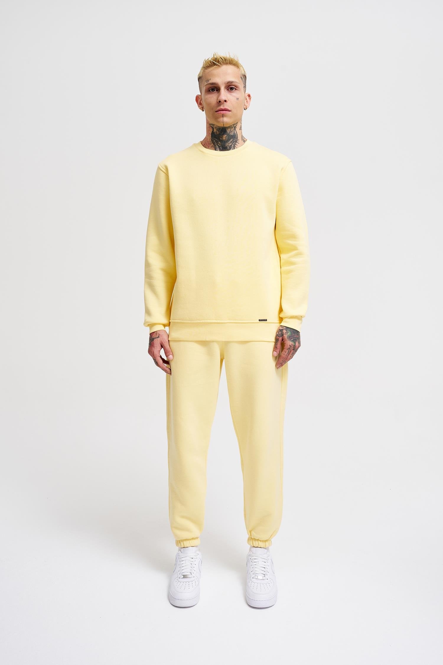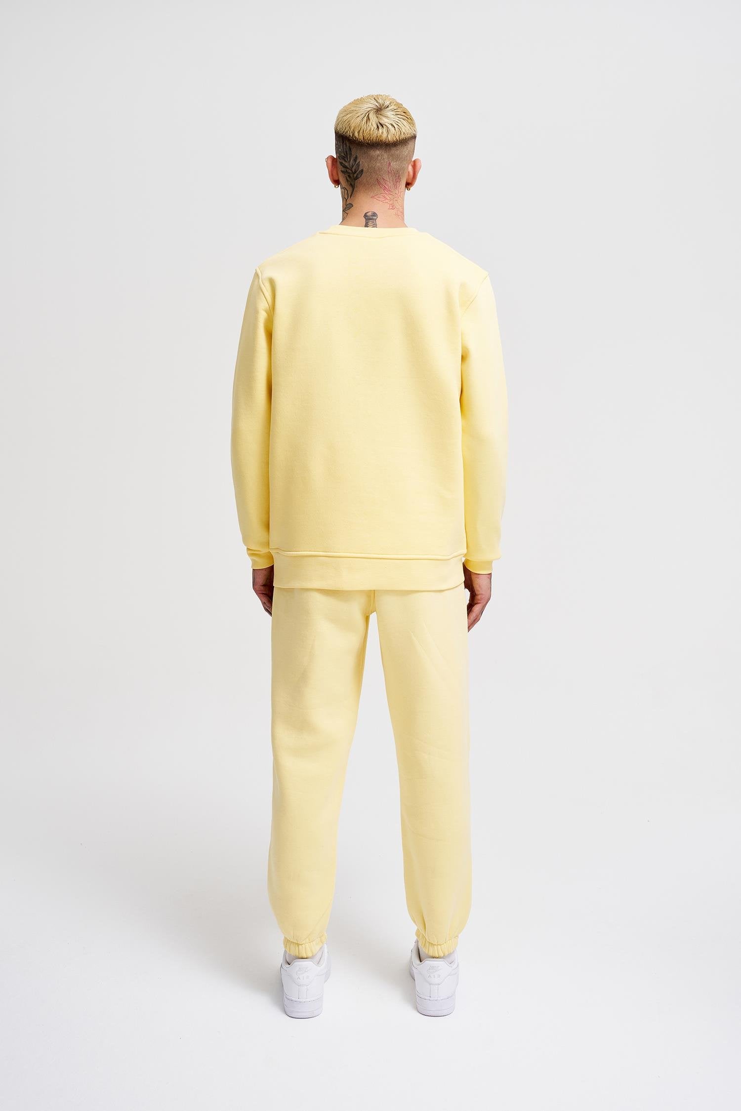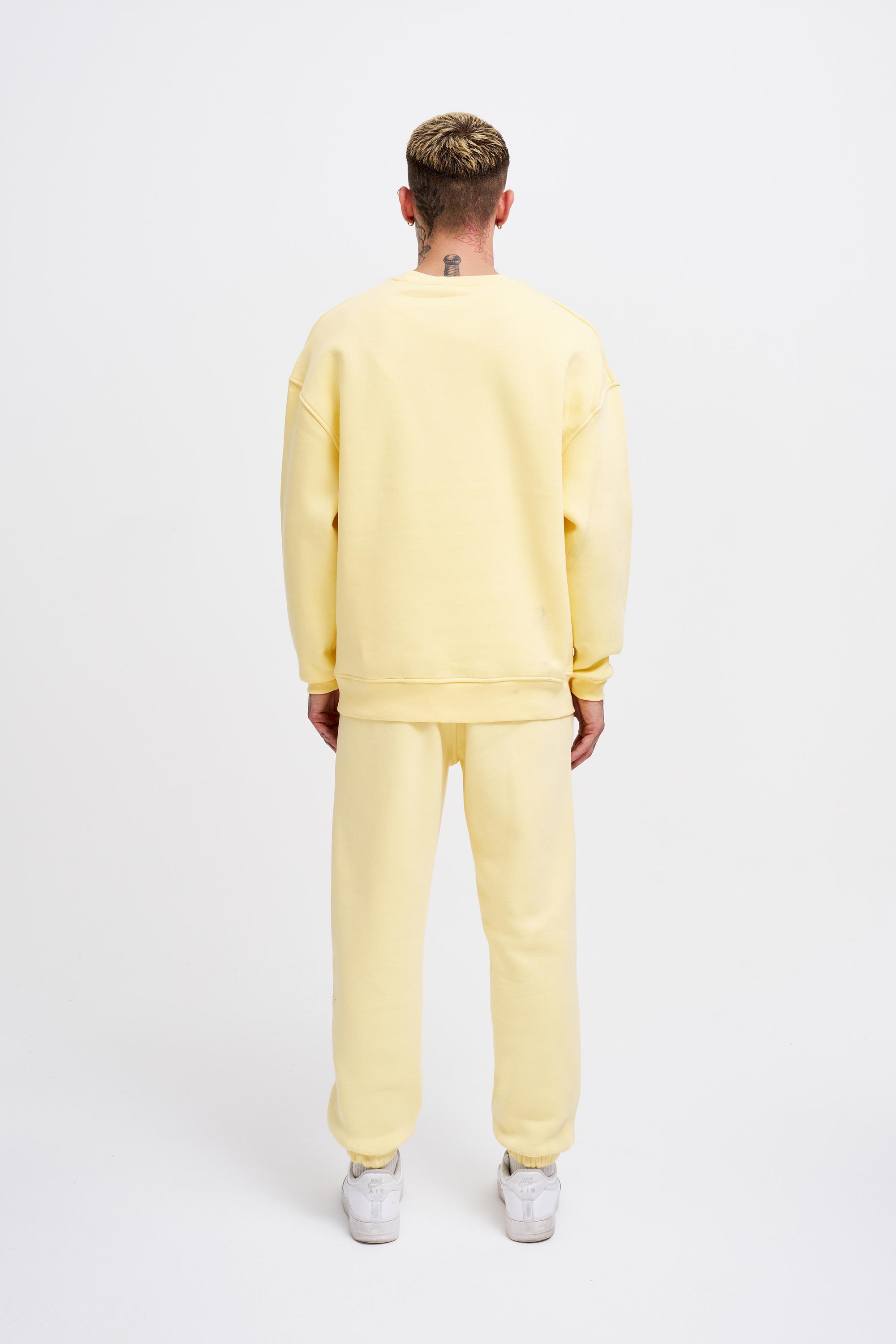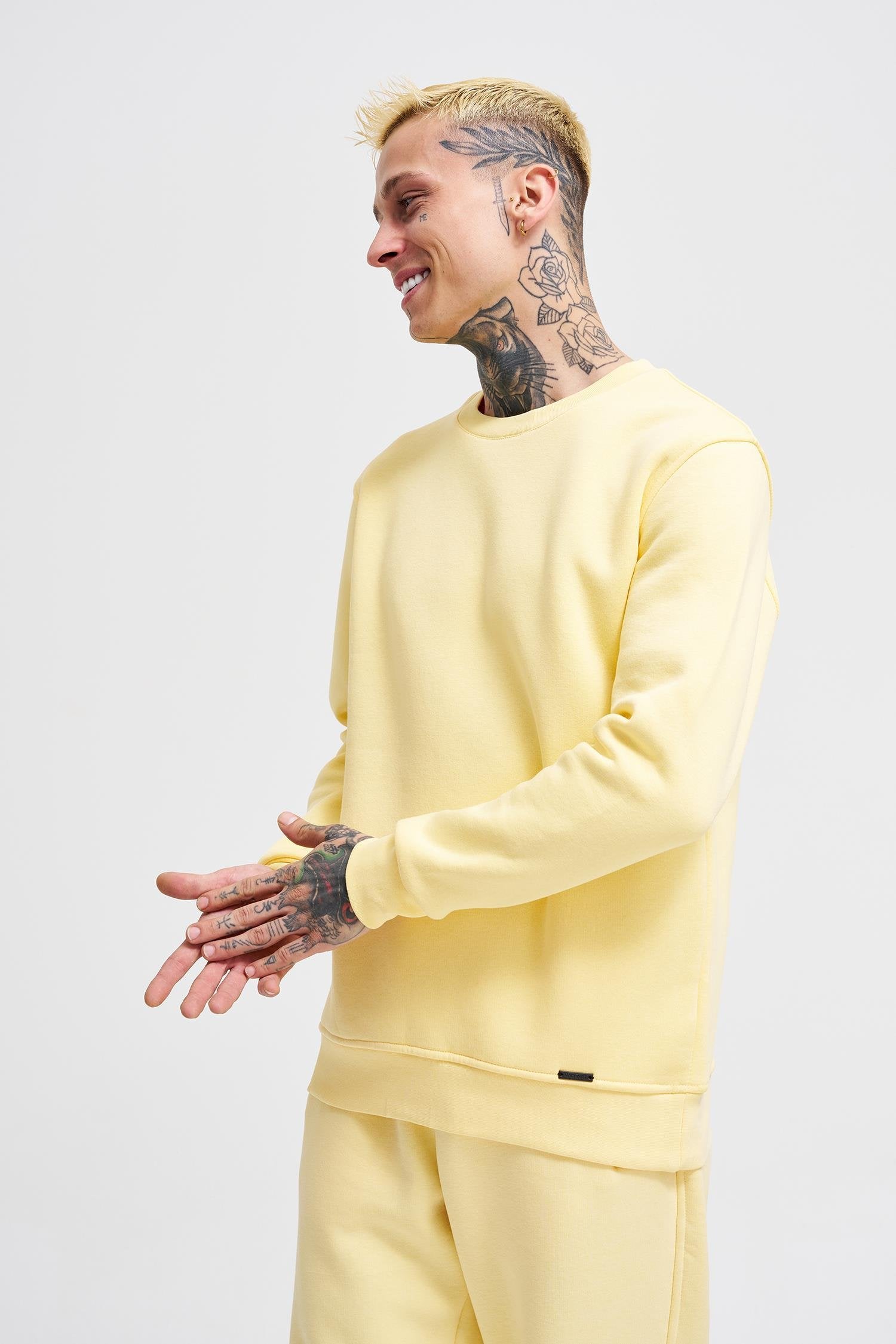 Erkek Basic Bisiklet Yaka Oversize Sweatshirt Sarı
