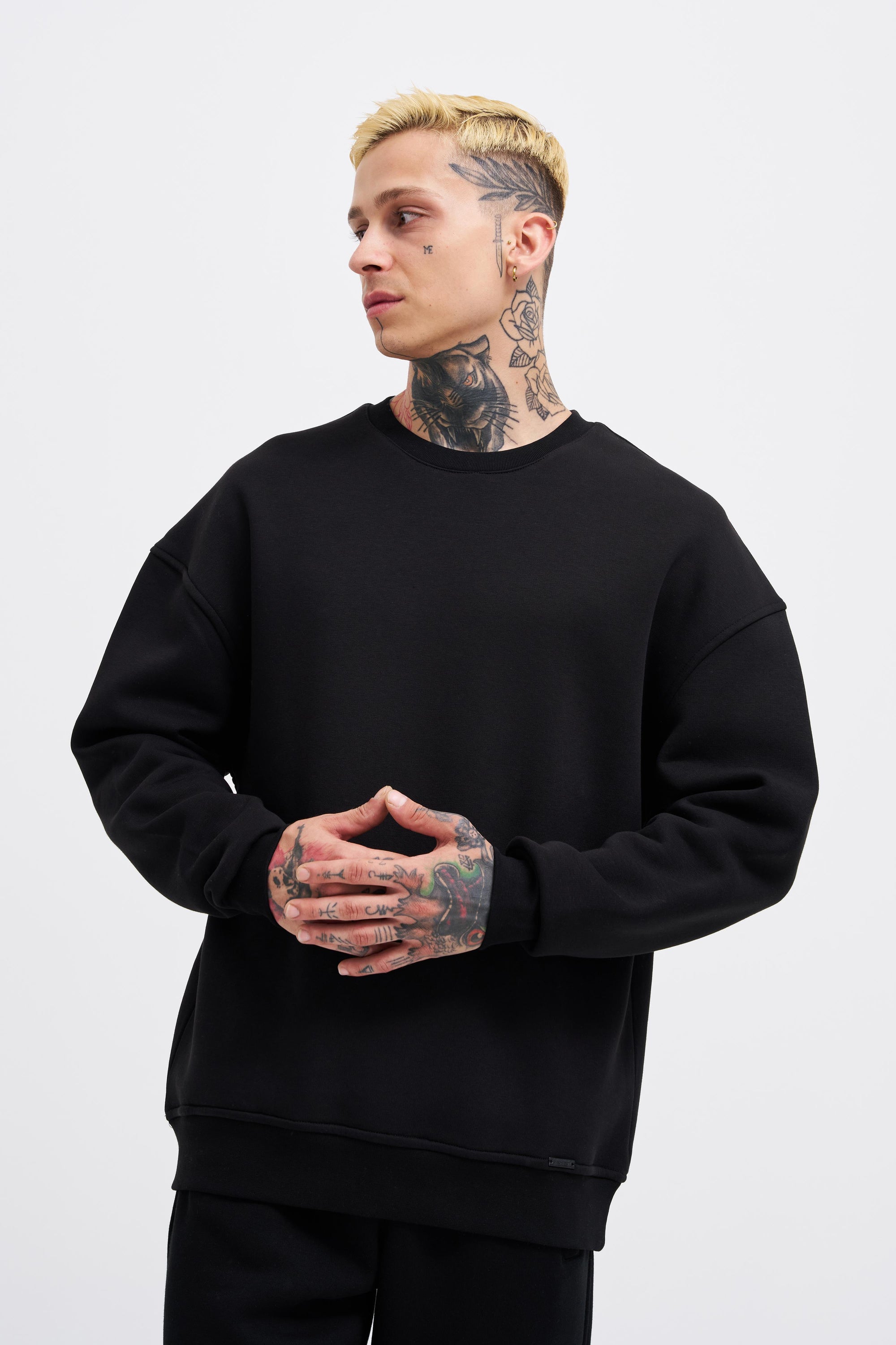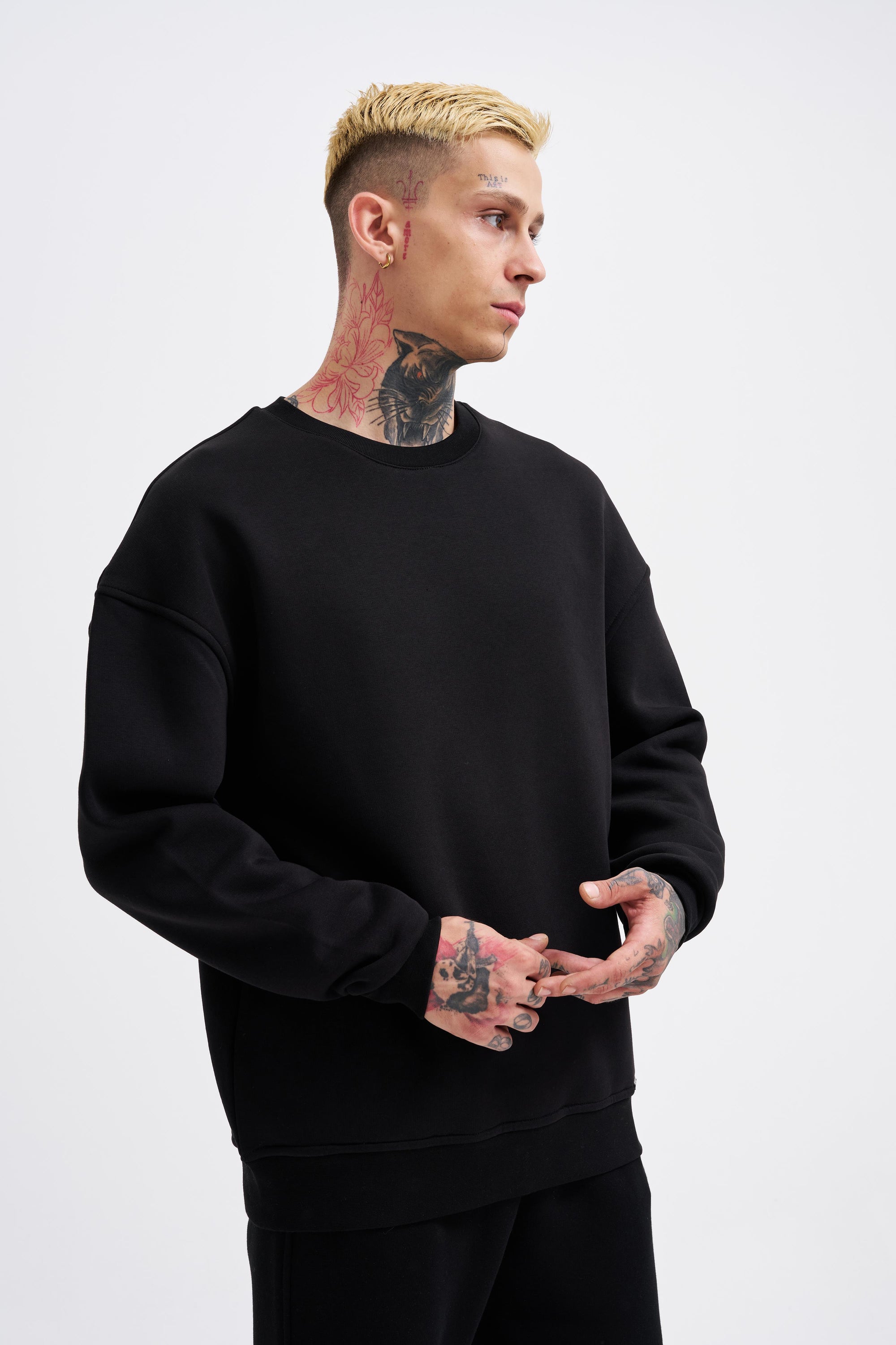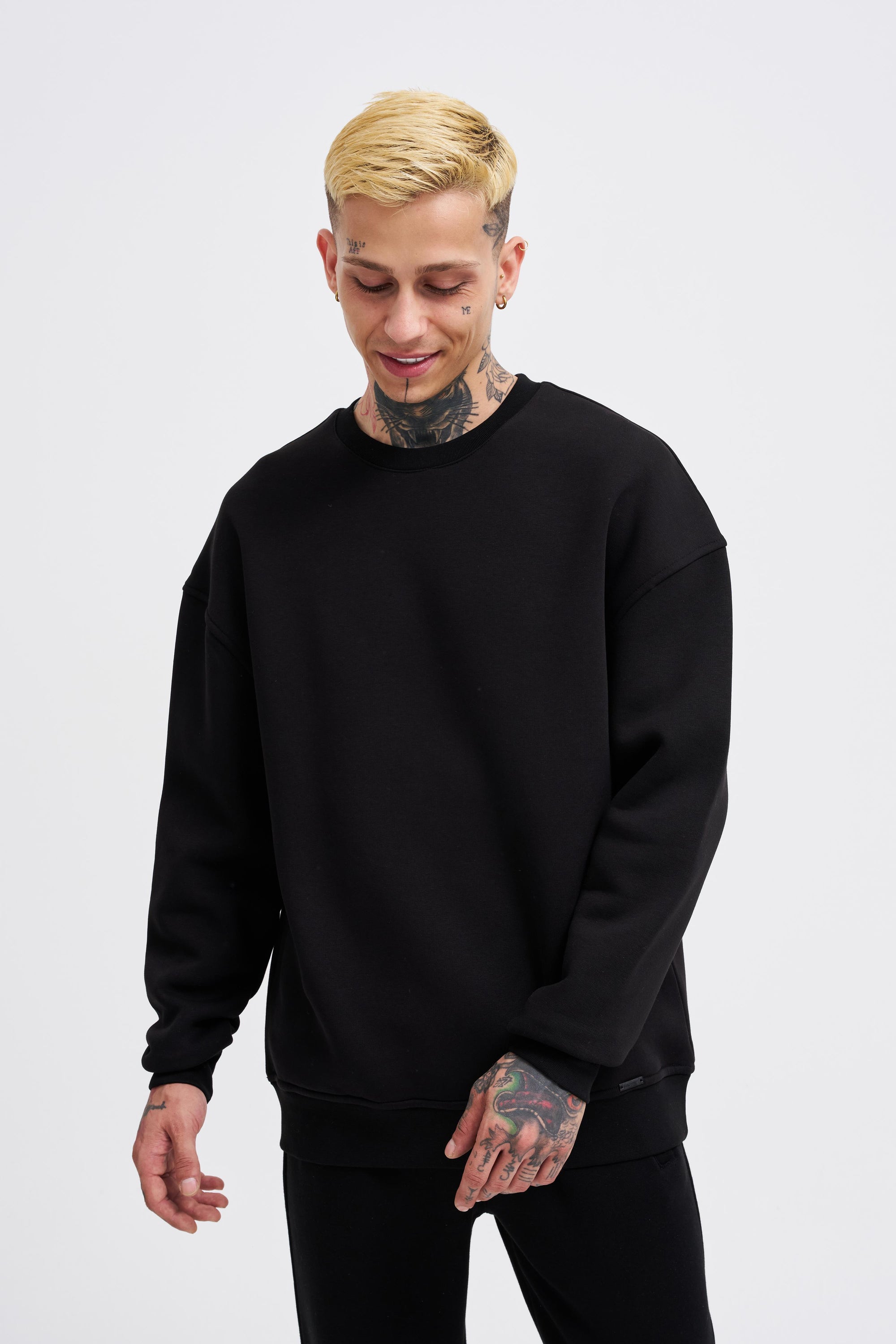 Erkek Bisiklet Yaka Basic Oversize Sweatshirt Siyah