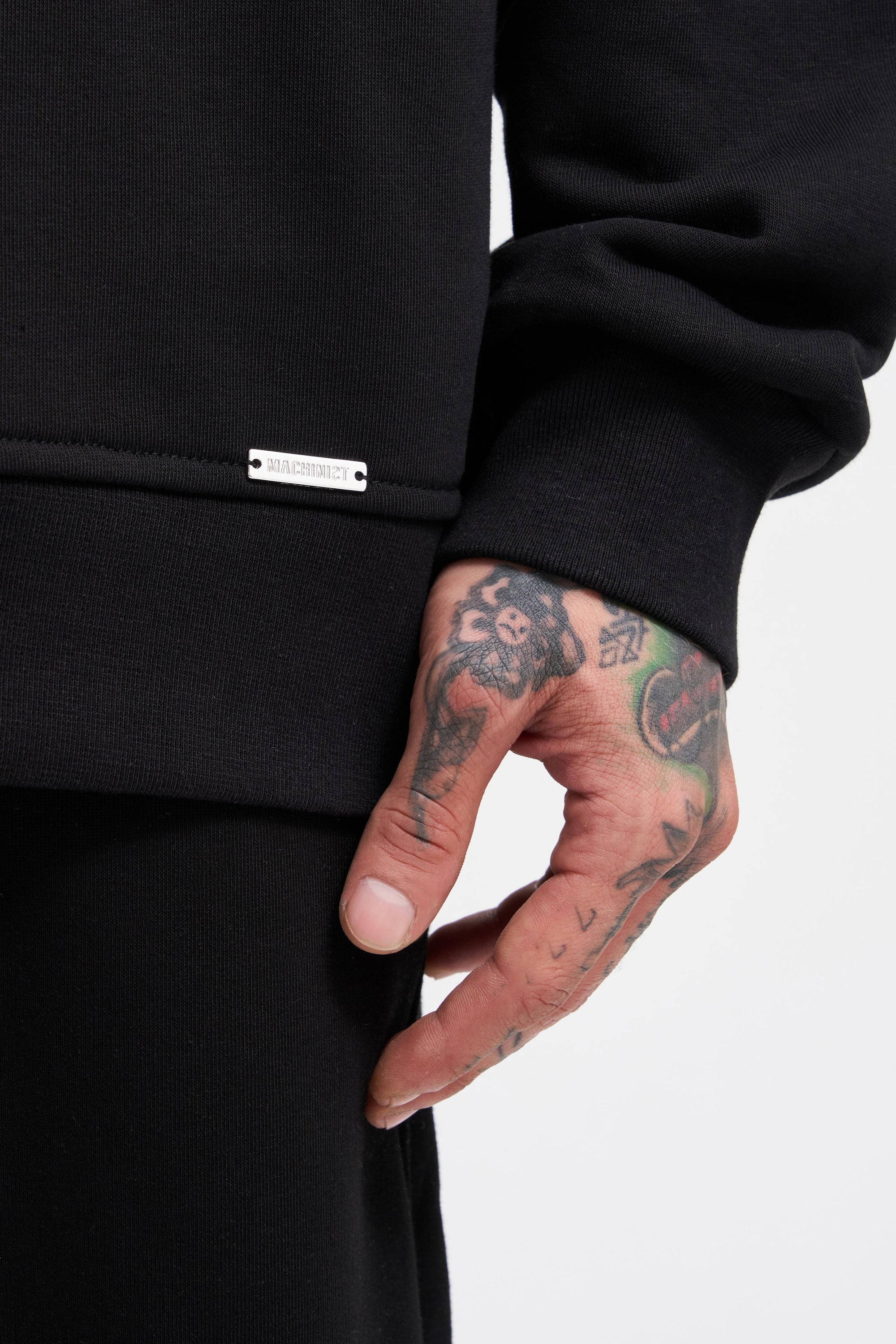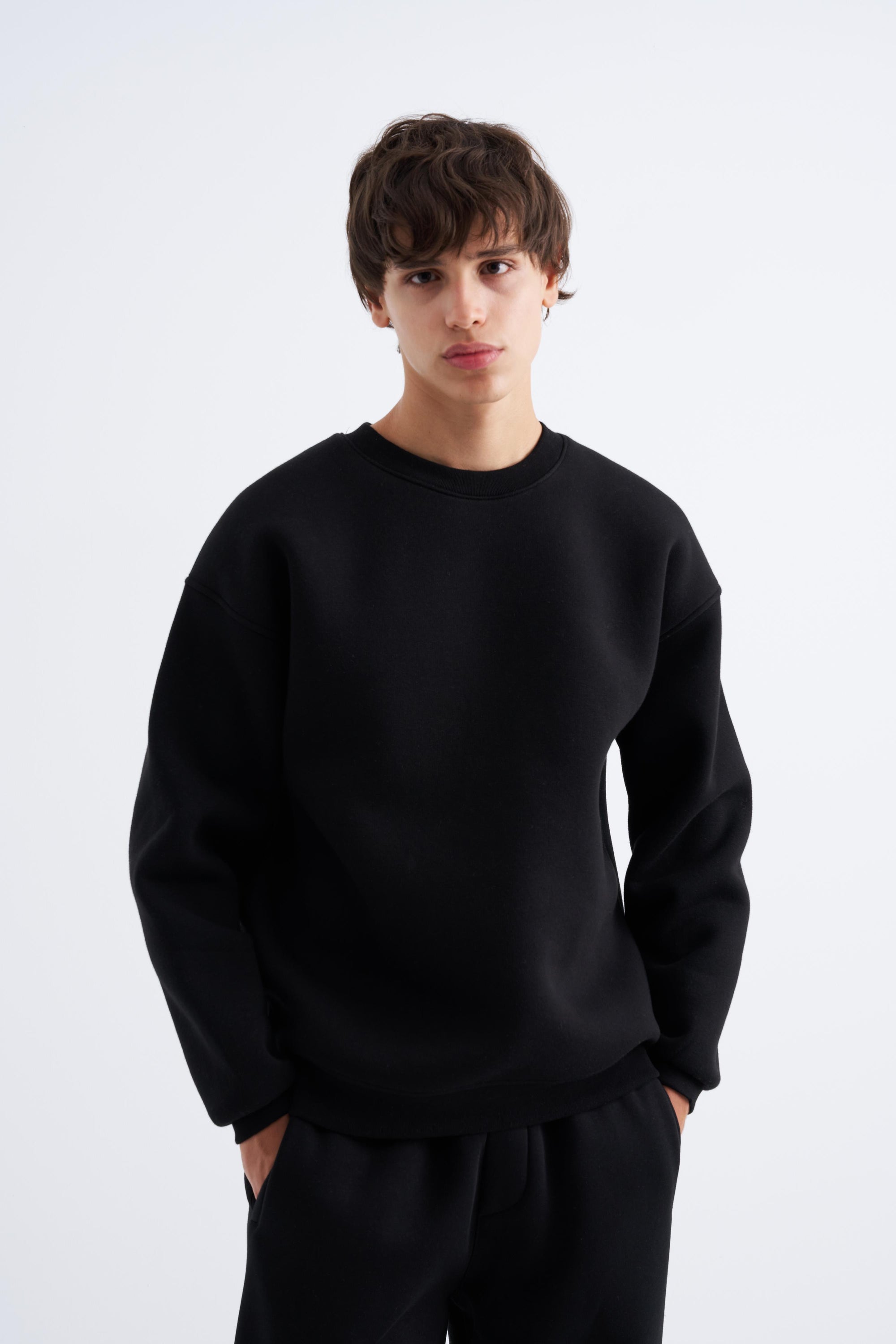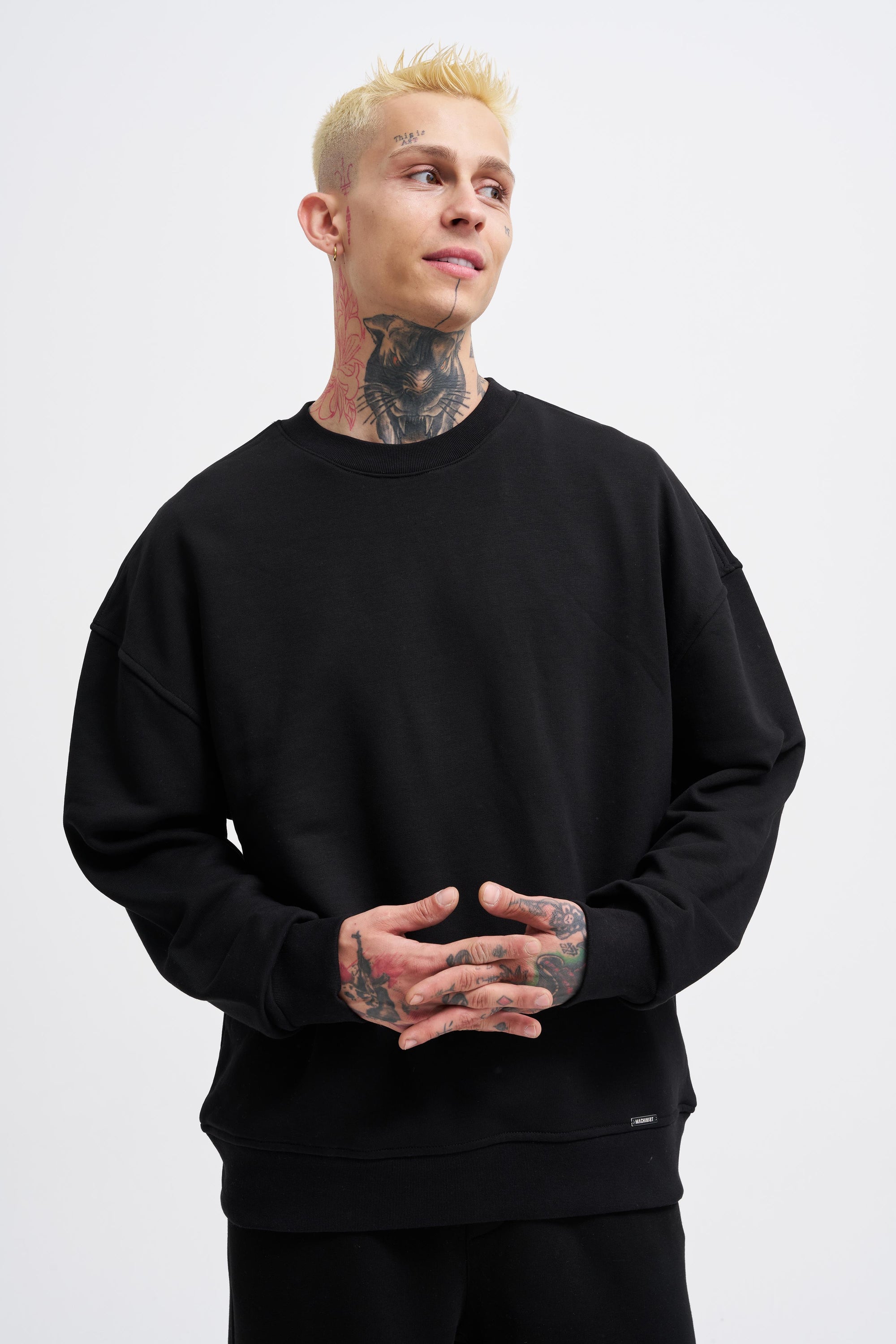 Erkek Bisiklet Yaka Basic Oversize Sweatshirt Siyah