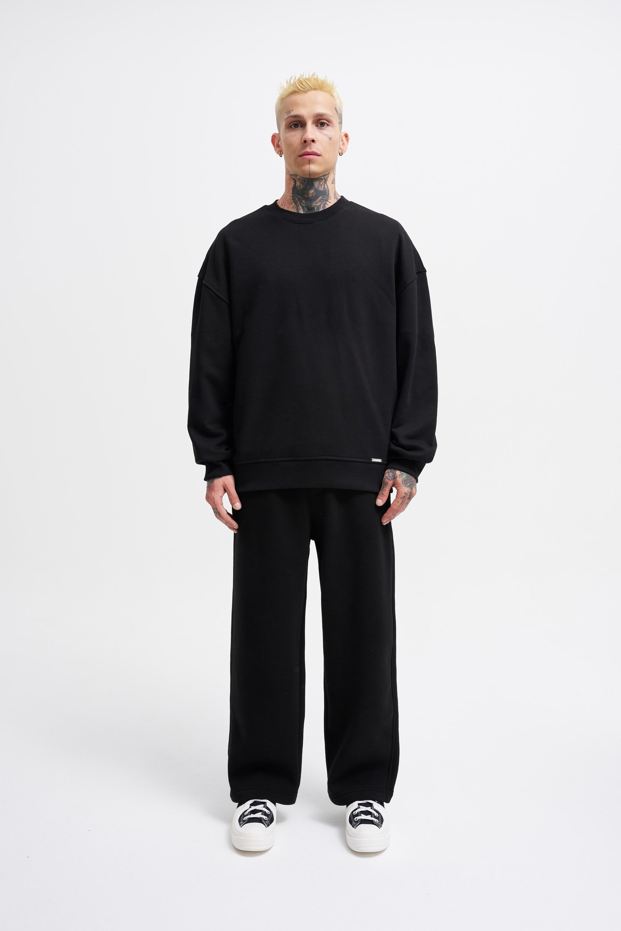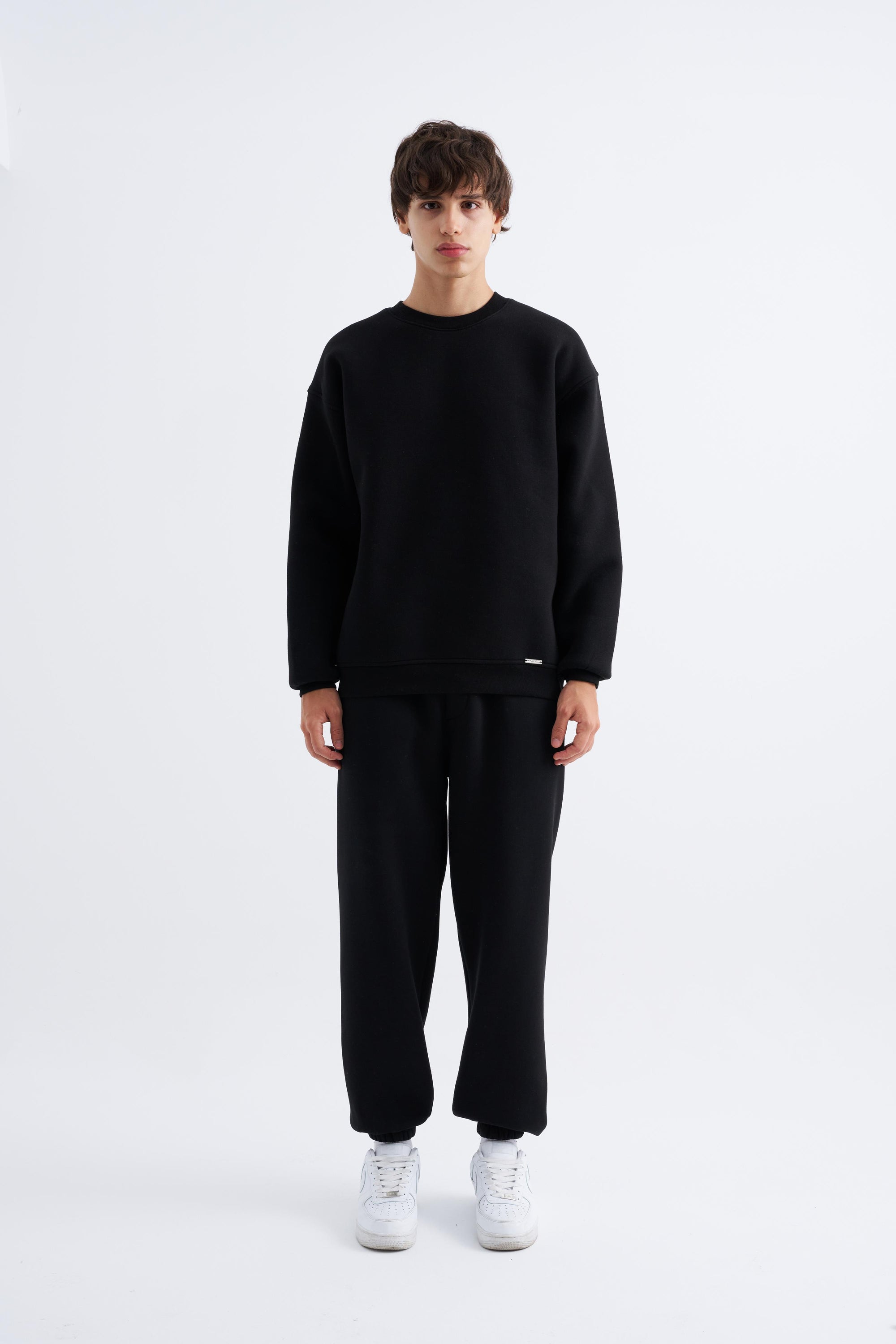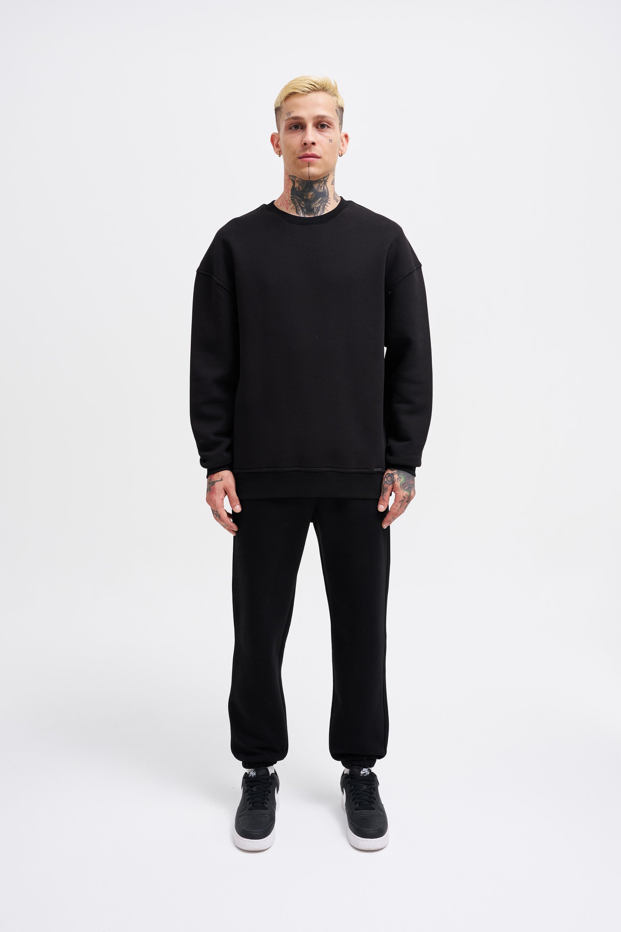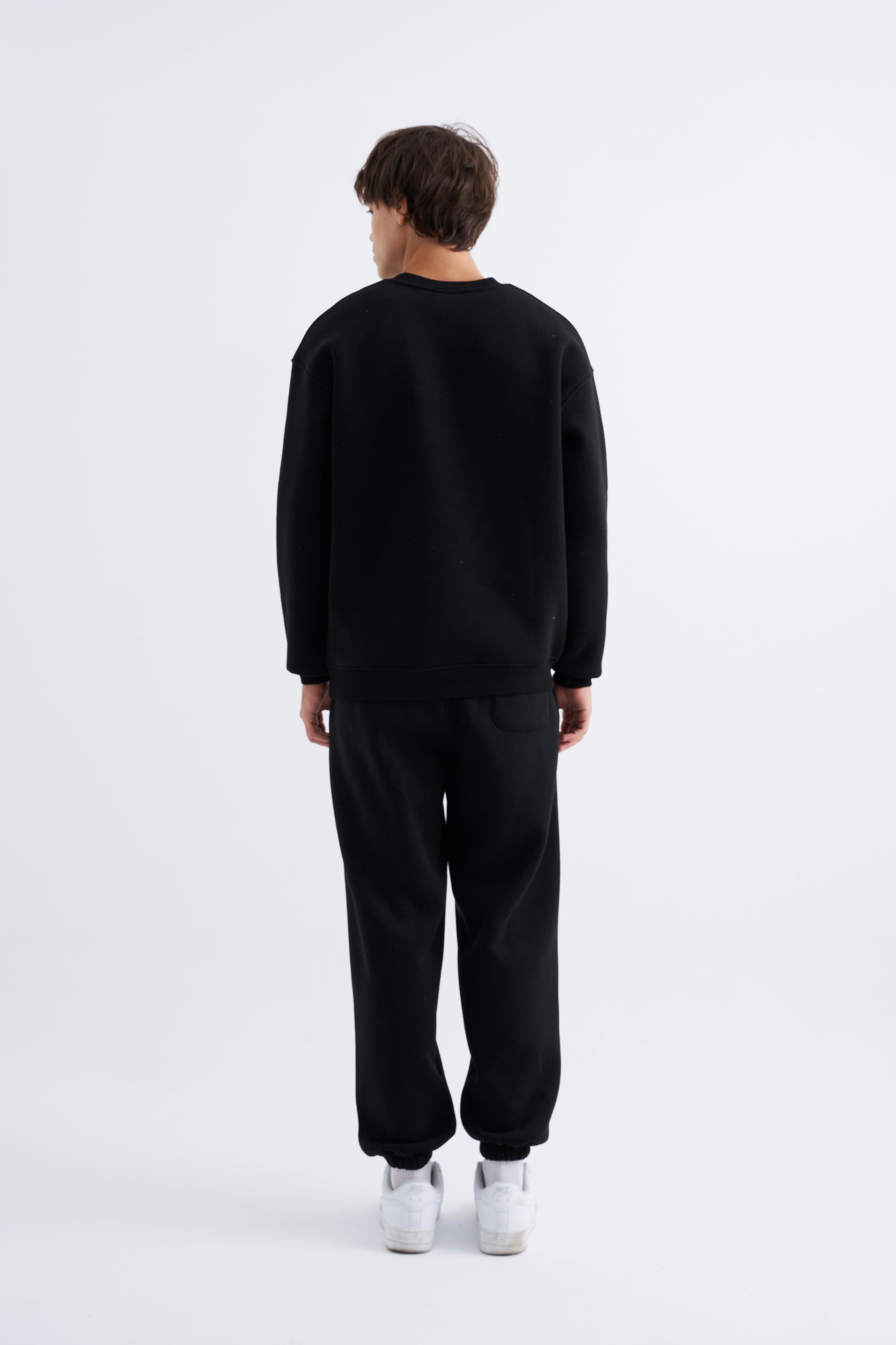 Erkek Basic Bisiklet Yaka Oversize Sweatshirt Siyah