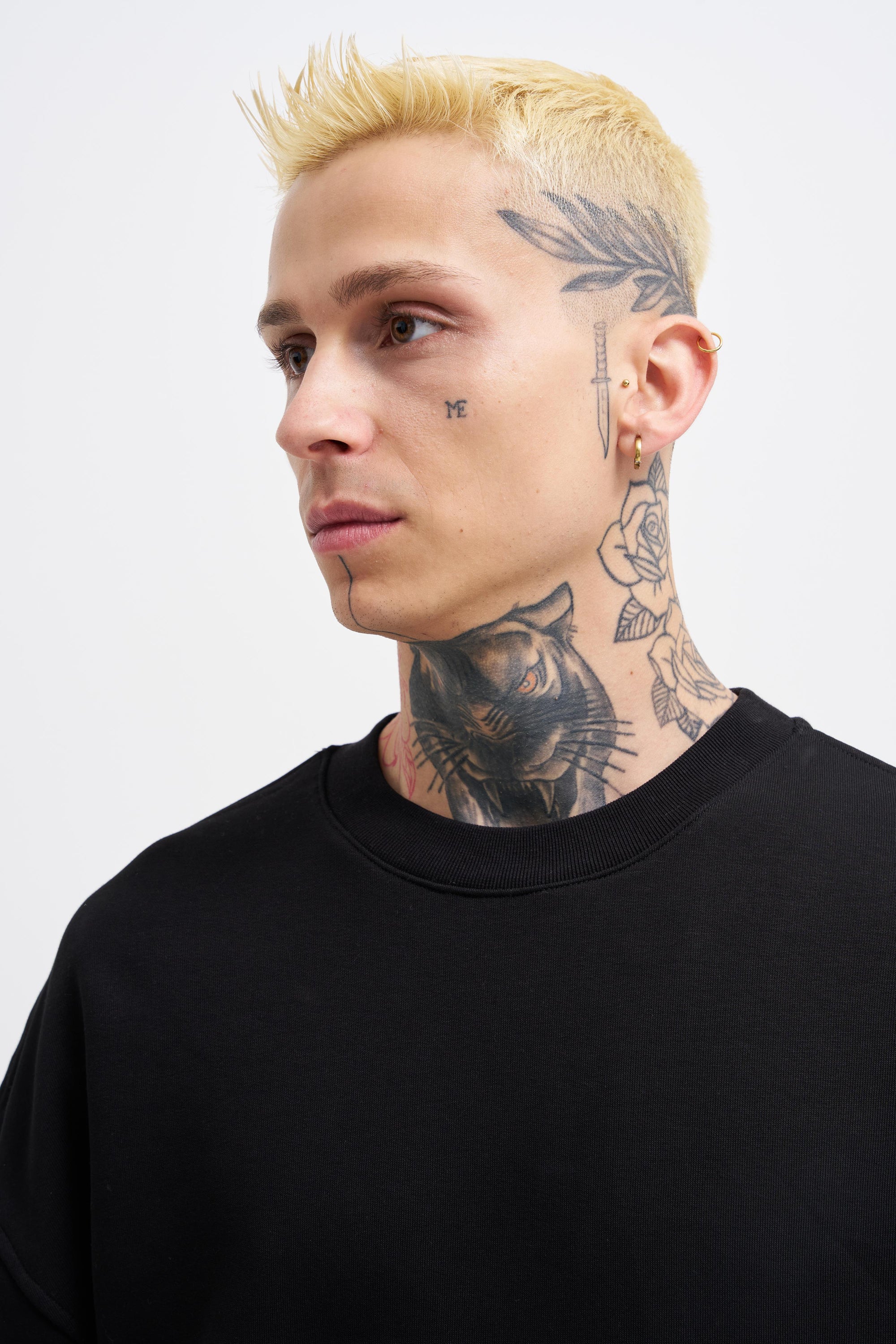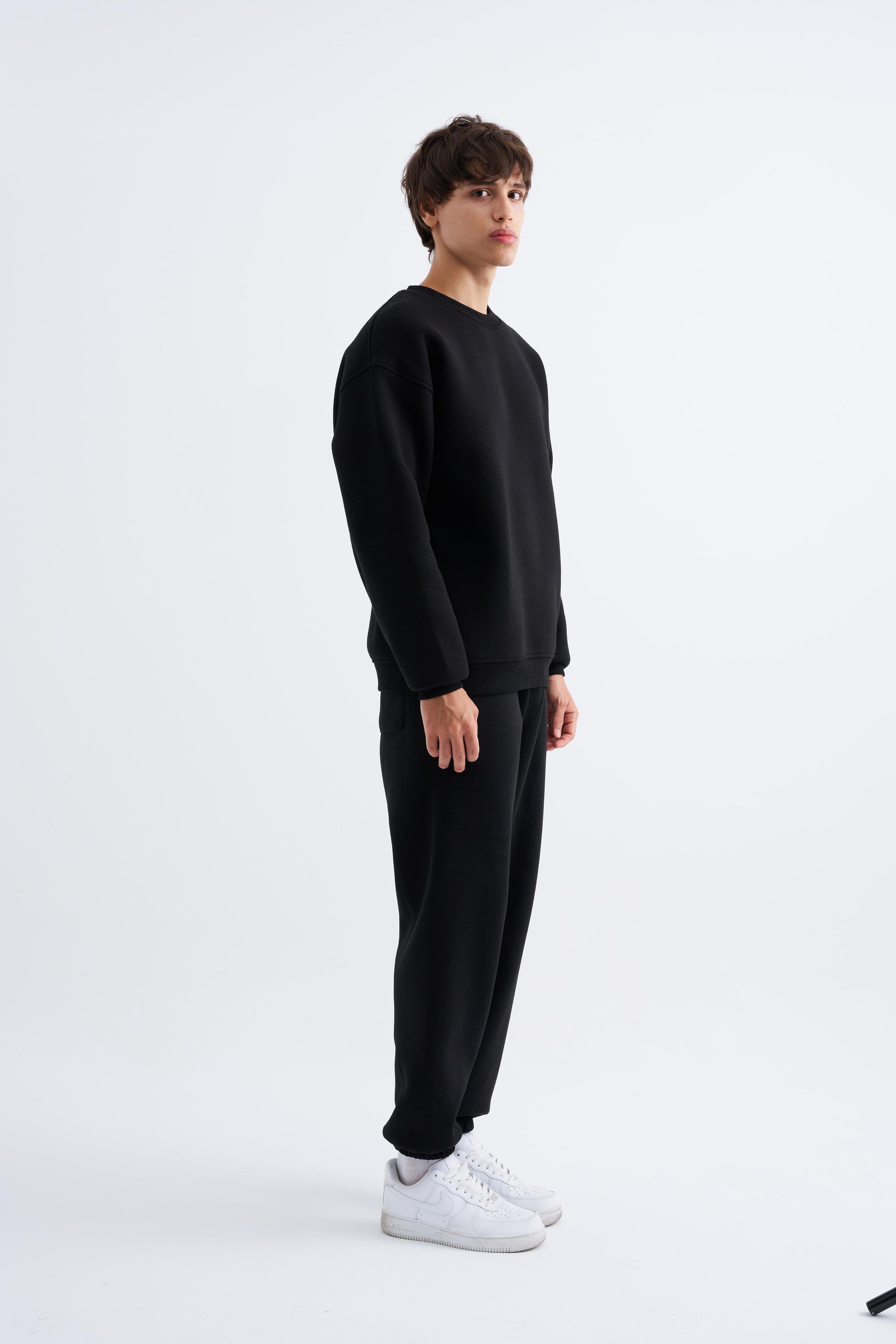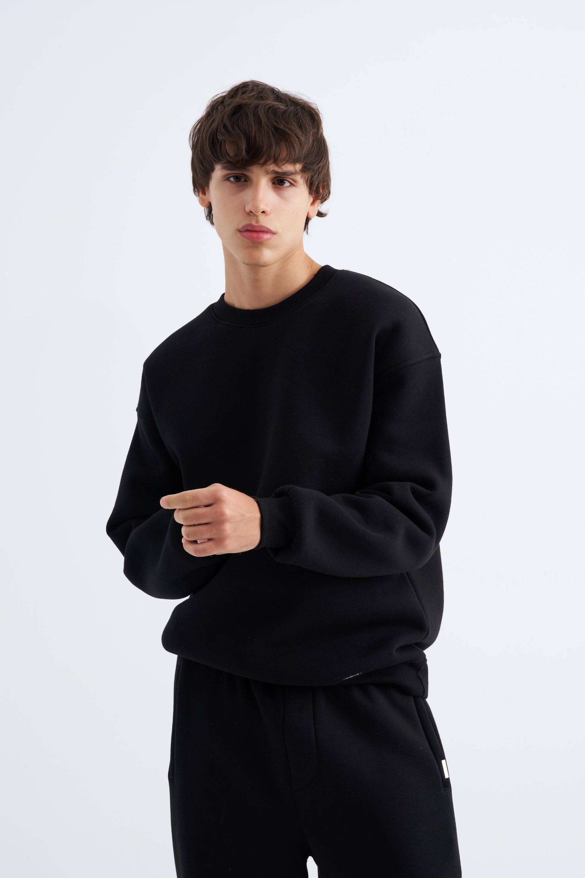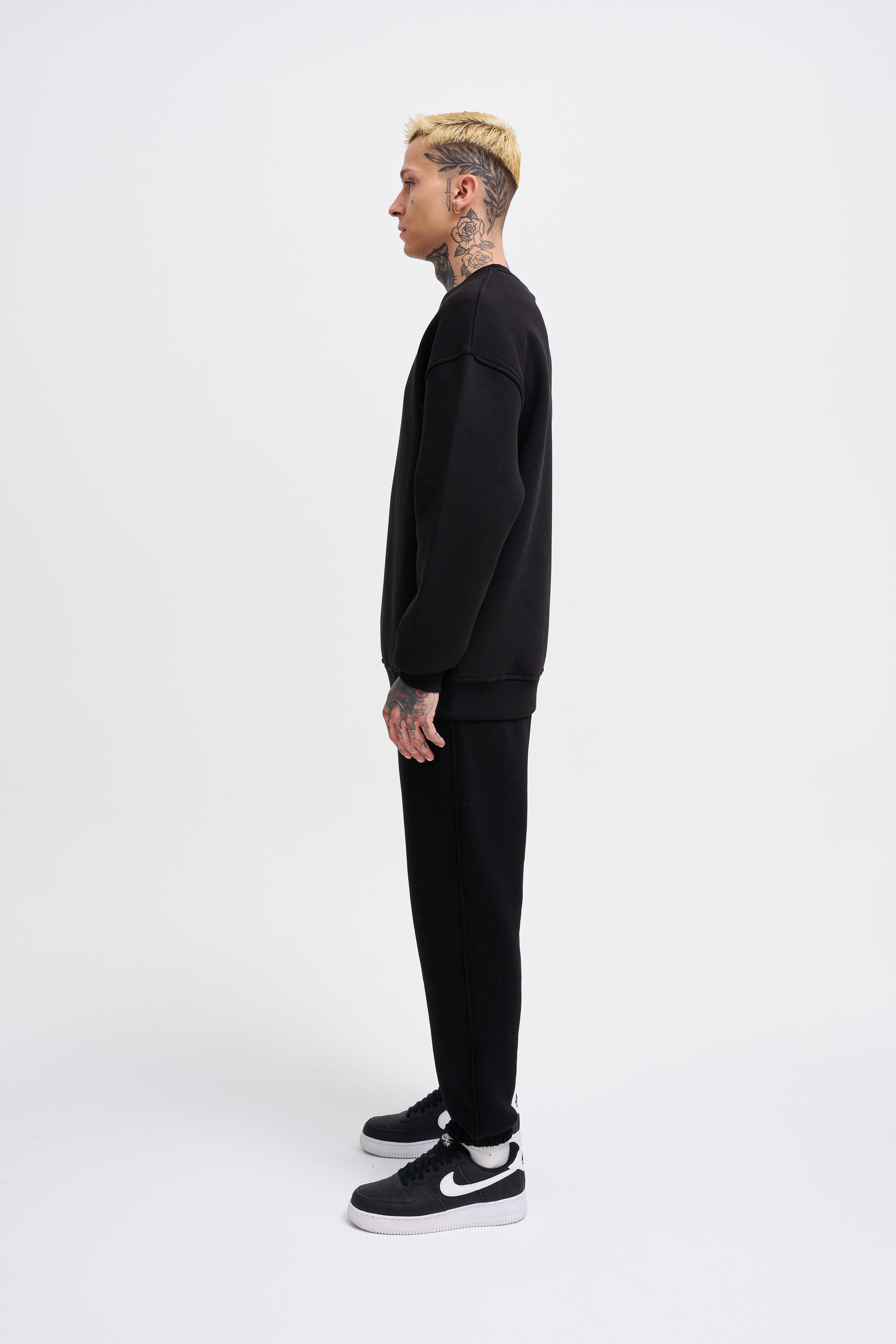 Erkek Basic Bisiklet Yaka Oversize Sweatshirt Siyah