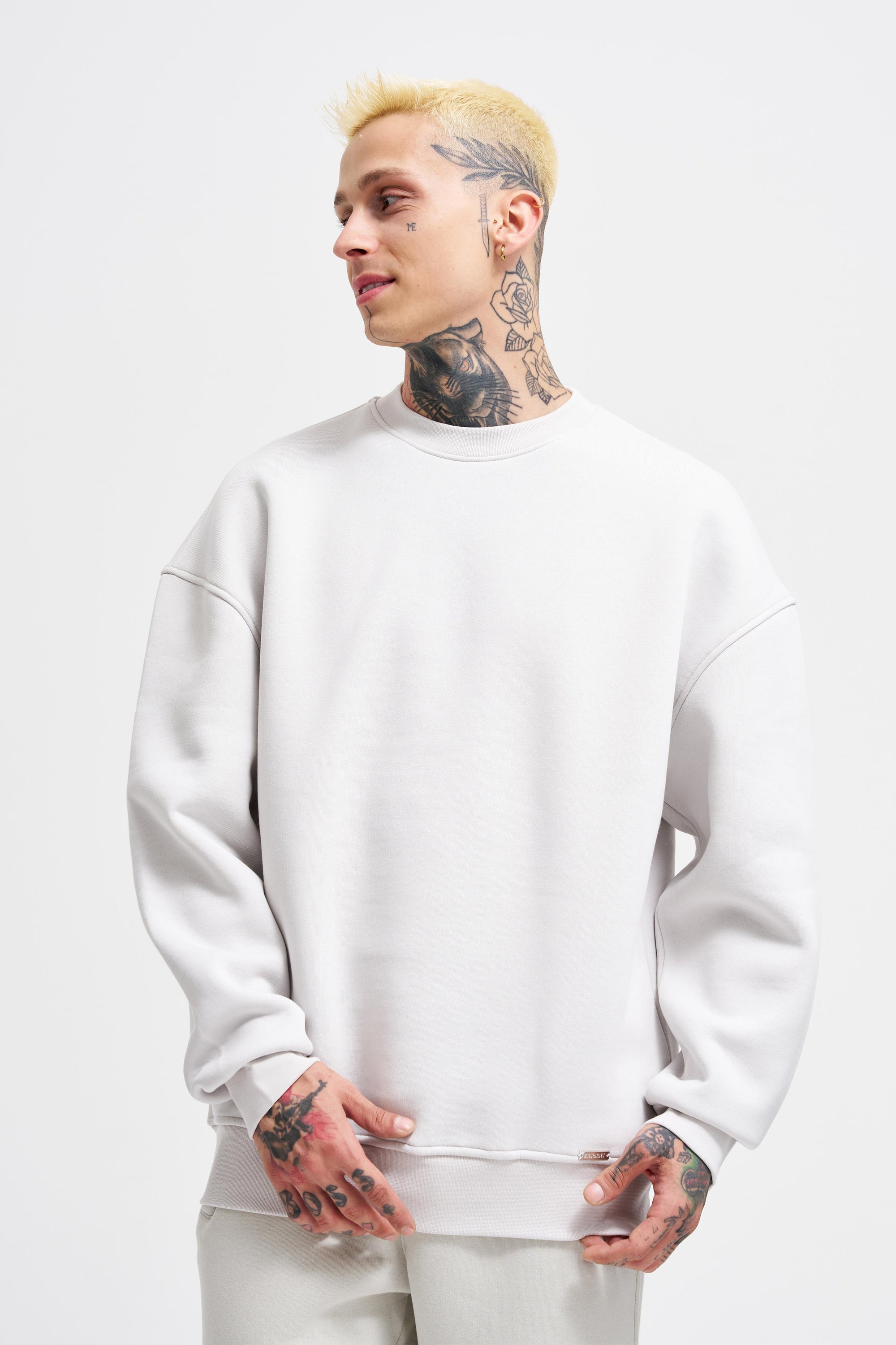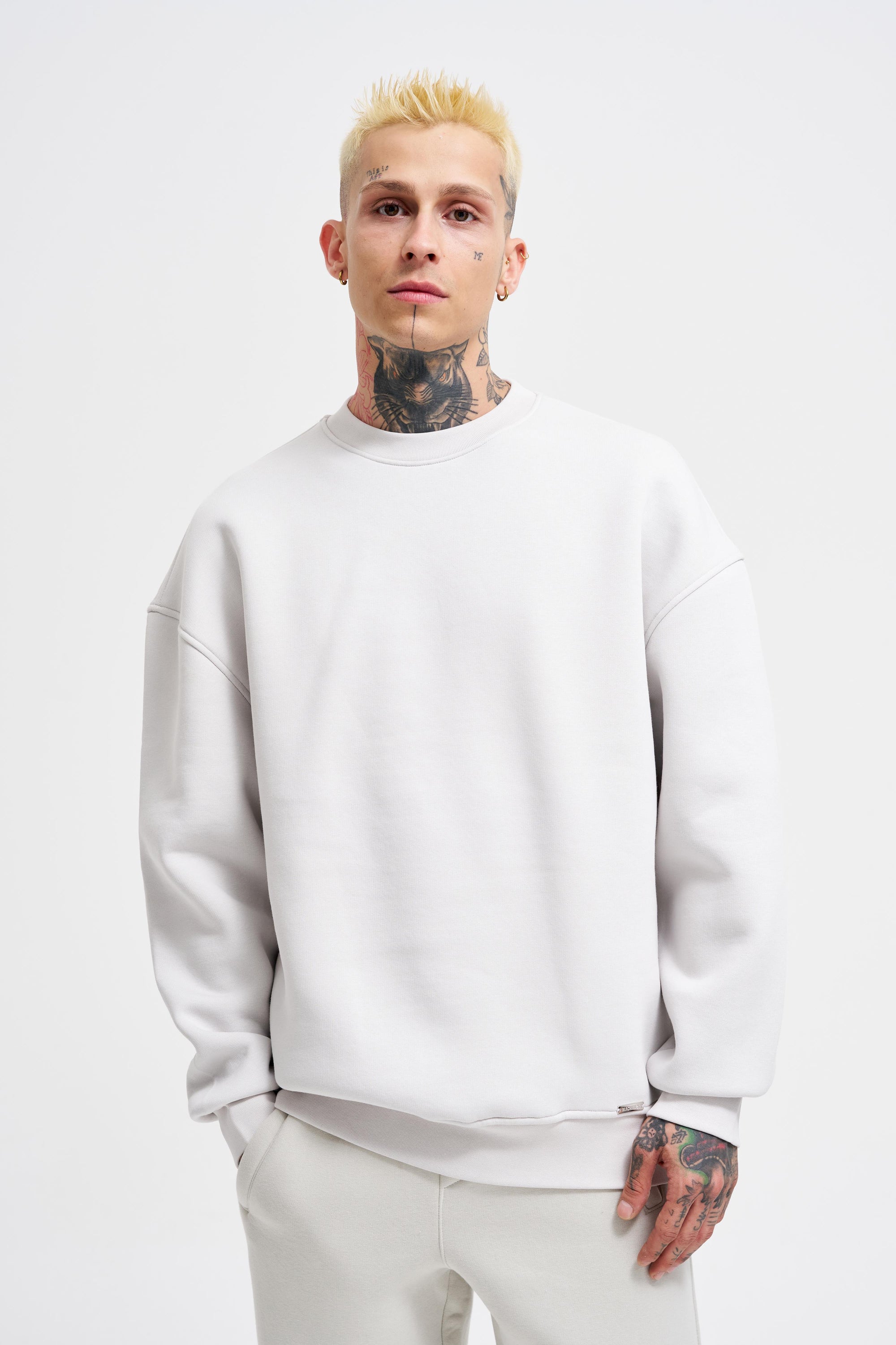 Erkek Basic Bisiklet Yaka Oversize Sweatshirt Açık Gri