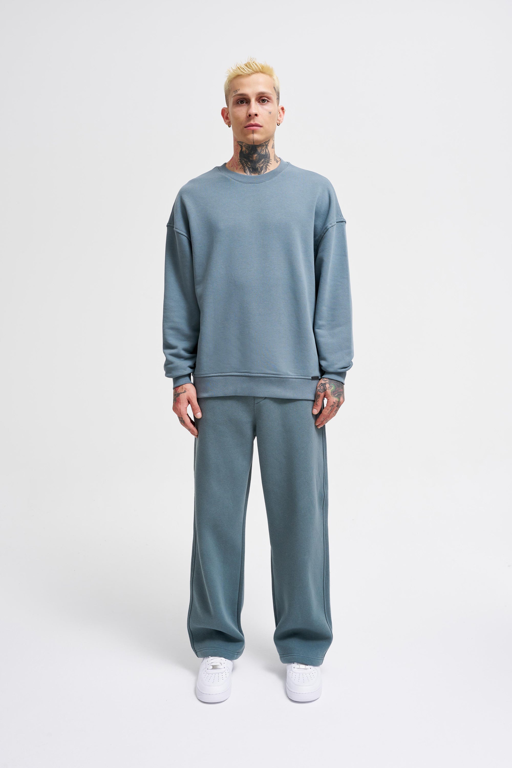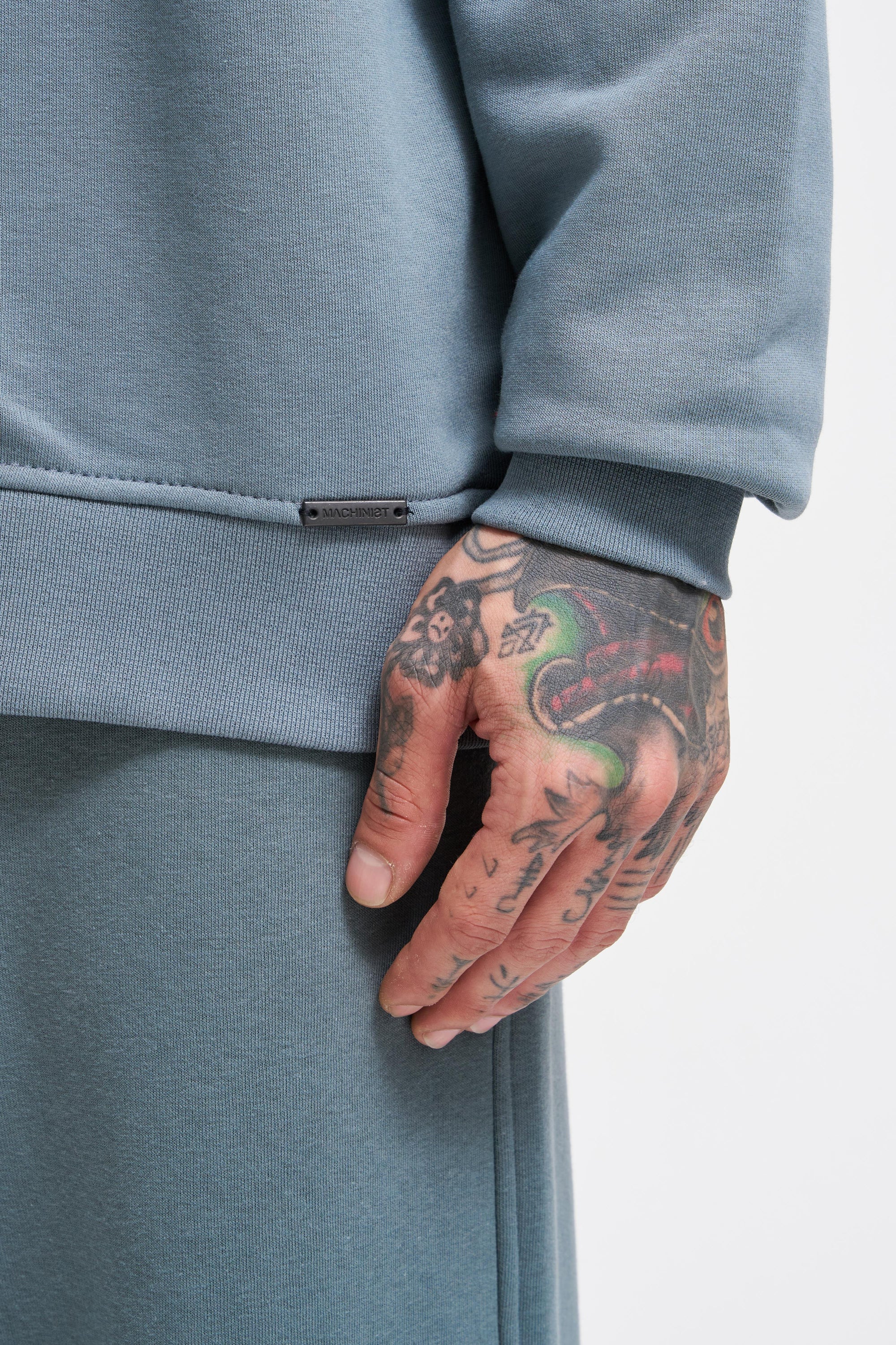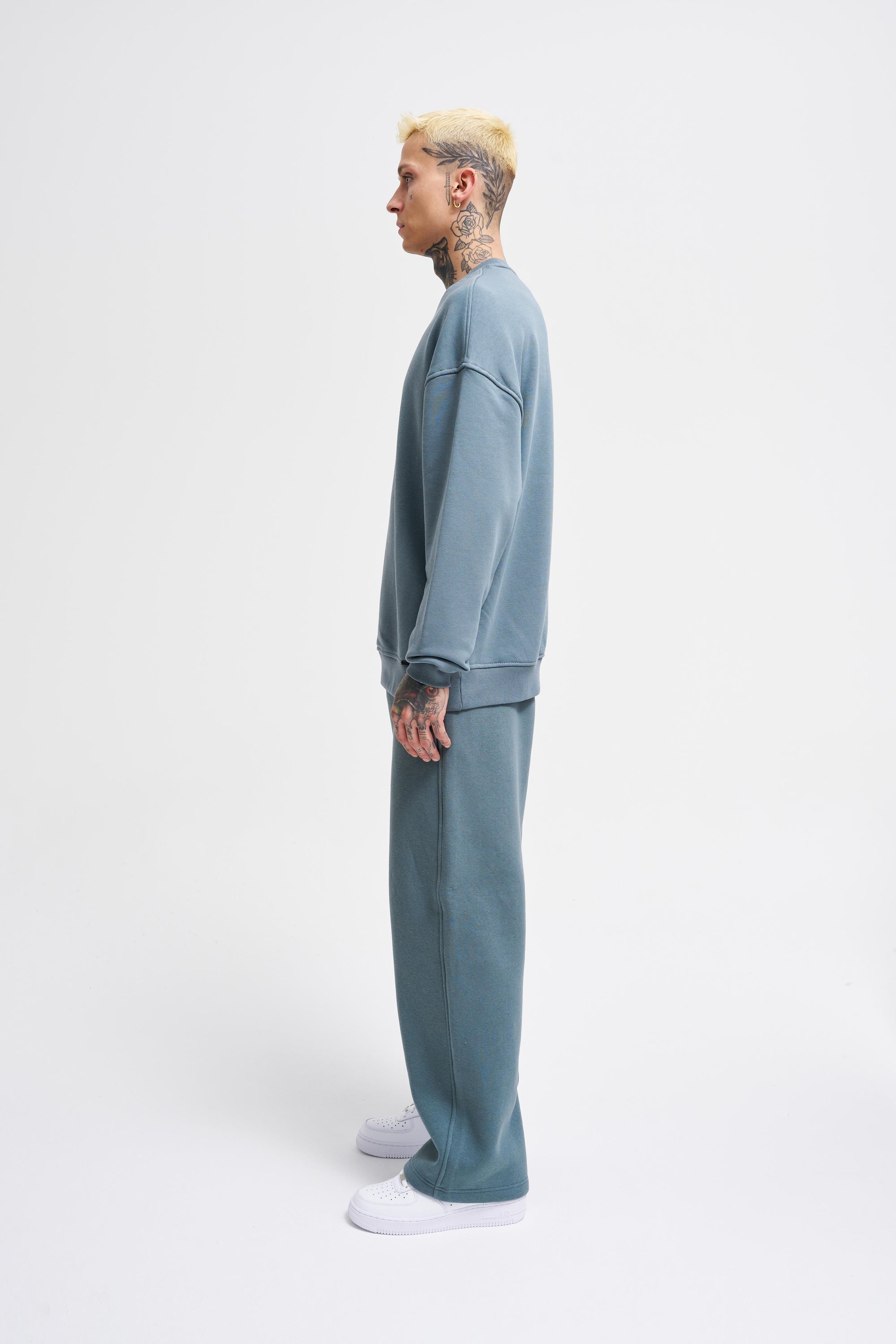 Erkek Basic Bisiklet Yaka Oversize Sweatshirt Aqua