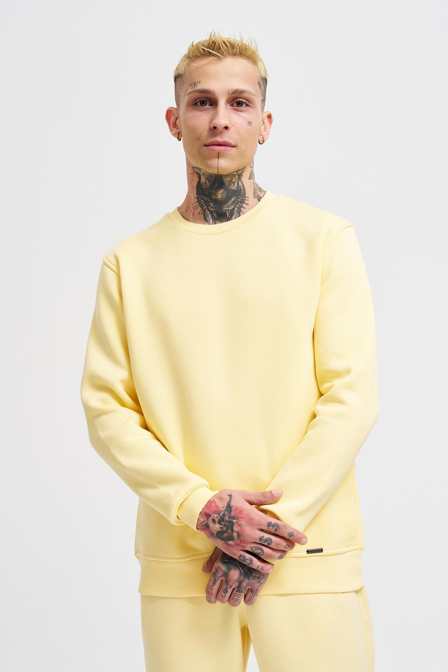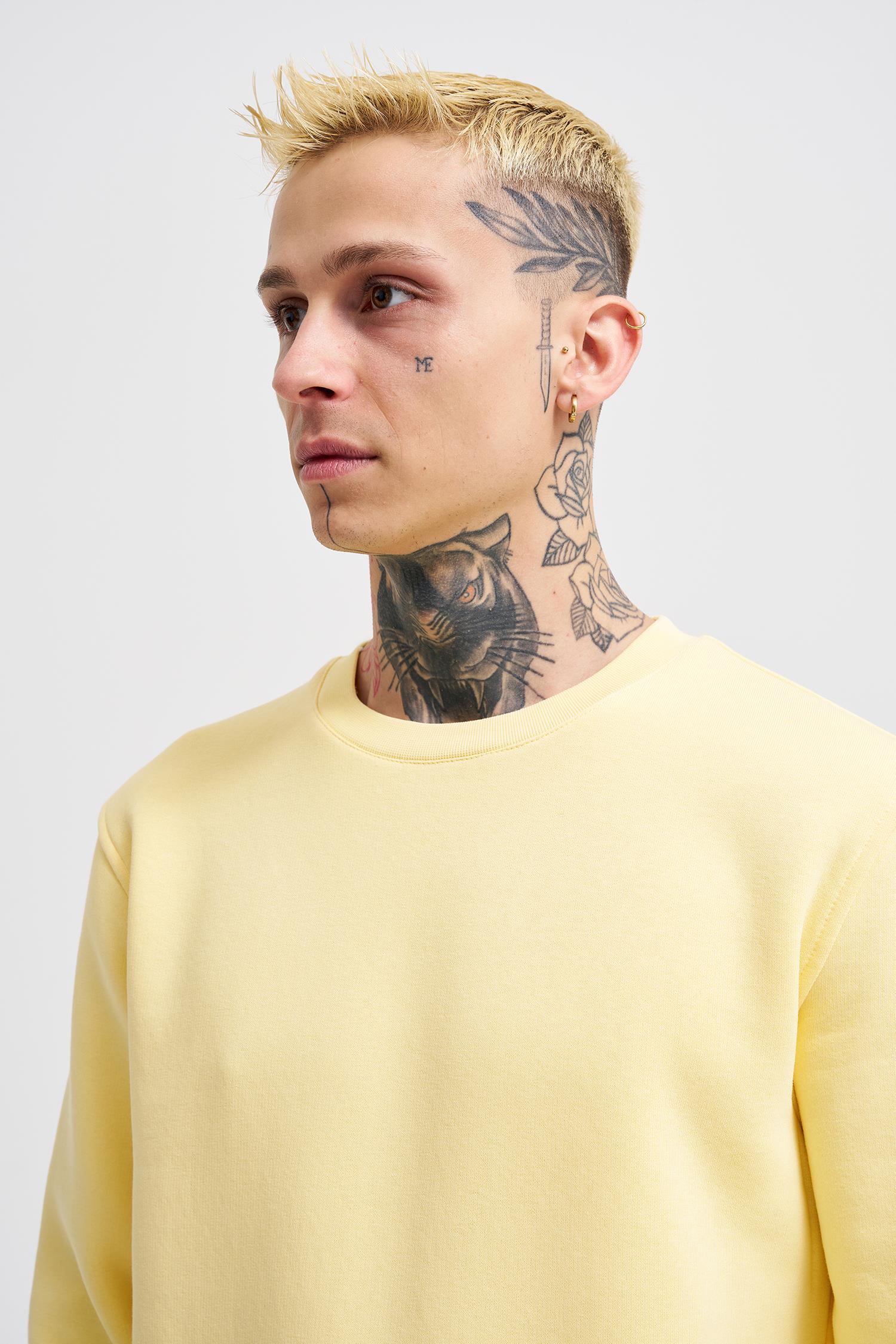 Erkek Regular Bisiklet Yaka Basic Sweatshirt Sarı