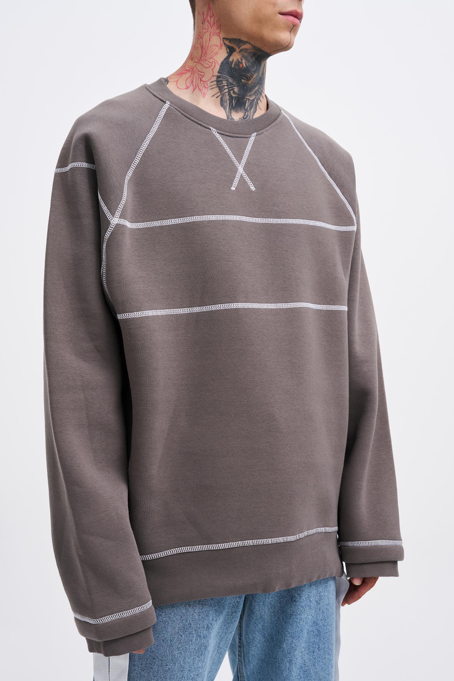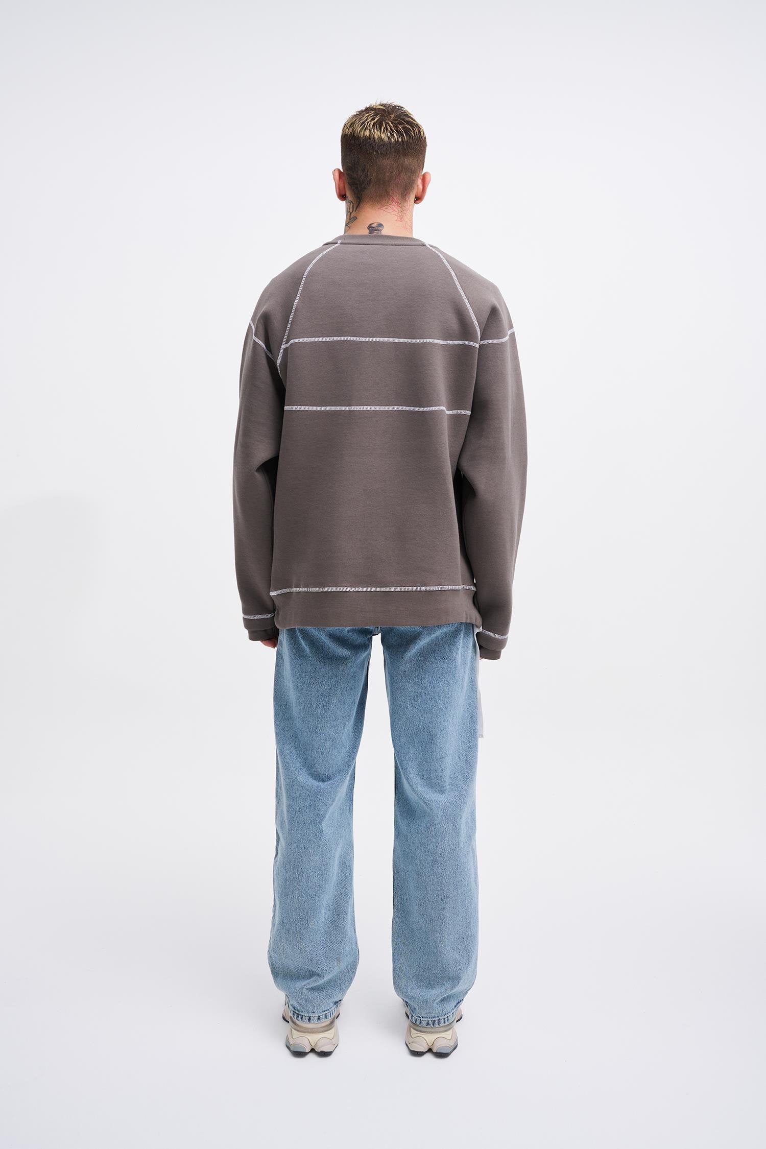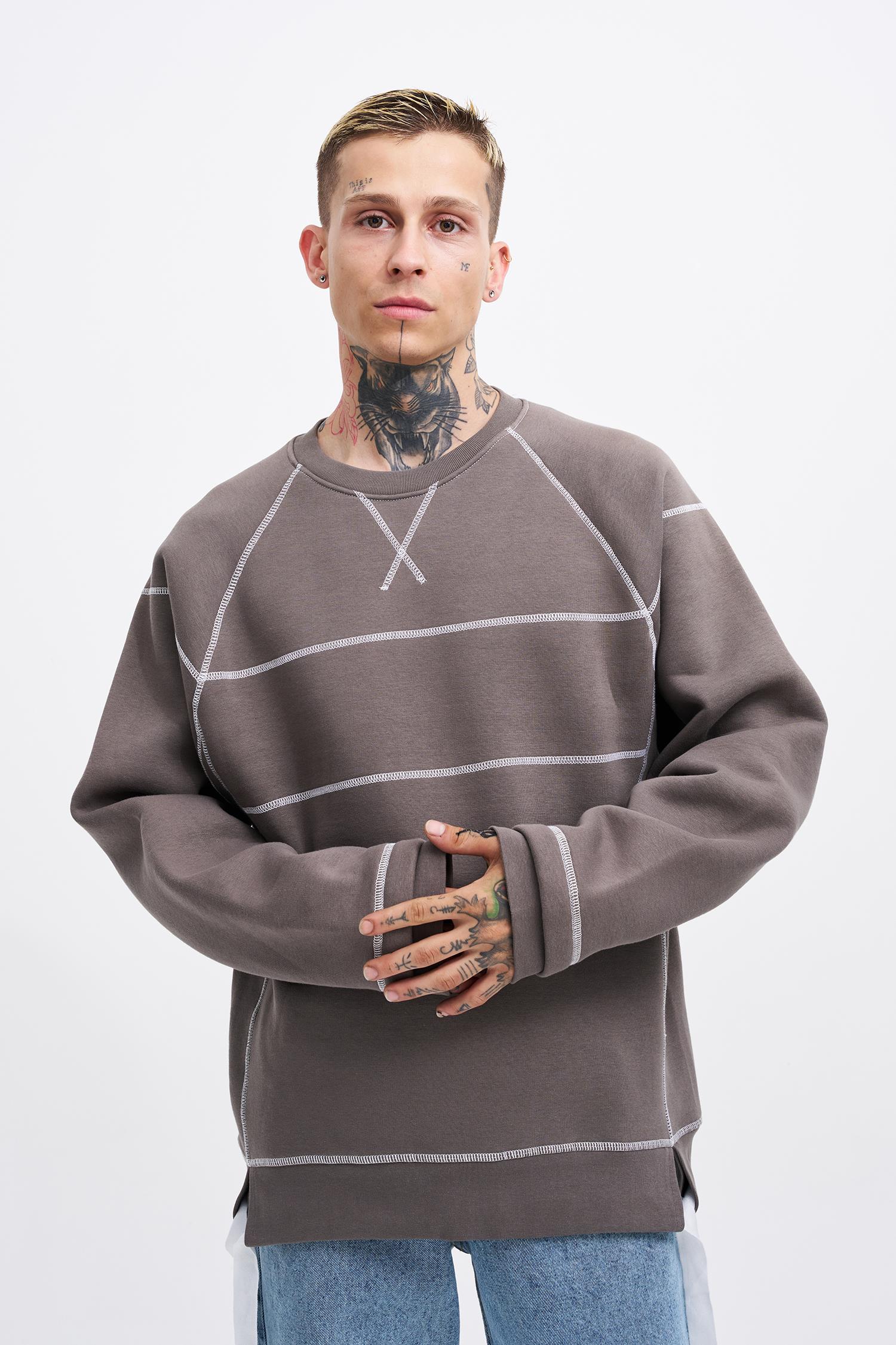 Erkek Dikiş Detay Oversize Sweatshirt Antrasit