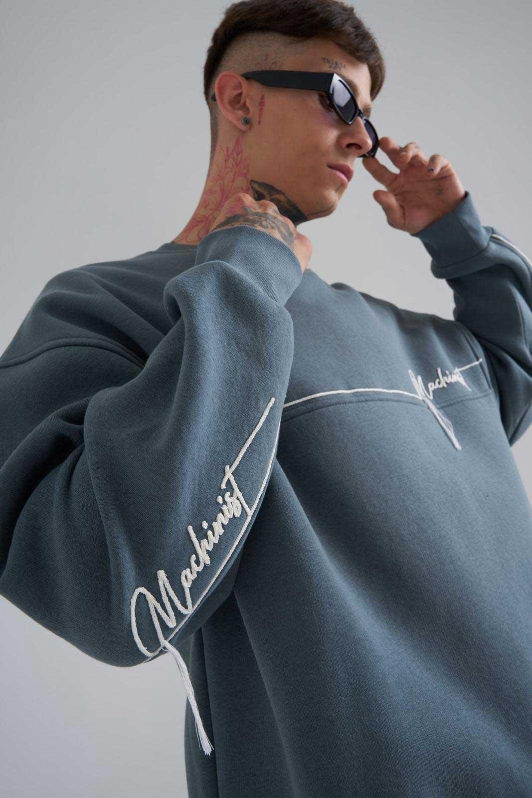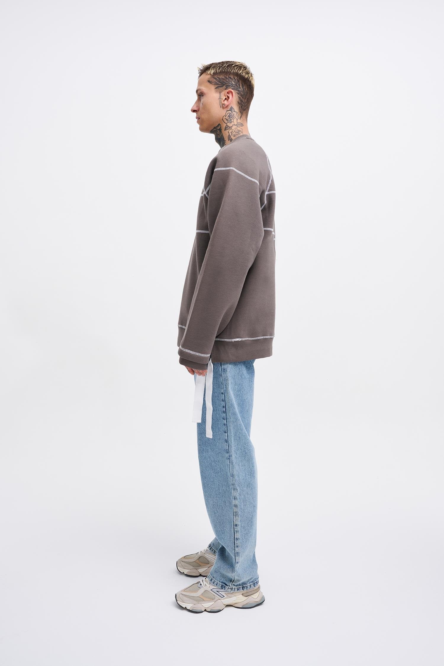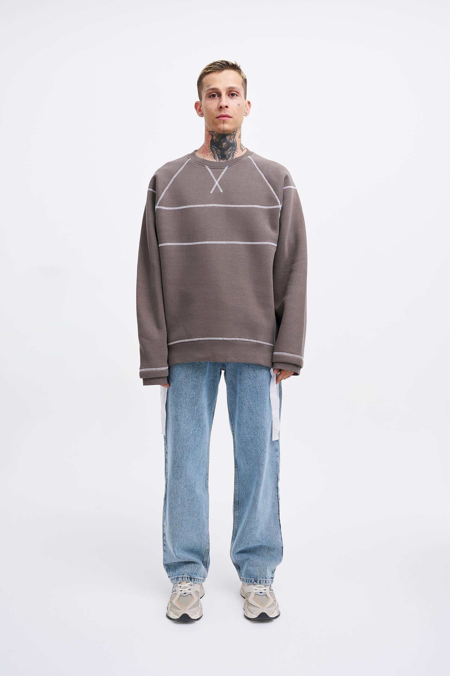 Erkek Dikiş Detay Oversize Sweatshirt Antrasit