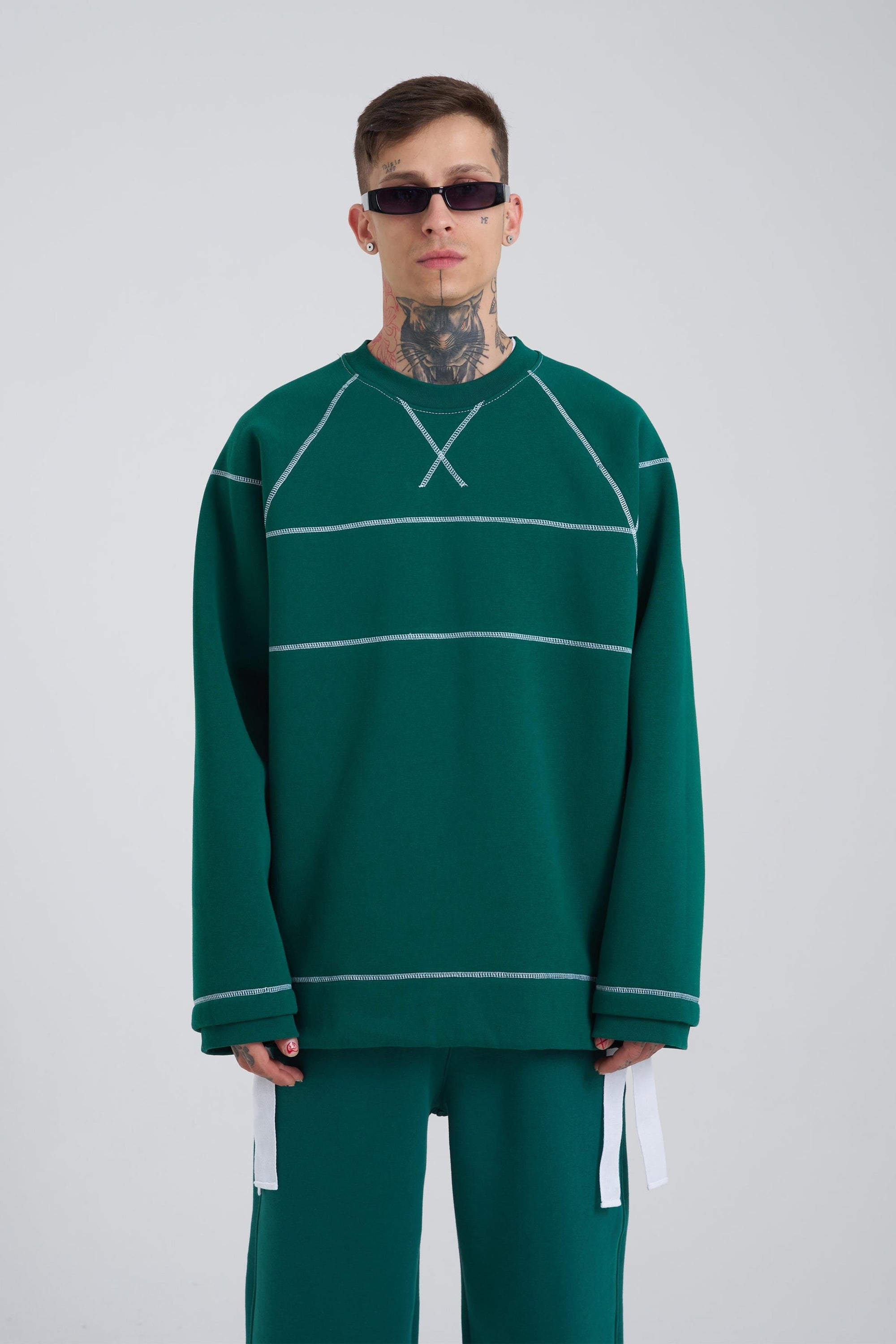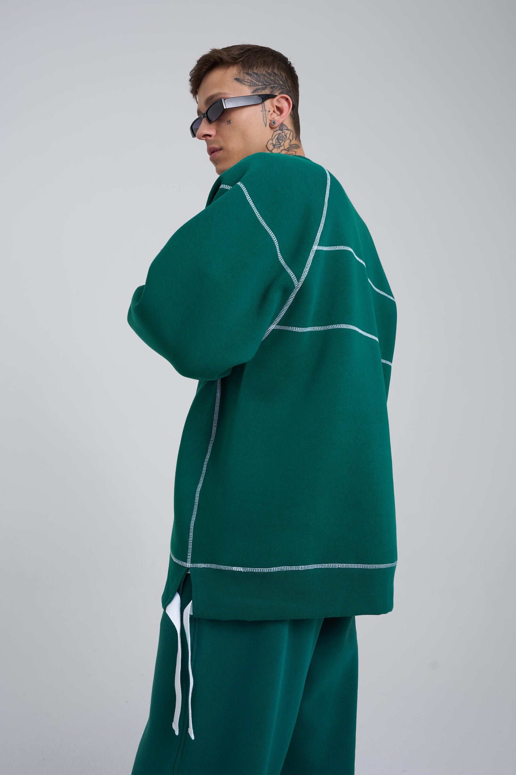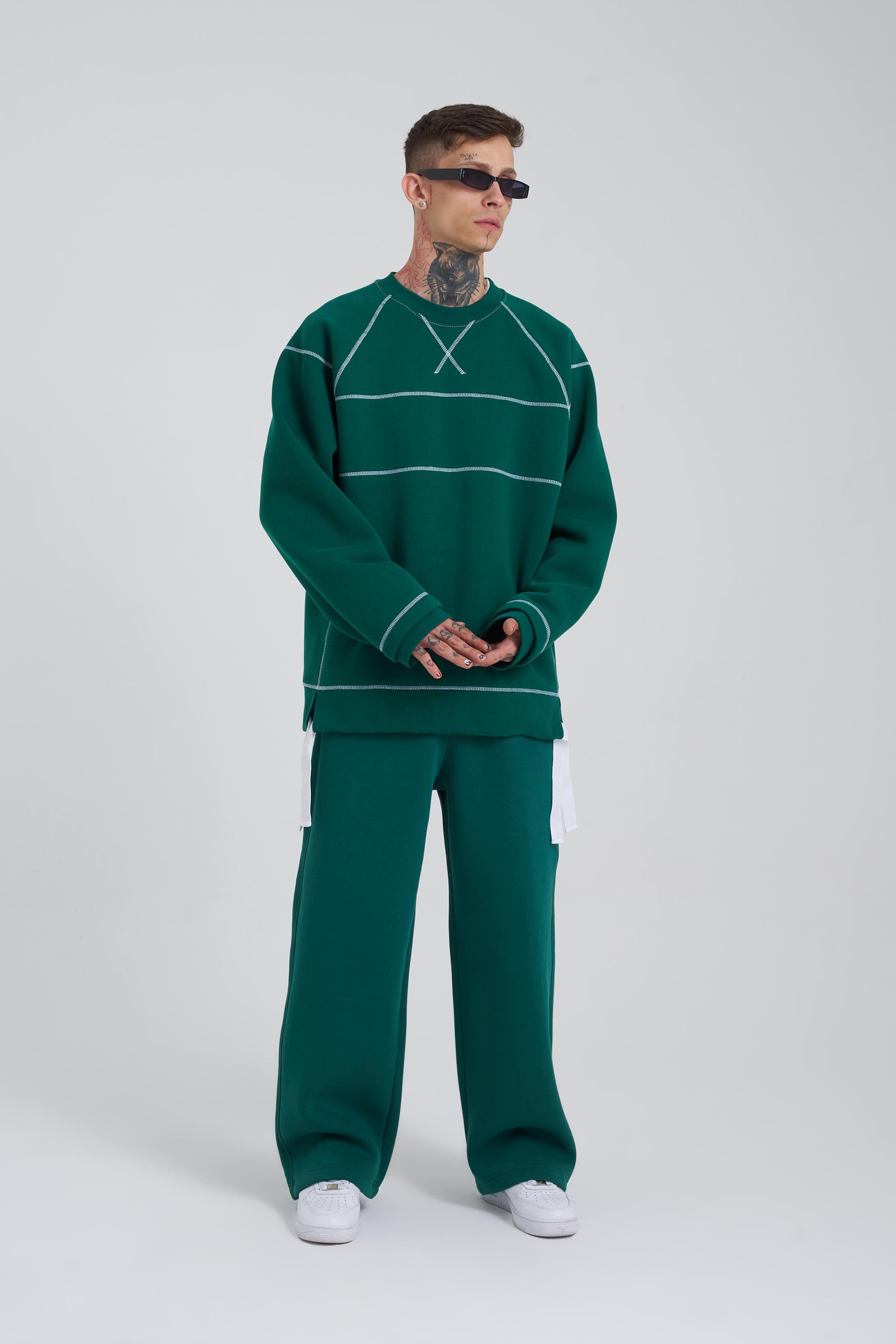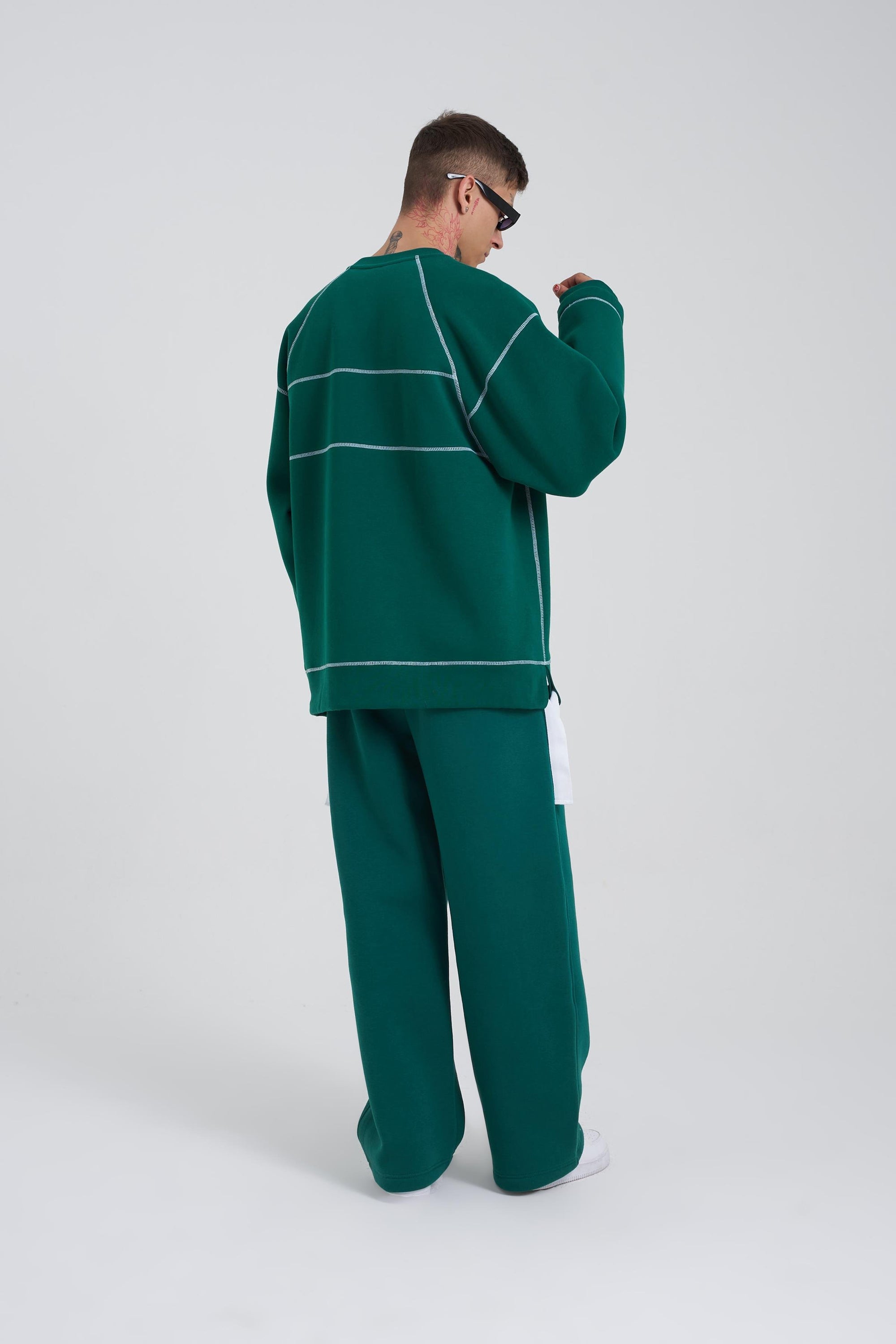 Erkek Dikiş Detay Oversize Sweatshirt Petrol Yeşili