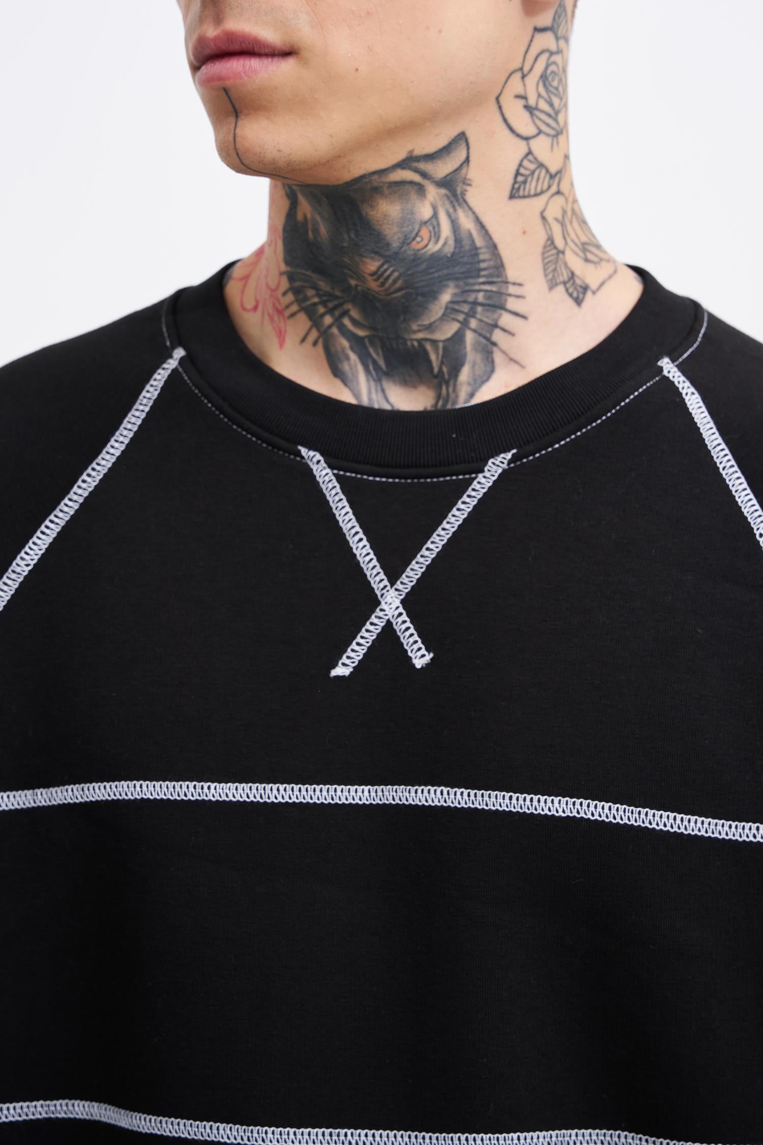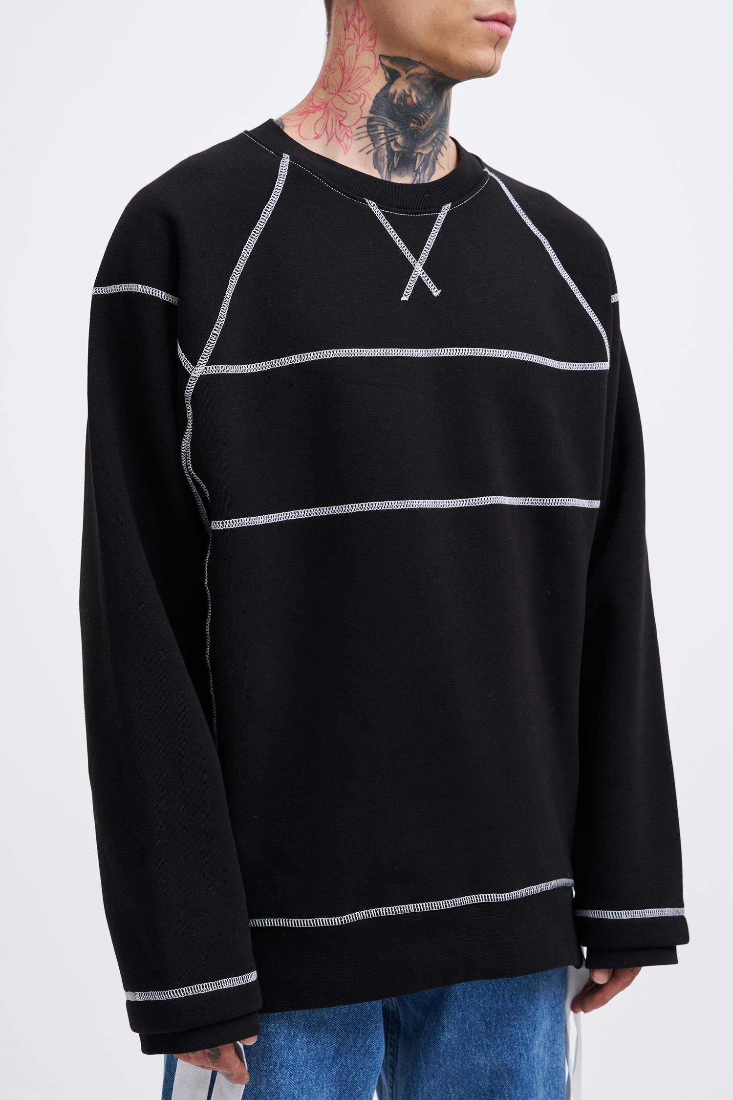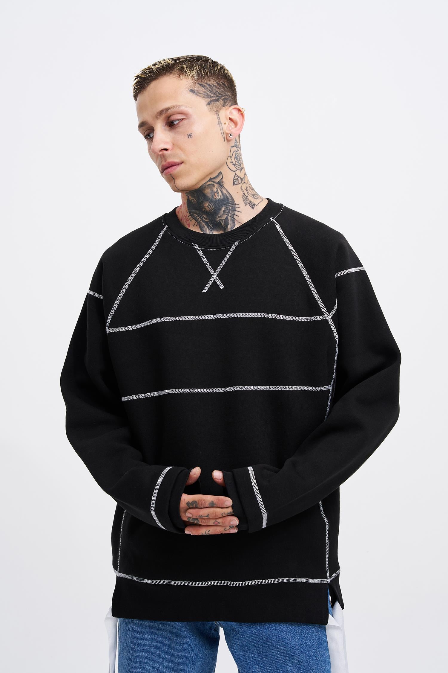 Erkek Dikiş Detay Oversize Sweatshirt Siyah