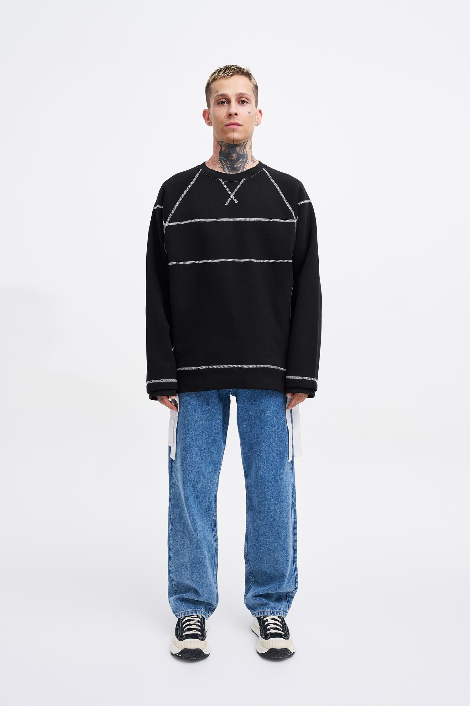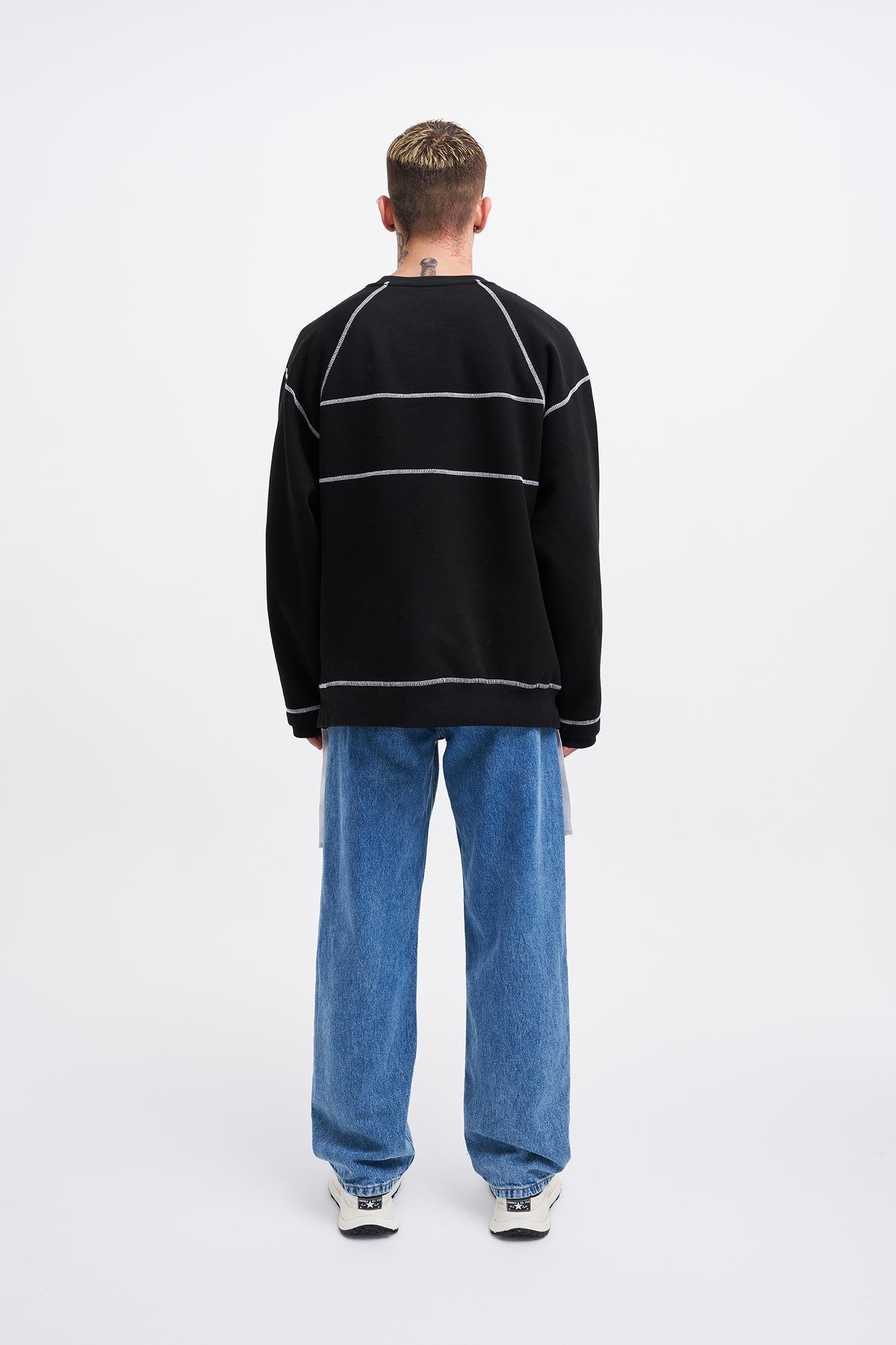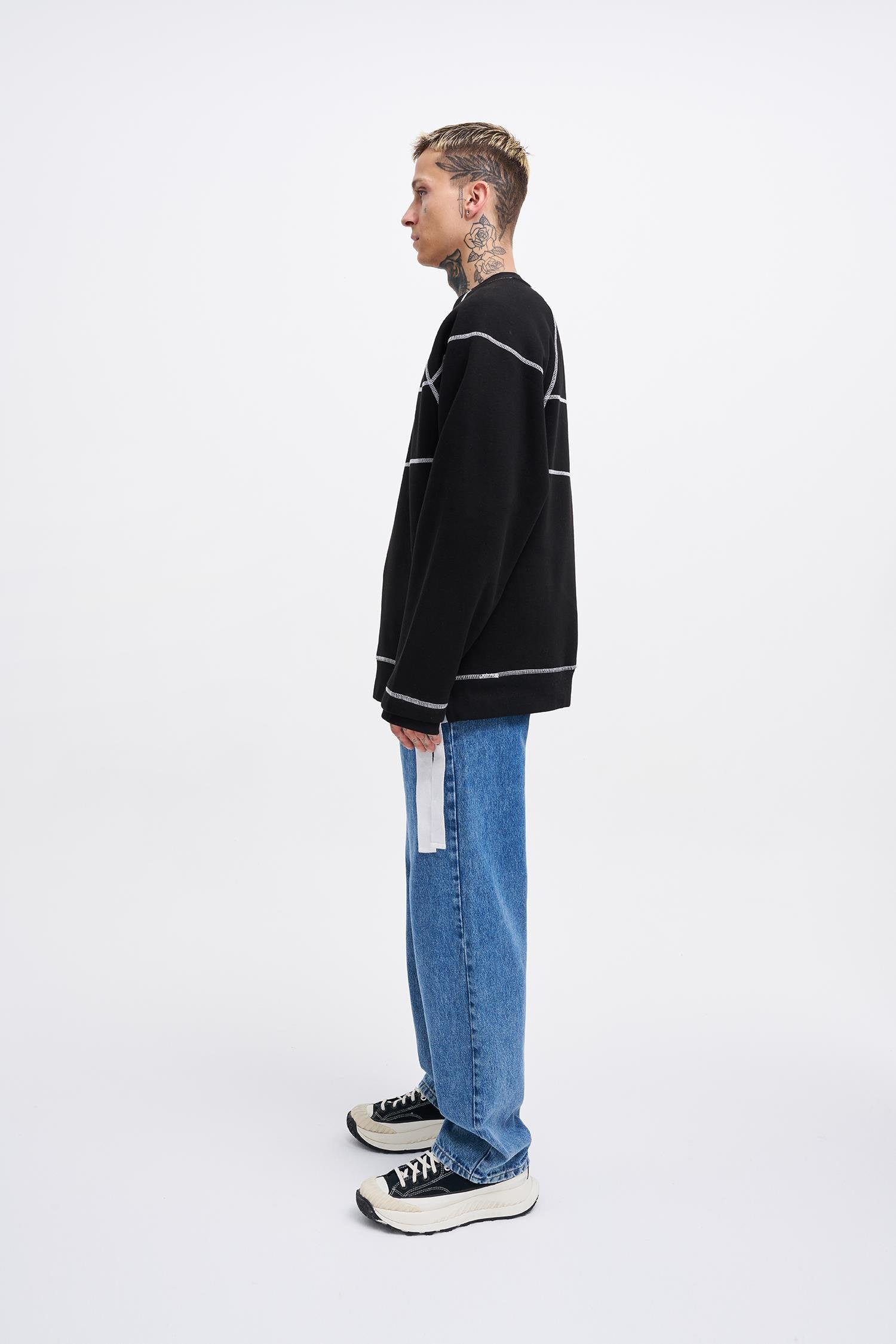 Erkek Dikiş Detay Oversize Sweatshirt Siyah