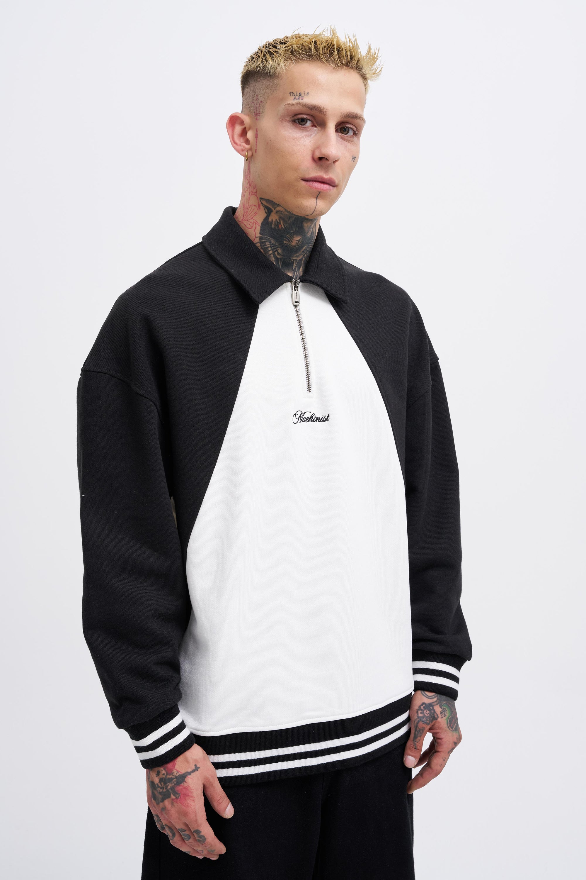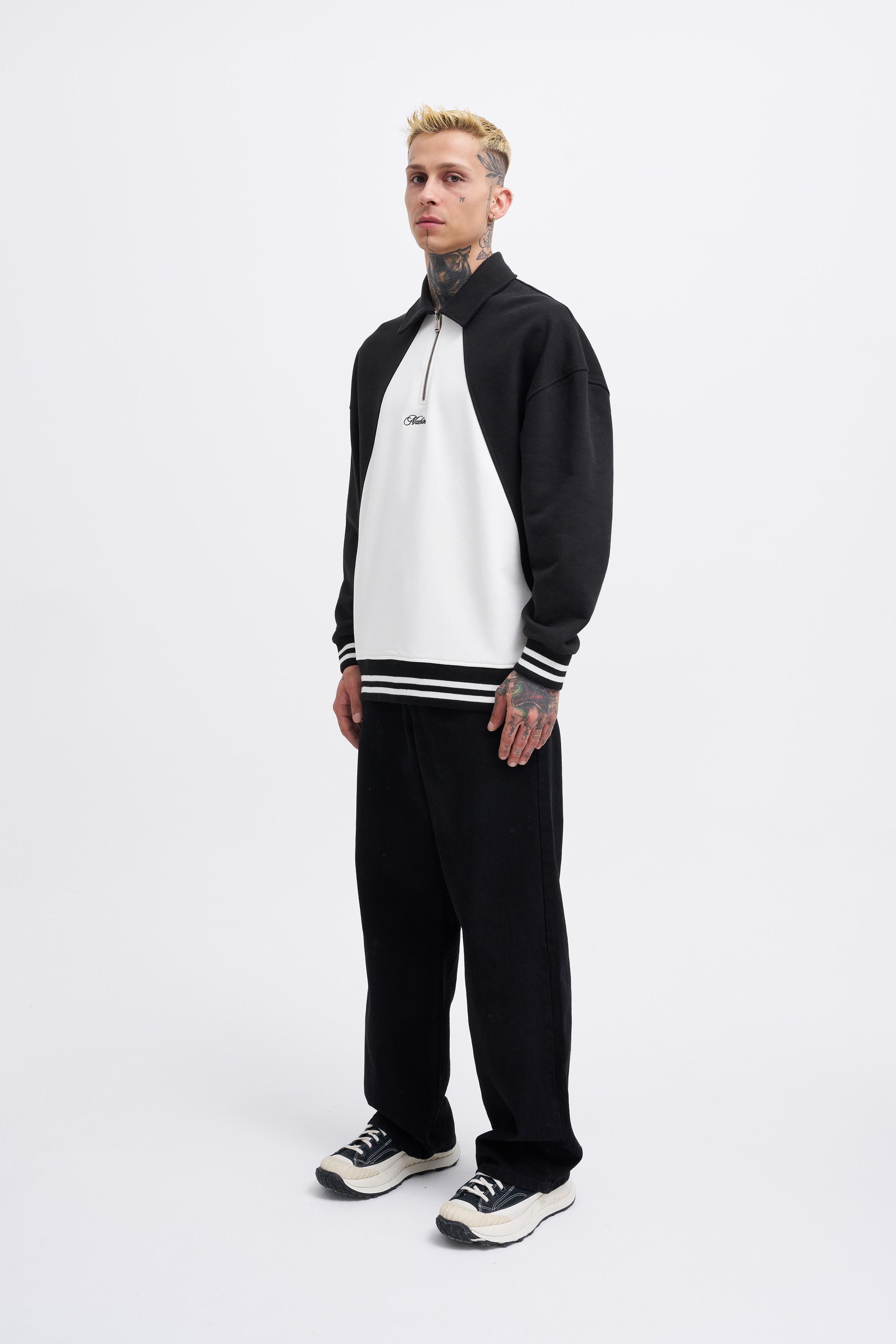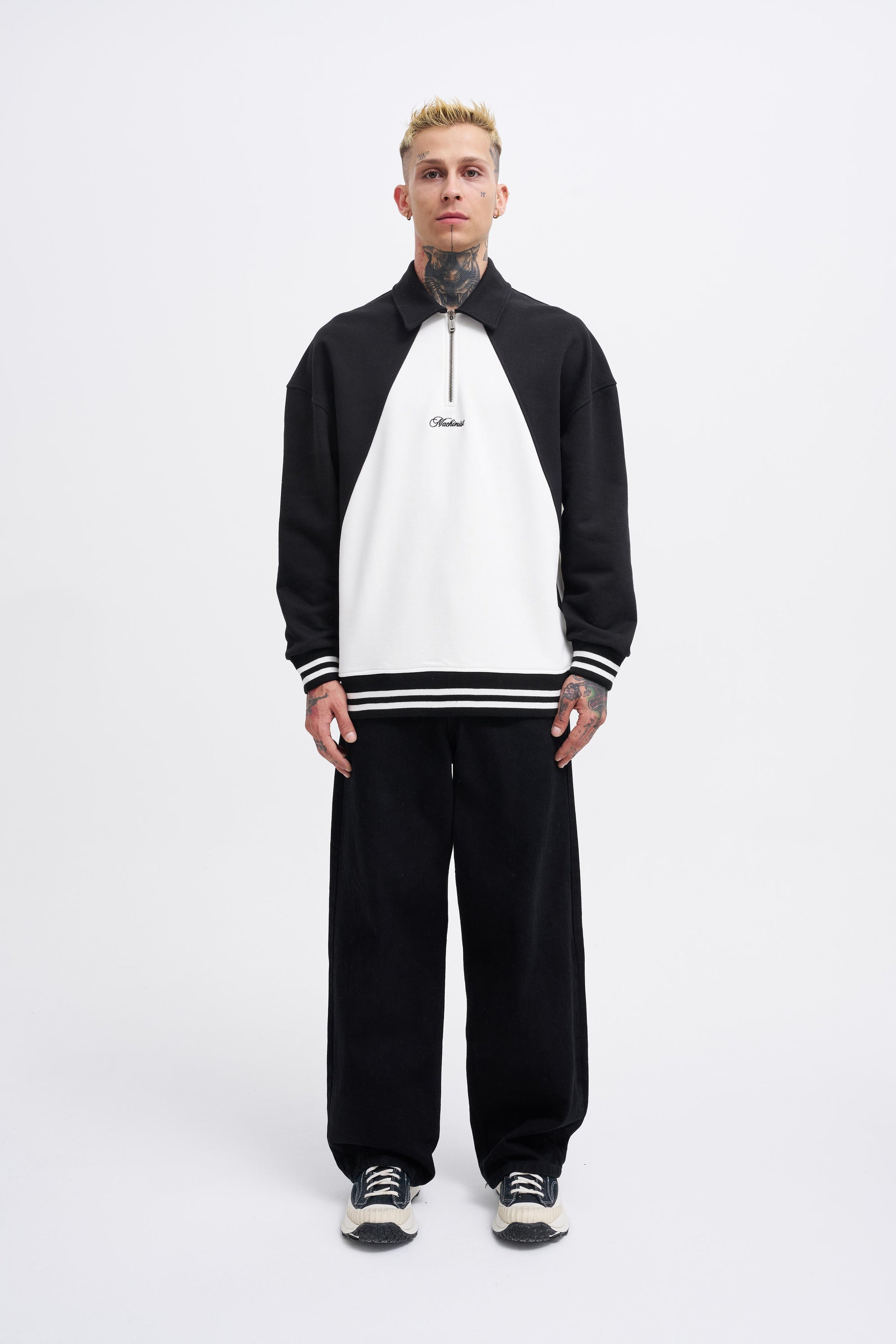 Erkek Embroidered Detailed Polo Sweatshirt Ekru-Siyah