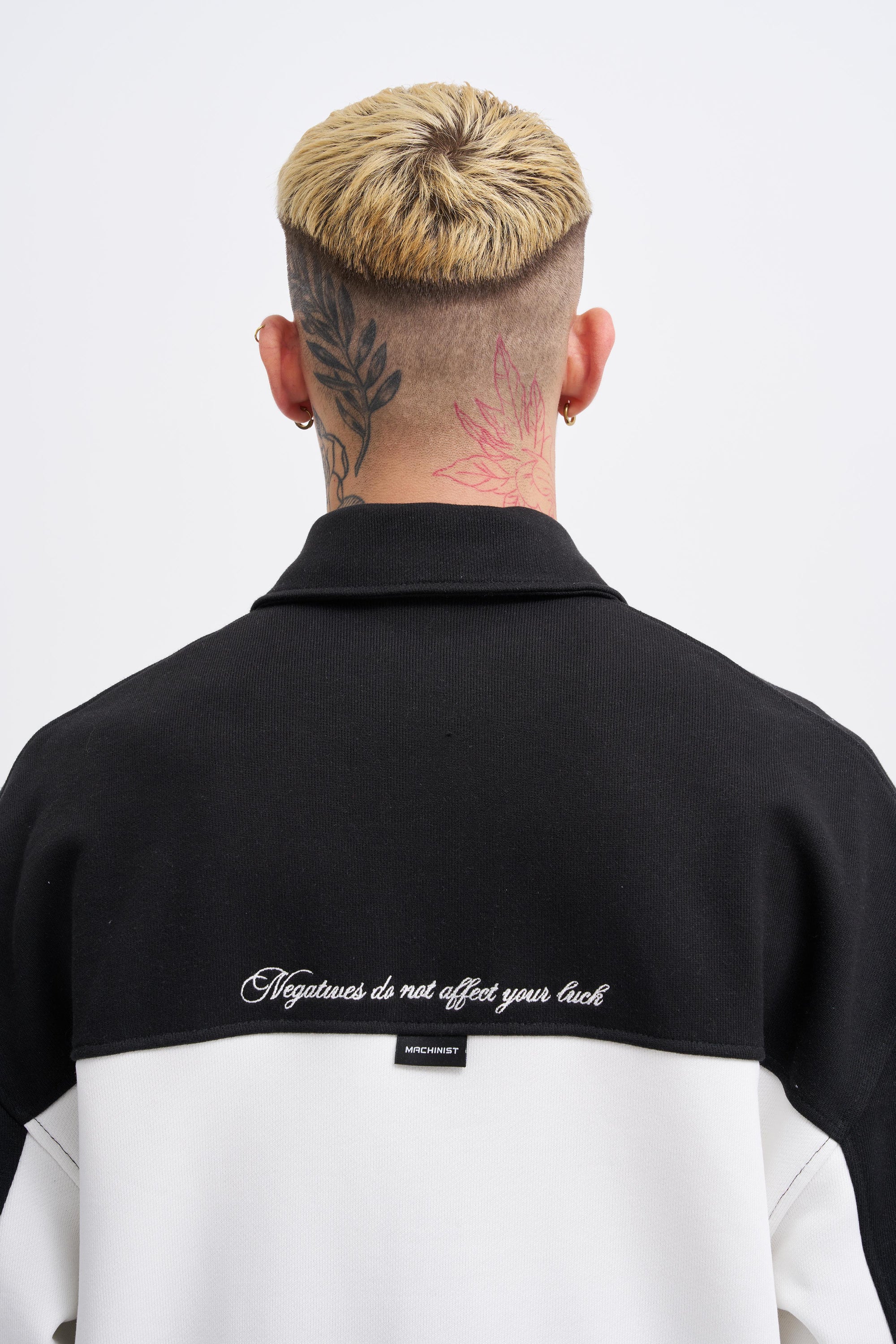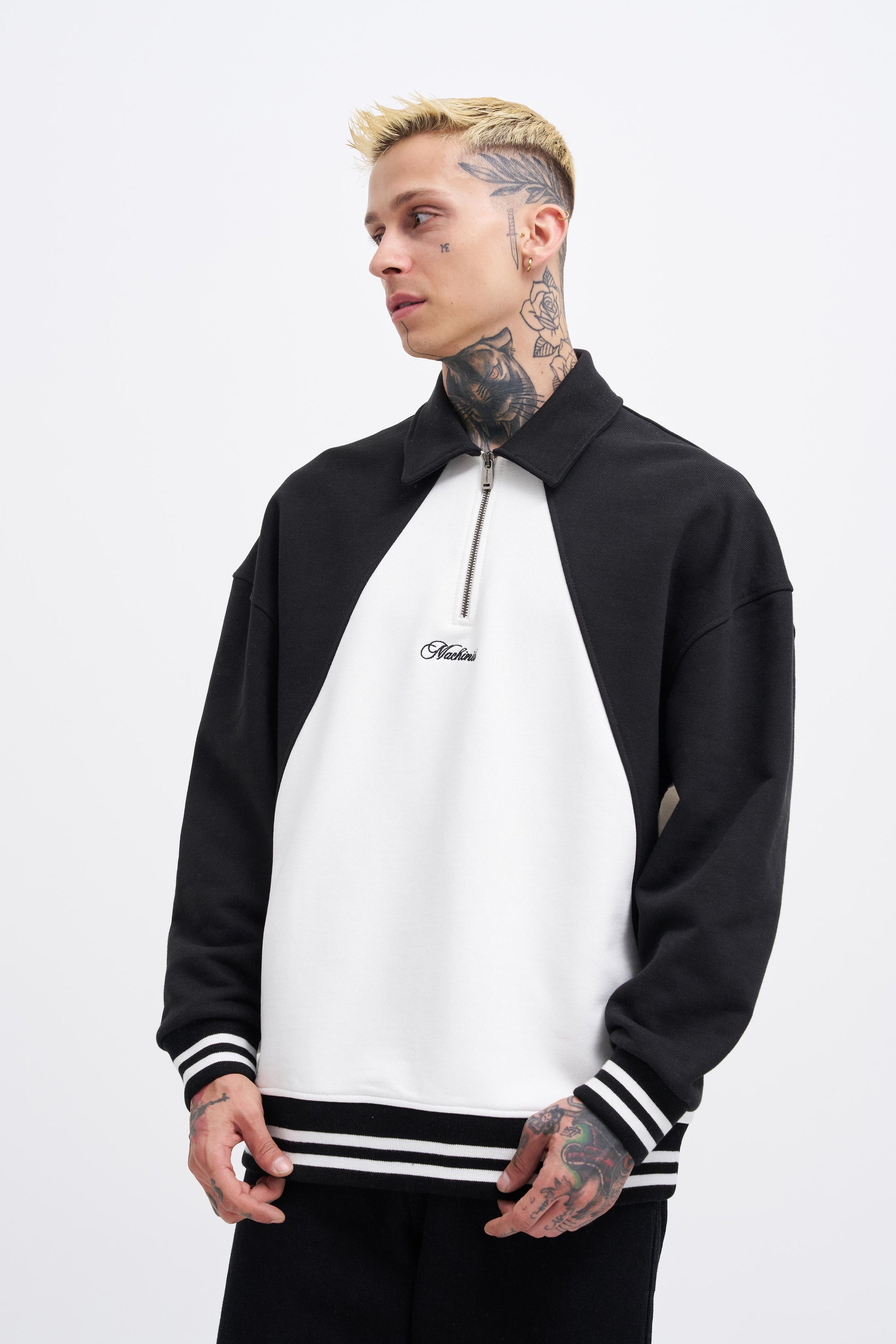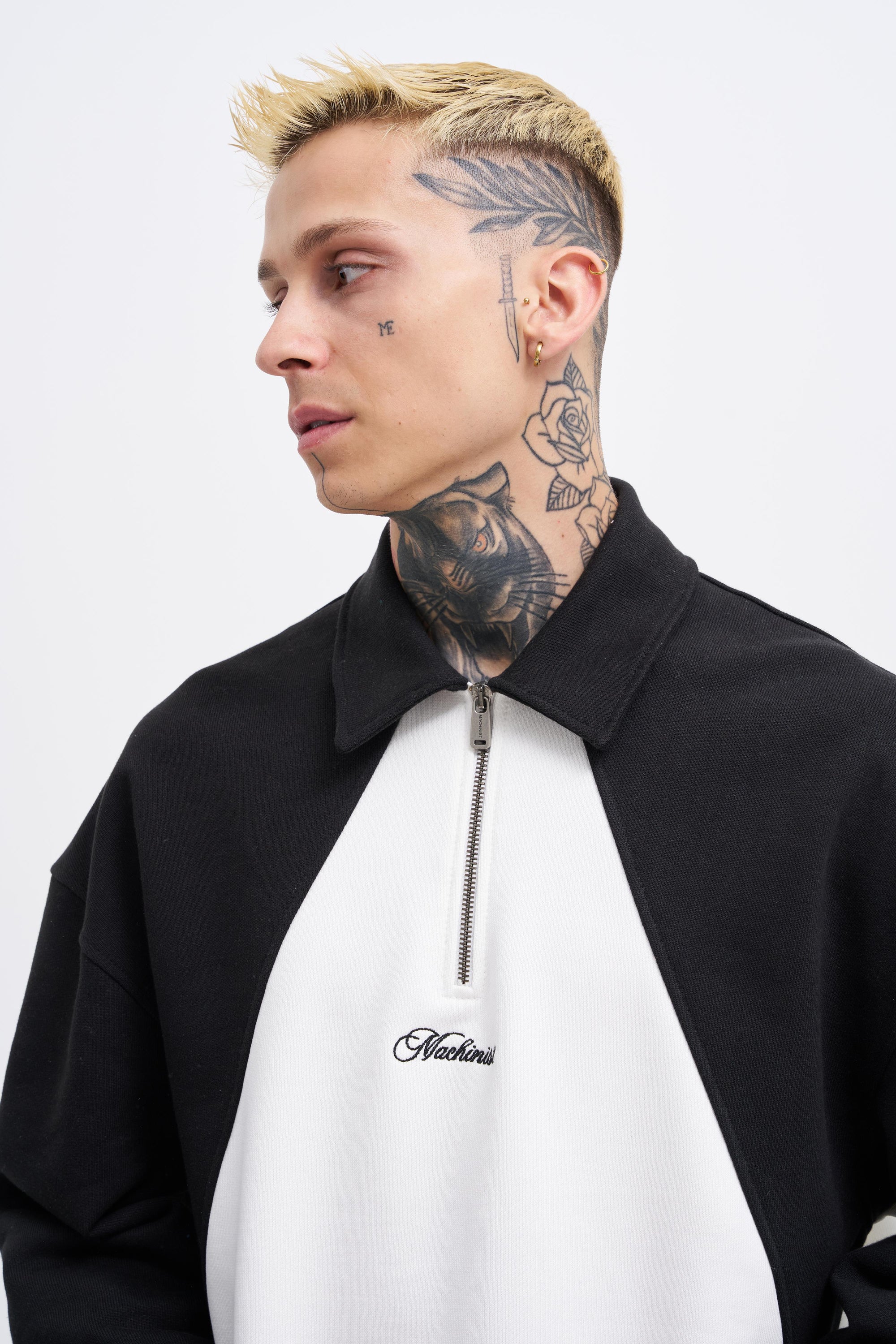 Erkek Embroidered Detailed Polo Sweatshirt Ekru-Siyah