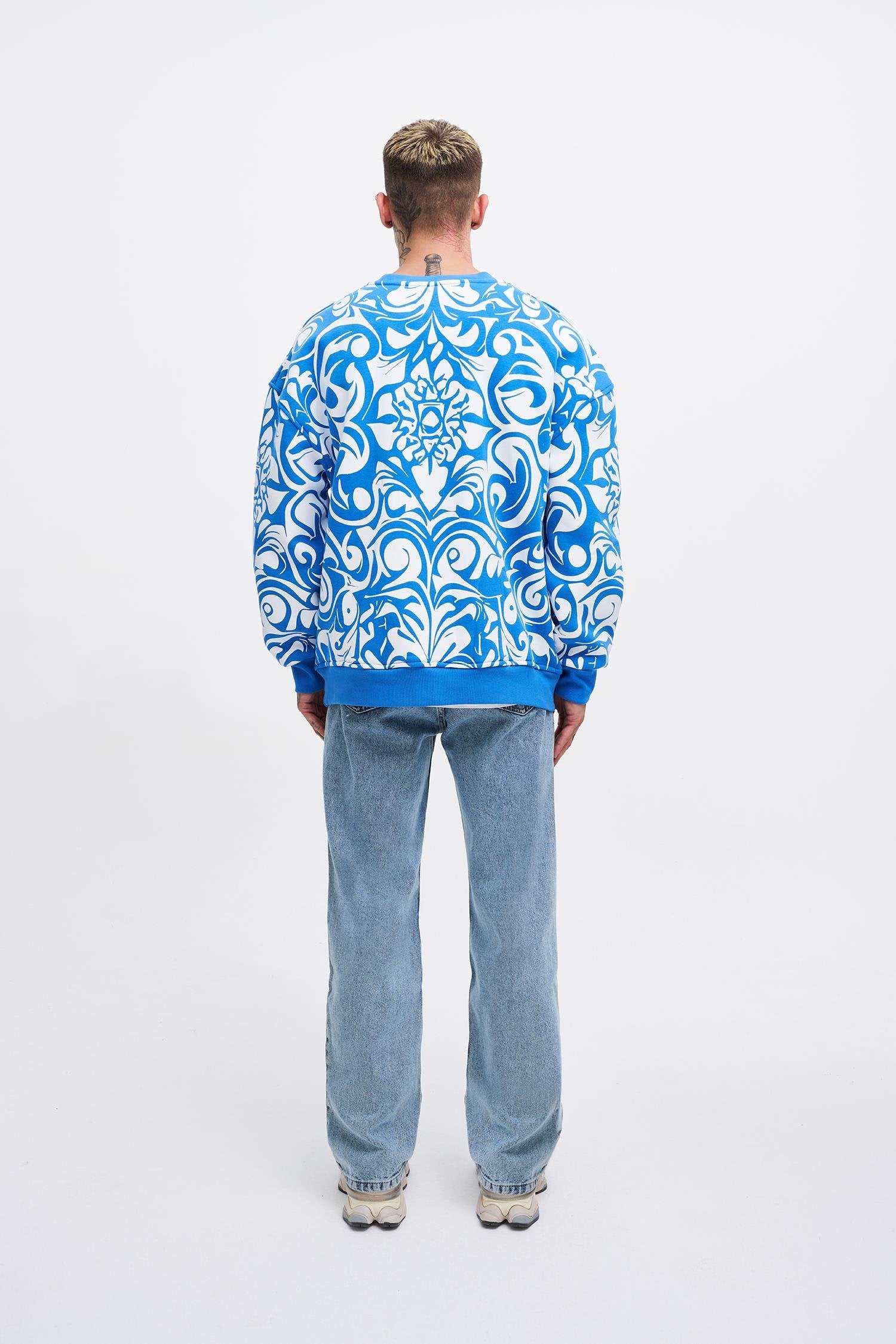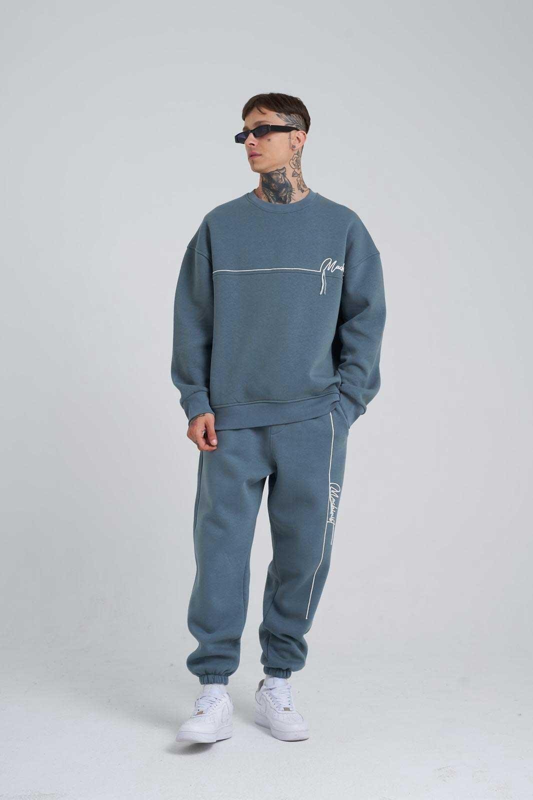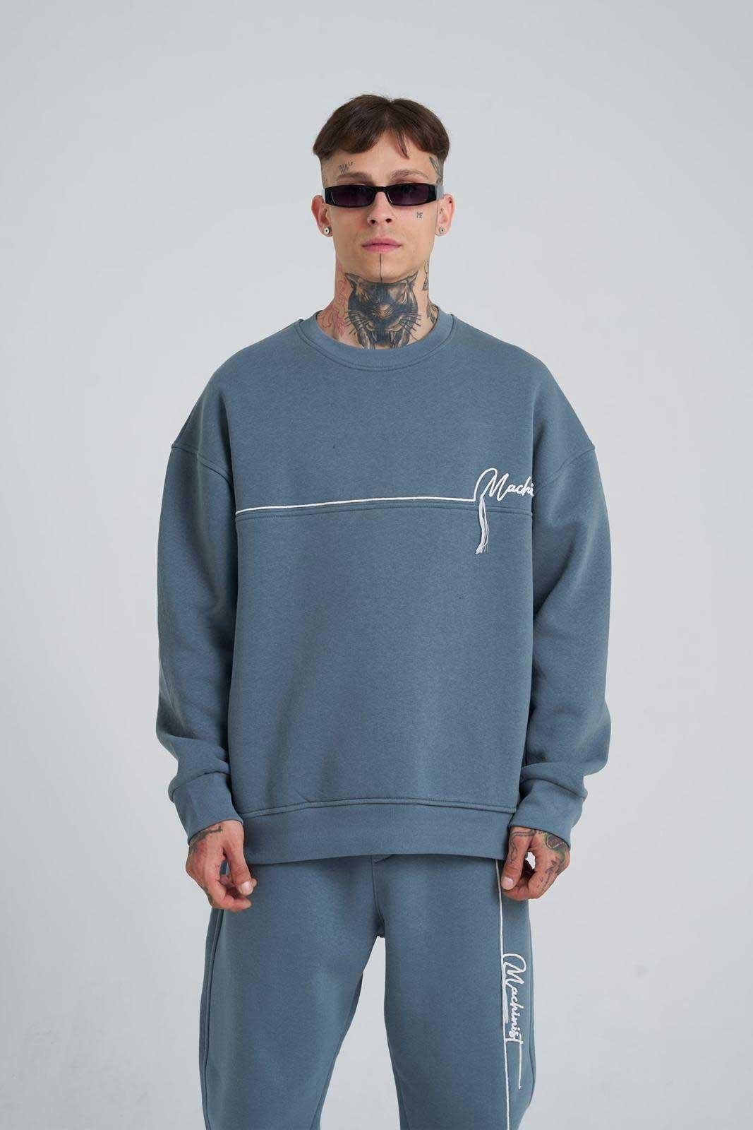 Erkek Oversize Nakışlı Sweatshirt Mavi Duman