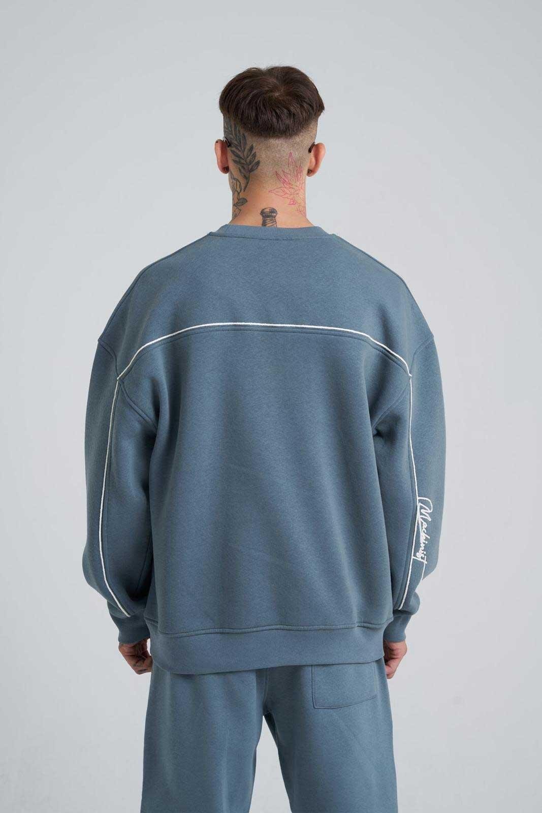 Erkek Dikiş Detay Oversize Sweatshirt Saks Mavi