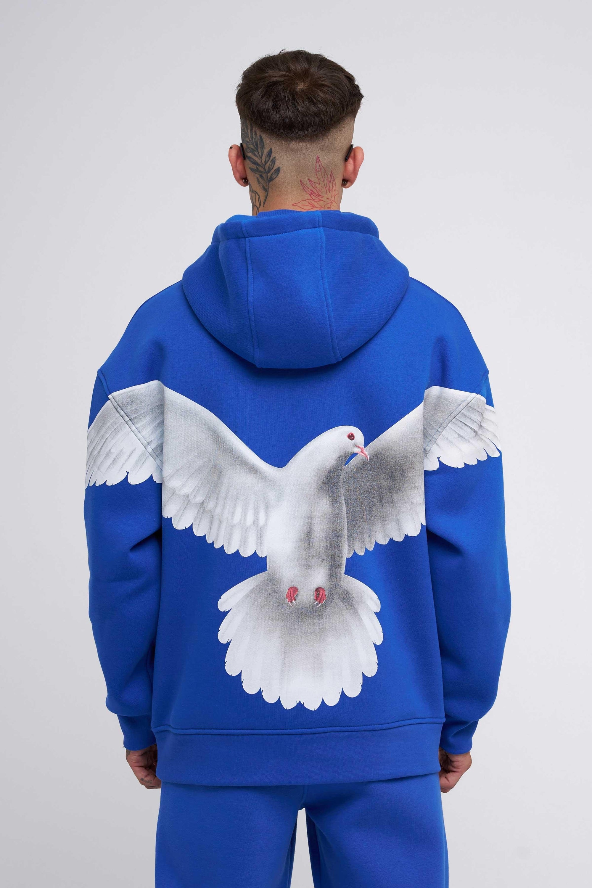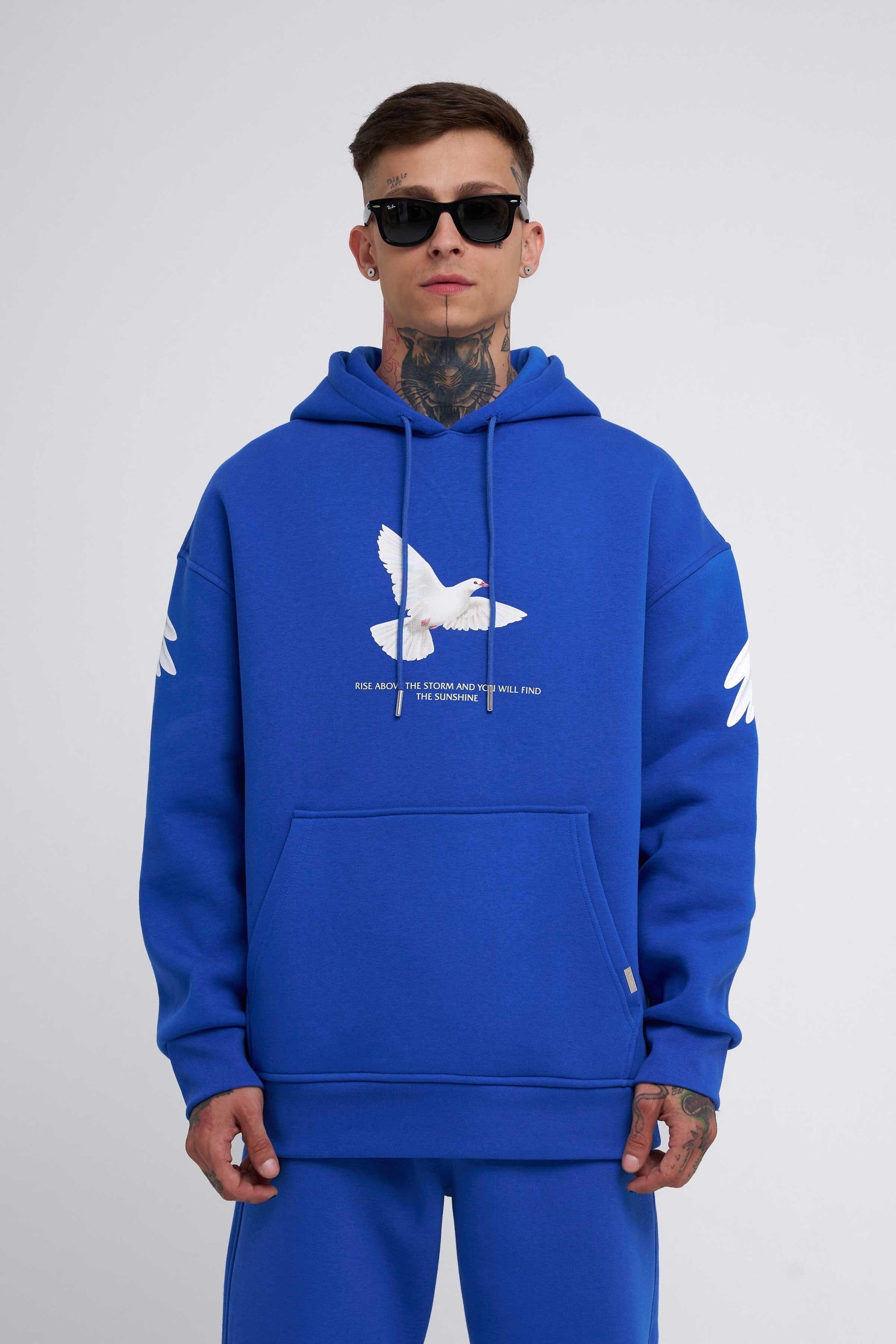 Erkek Rise Above Baskılı Kapüşonlu Oversize Sweatshirt Saks Mavi