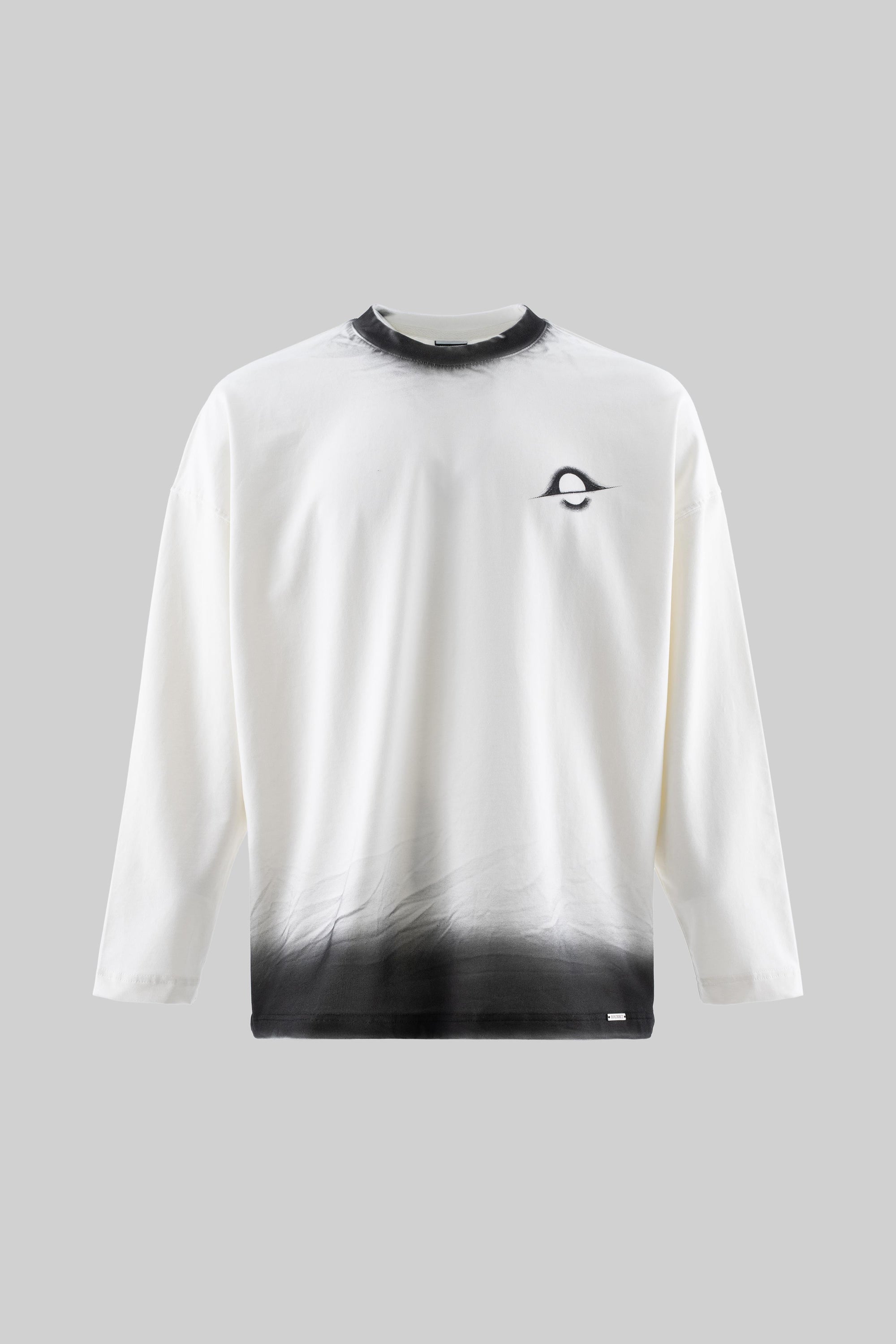 Erkek Sprey Boya Baskılı Oversize Uzun Kollu Tişört Ekru