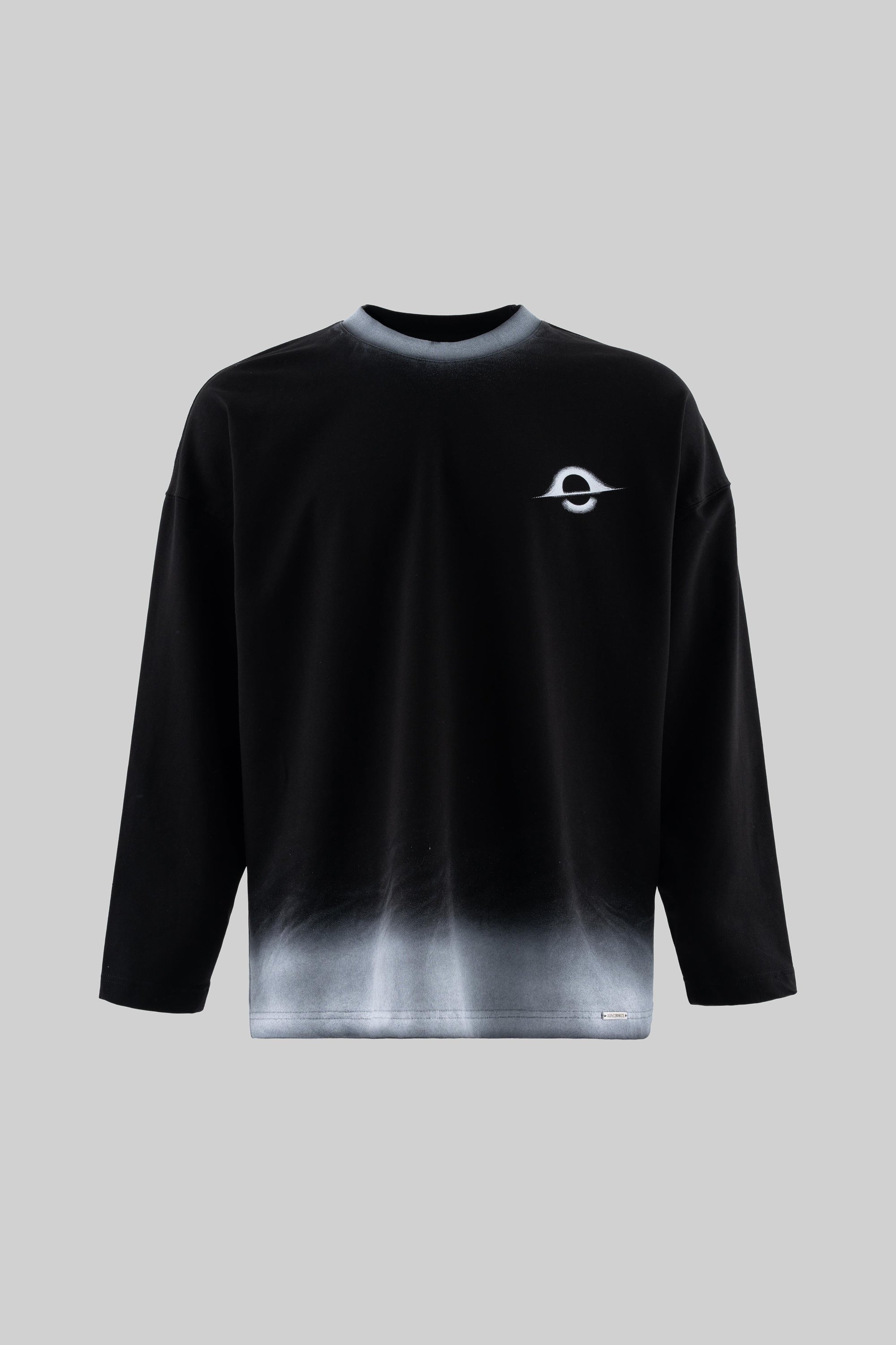 Erkek Sprey Boya Baskılı Oversize Uzun Kollu Tişört Siyah