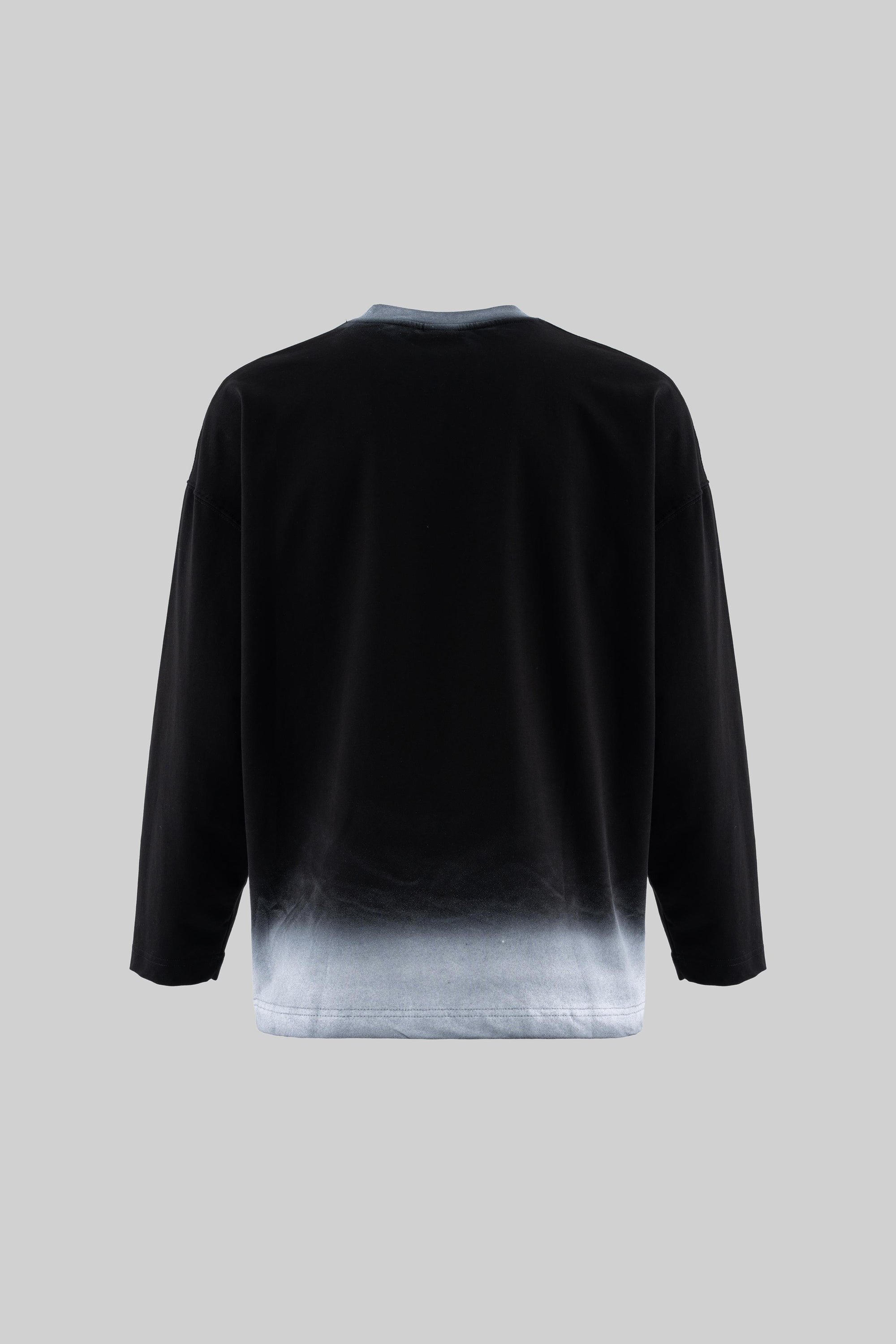 Erkek Hand Made Boya Baskılı Oversize Uzun Kollu Tişört Siyah