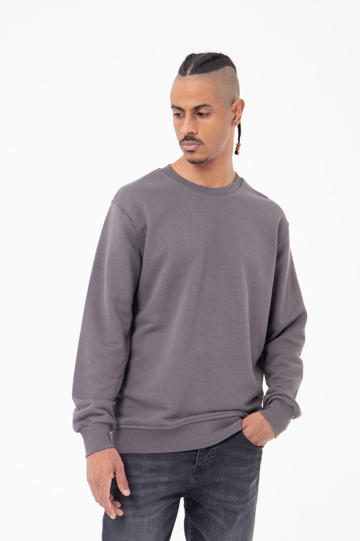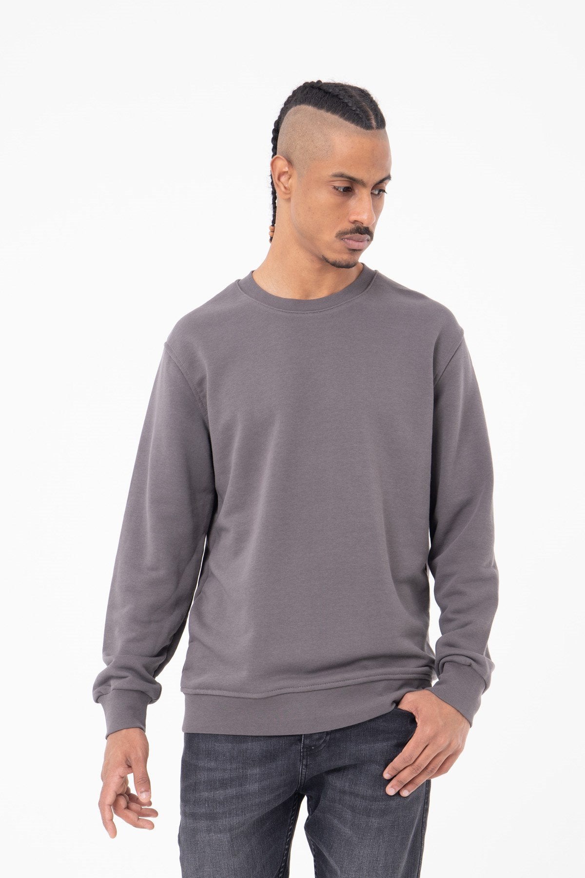 Erkek Regular Basic Şardonsuz Sweatshirt Füme