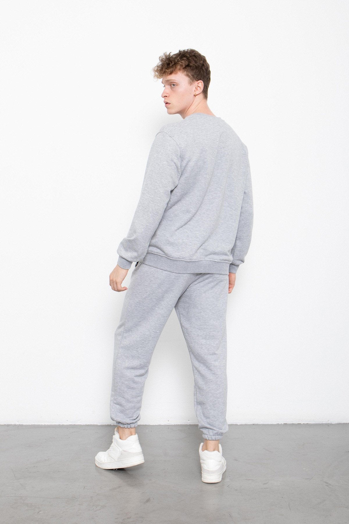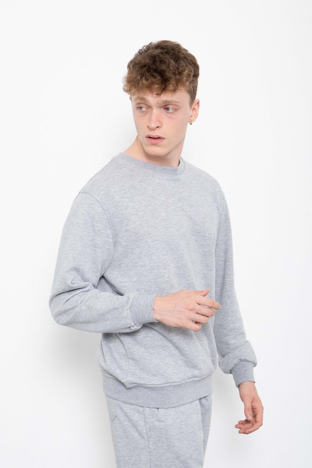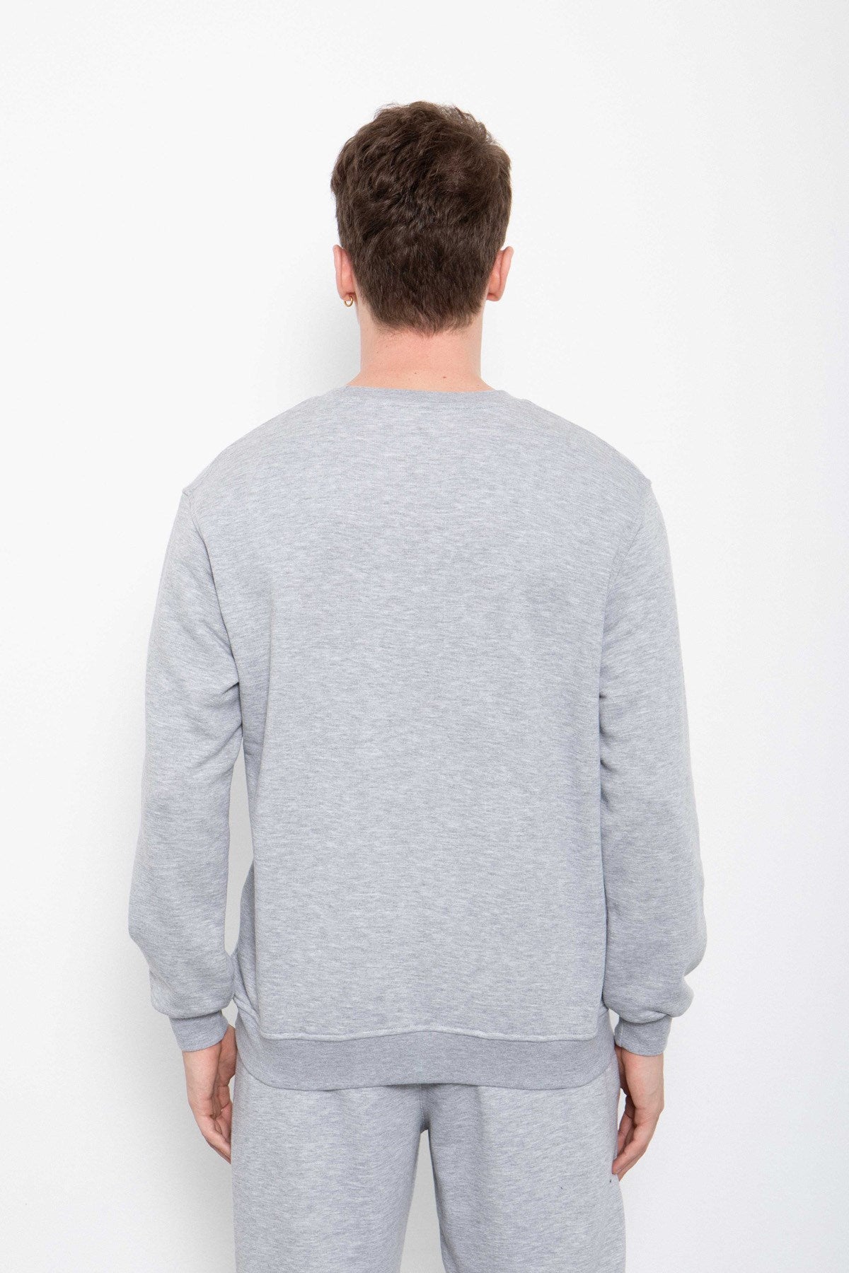 Erkek Regular Basic Şardonsuz Sweatshirt Gri Melanj