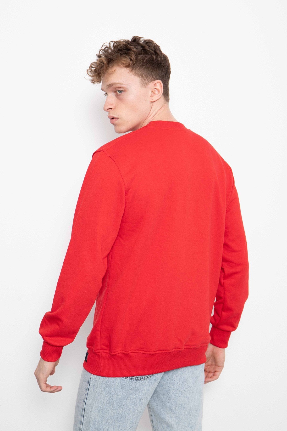Erkek Regular Basic Şardonsuz Sweatshirt Kırmızı