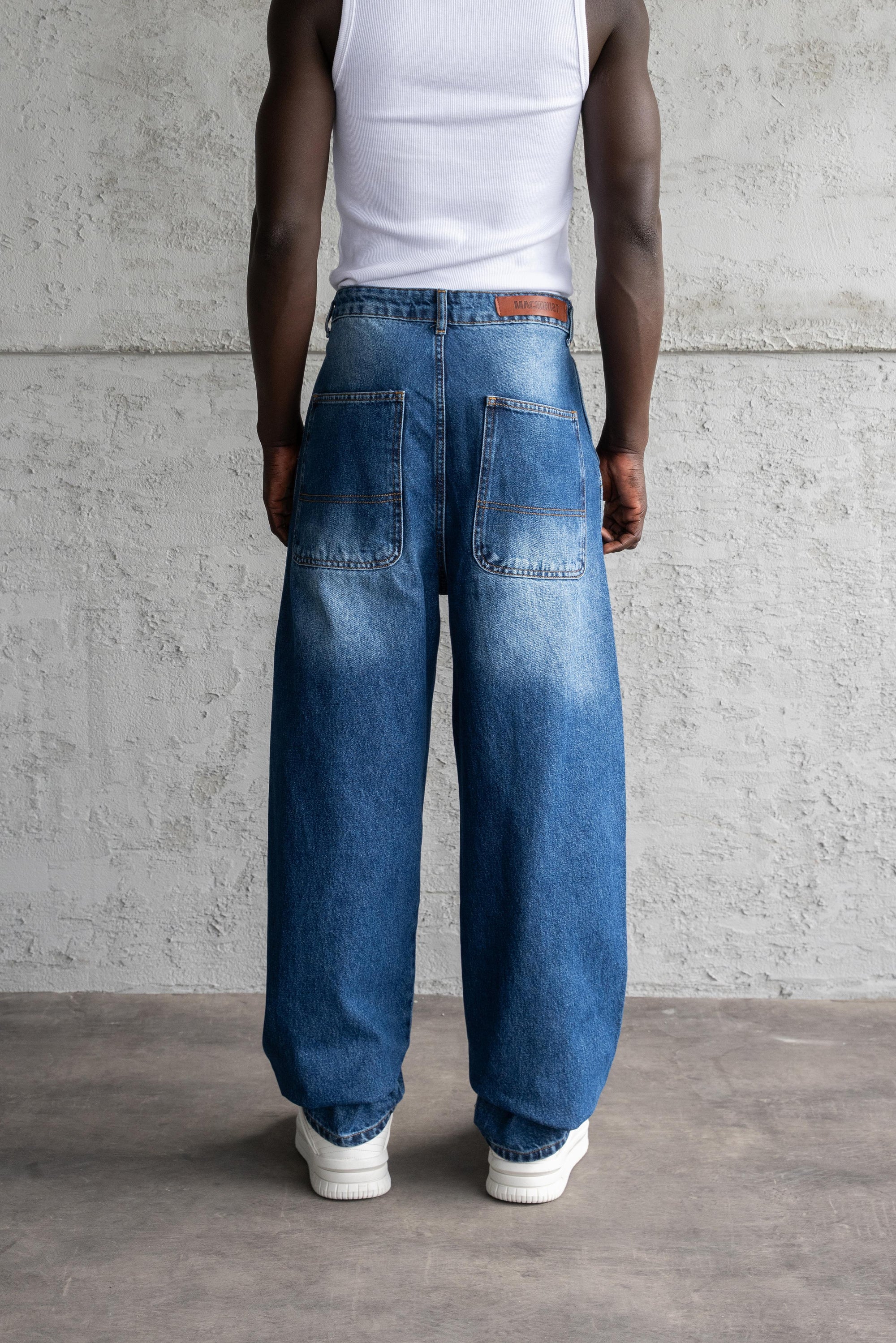 Erkek Basic Baloon Fit Baggy Jean Pantolon Koyu Mavi