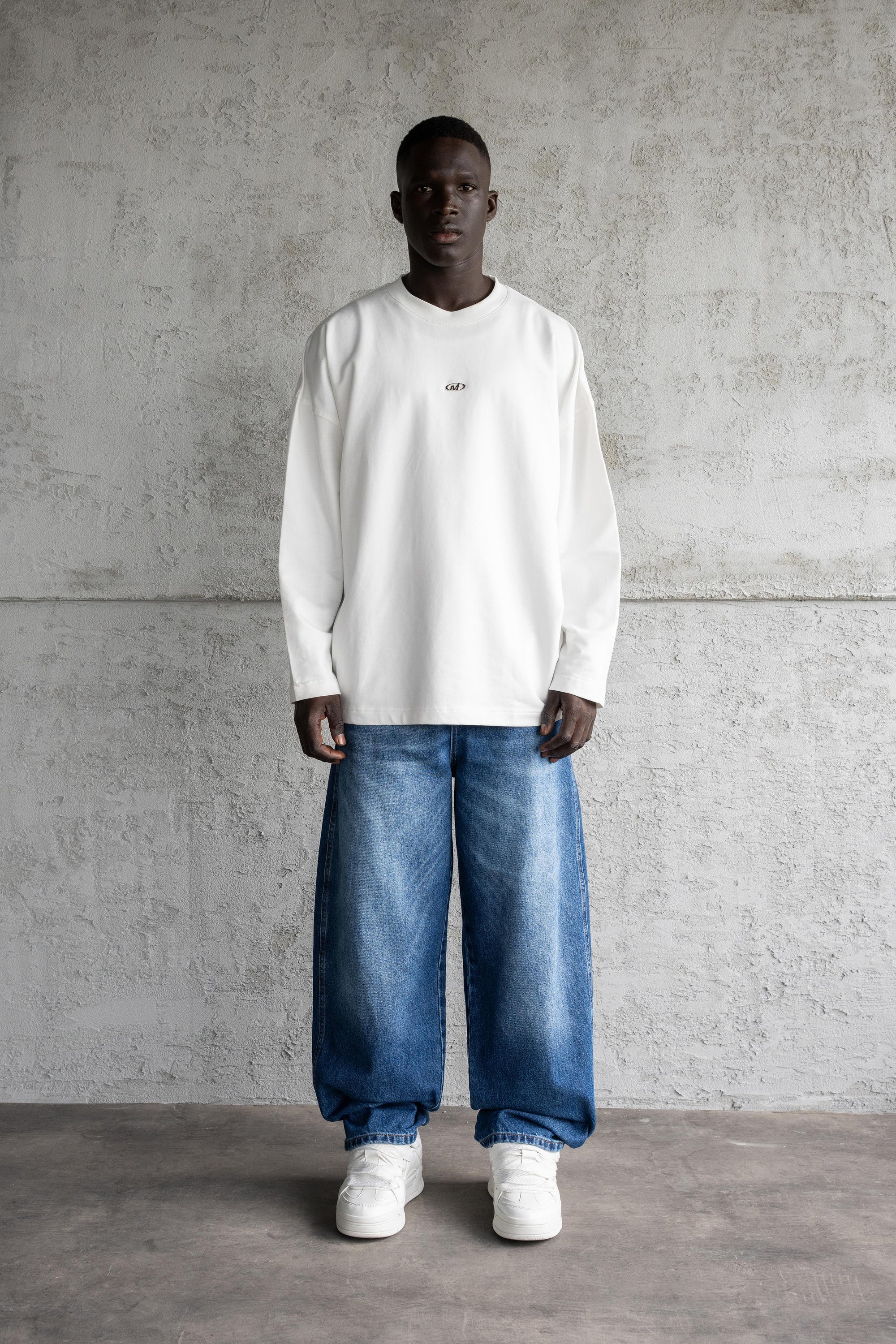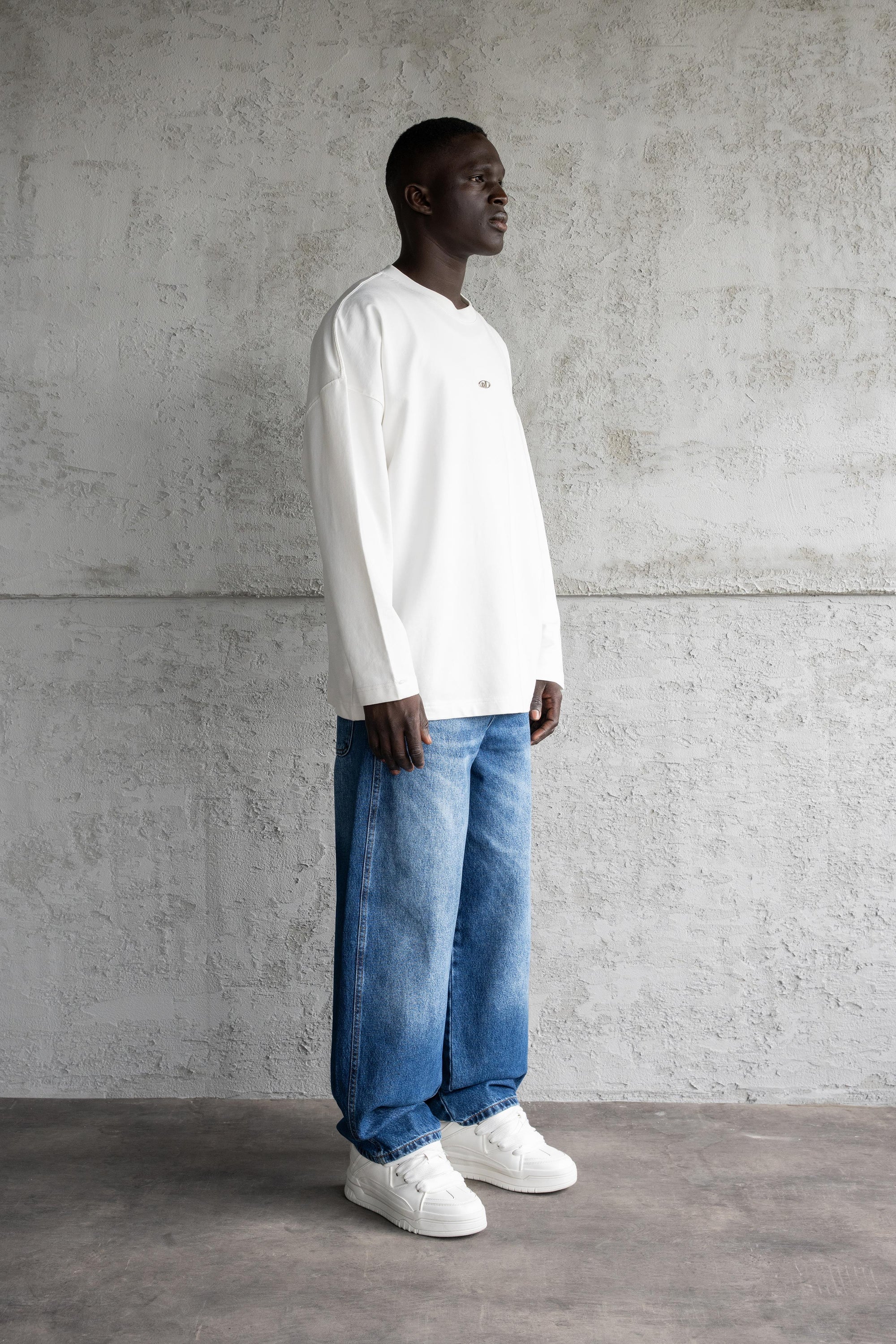 Erkek Hand Made Efekt Baskılı Oversize Uzun Kollu Tişört Ekru