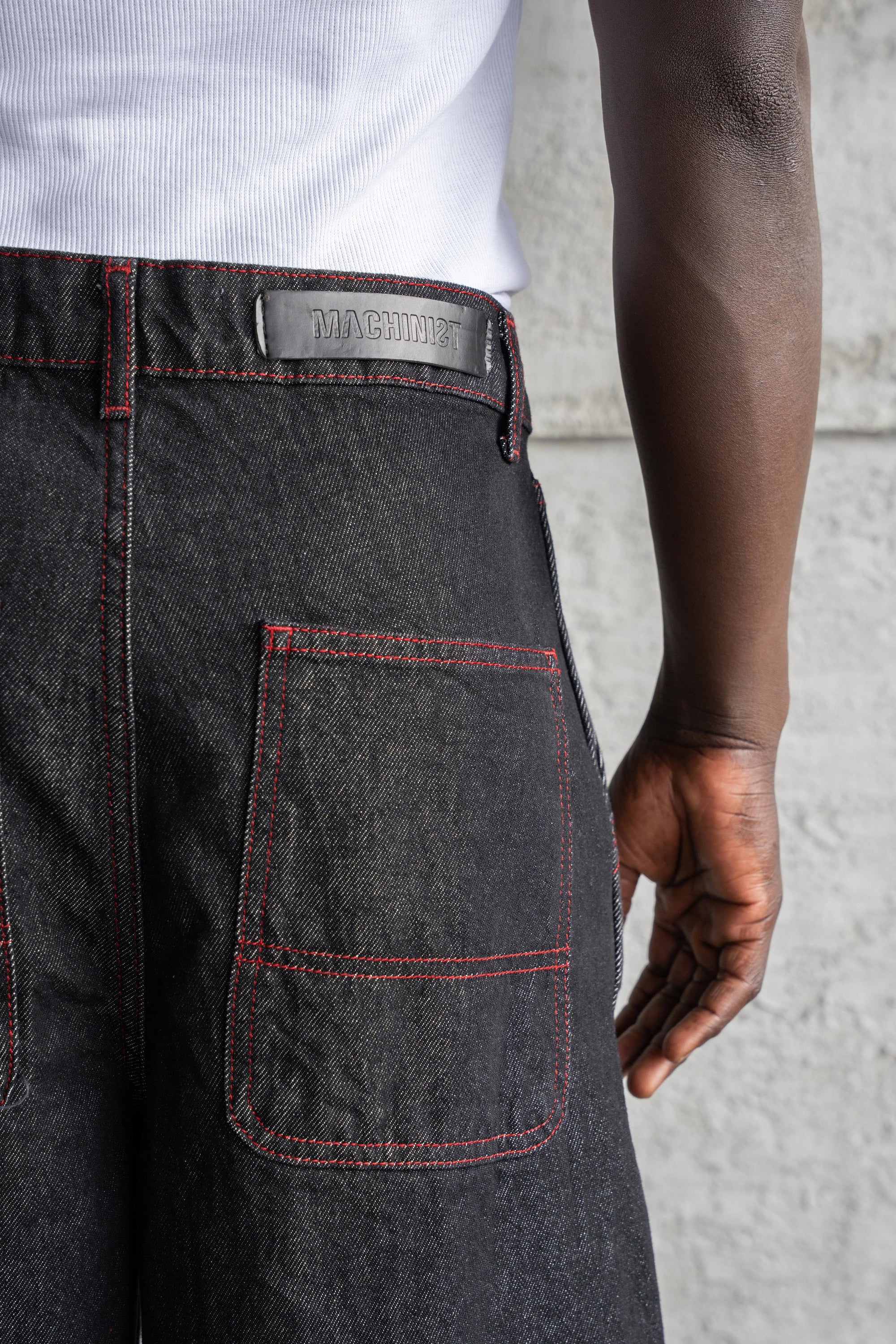 Erkek Baggy Çizgili Baloon Fit Jean Pantolon Siyah