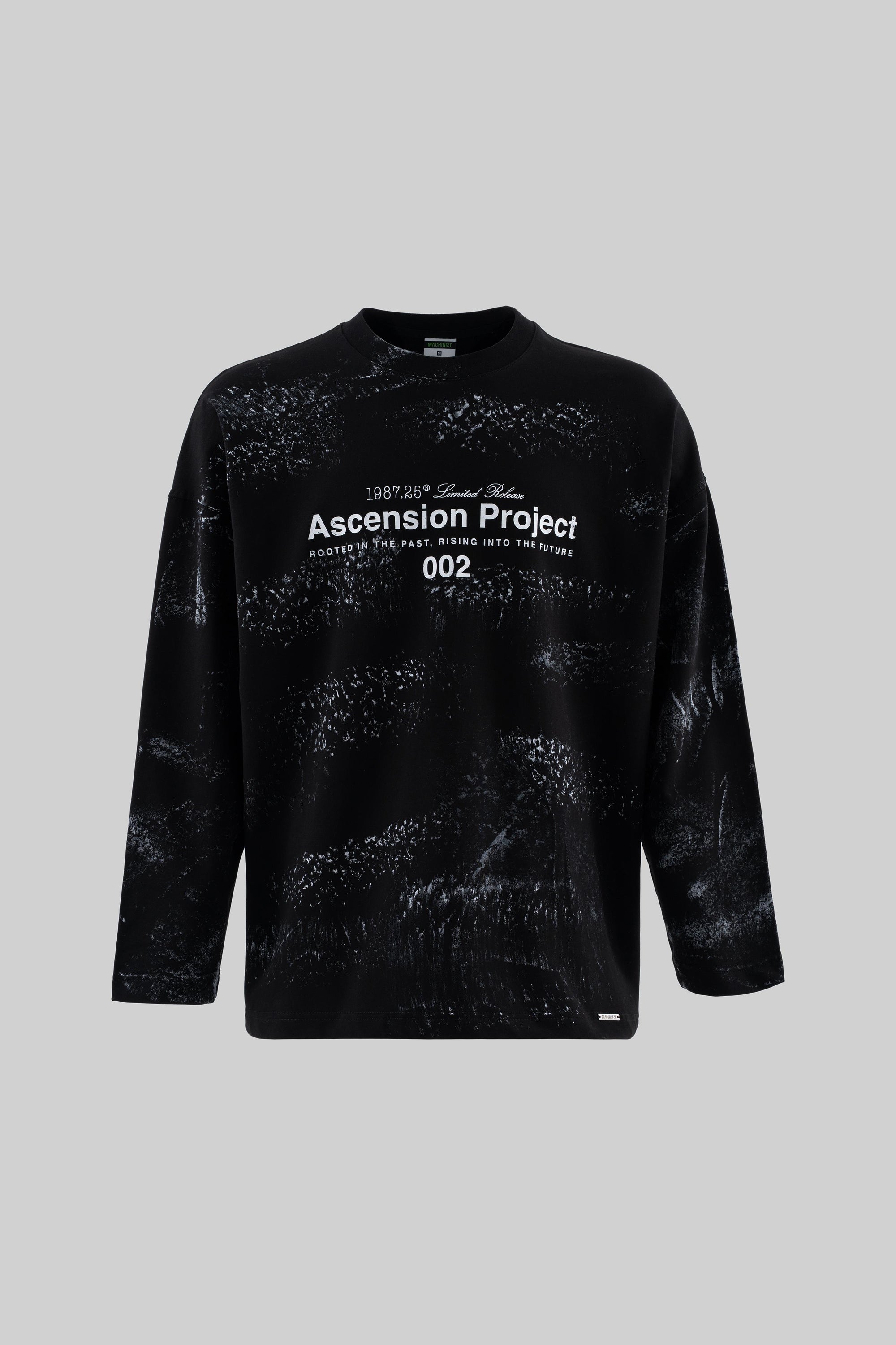 Erkek Efektli Baskılı Oversize Uzun Kollu Tişört Siyah
