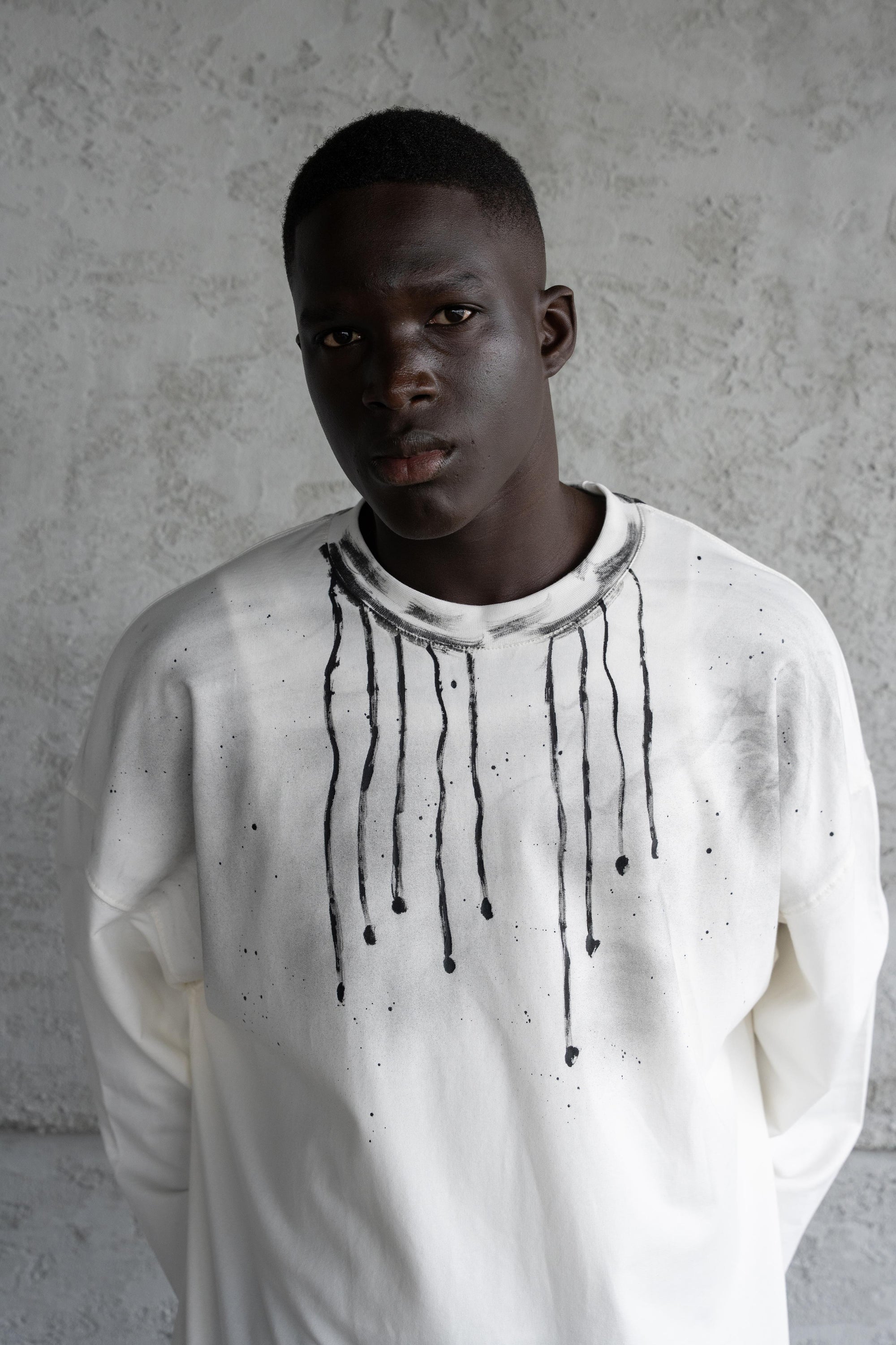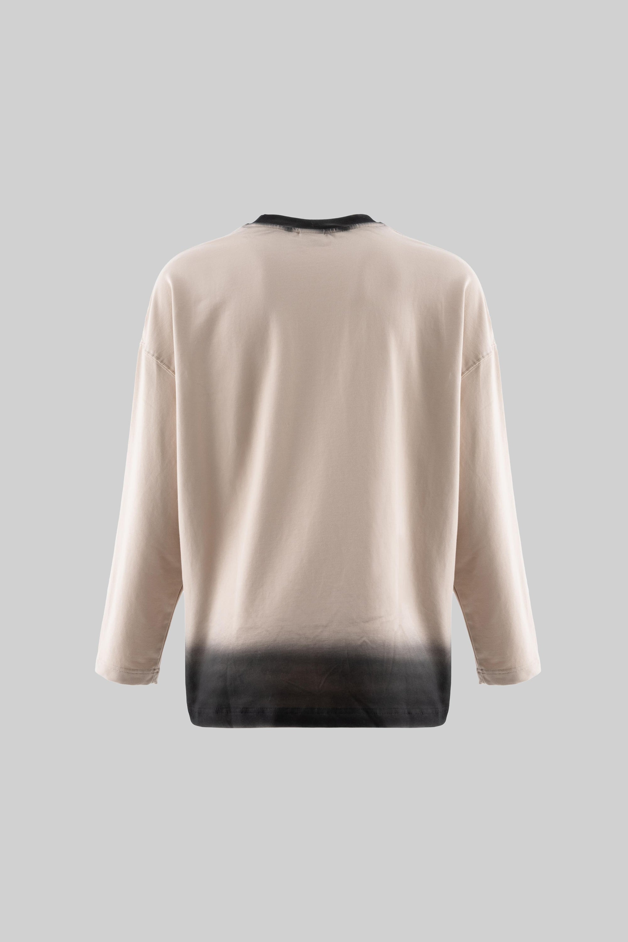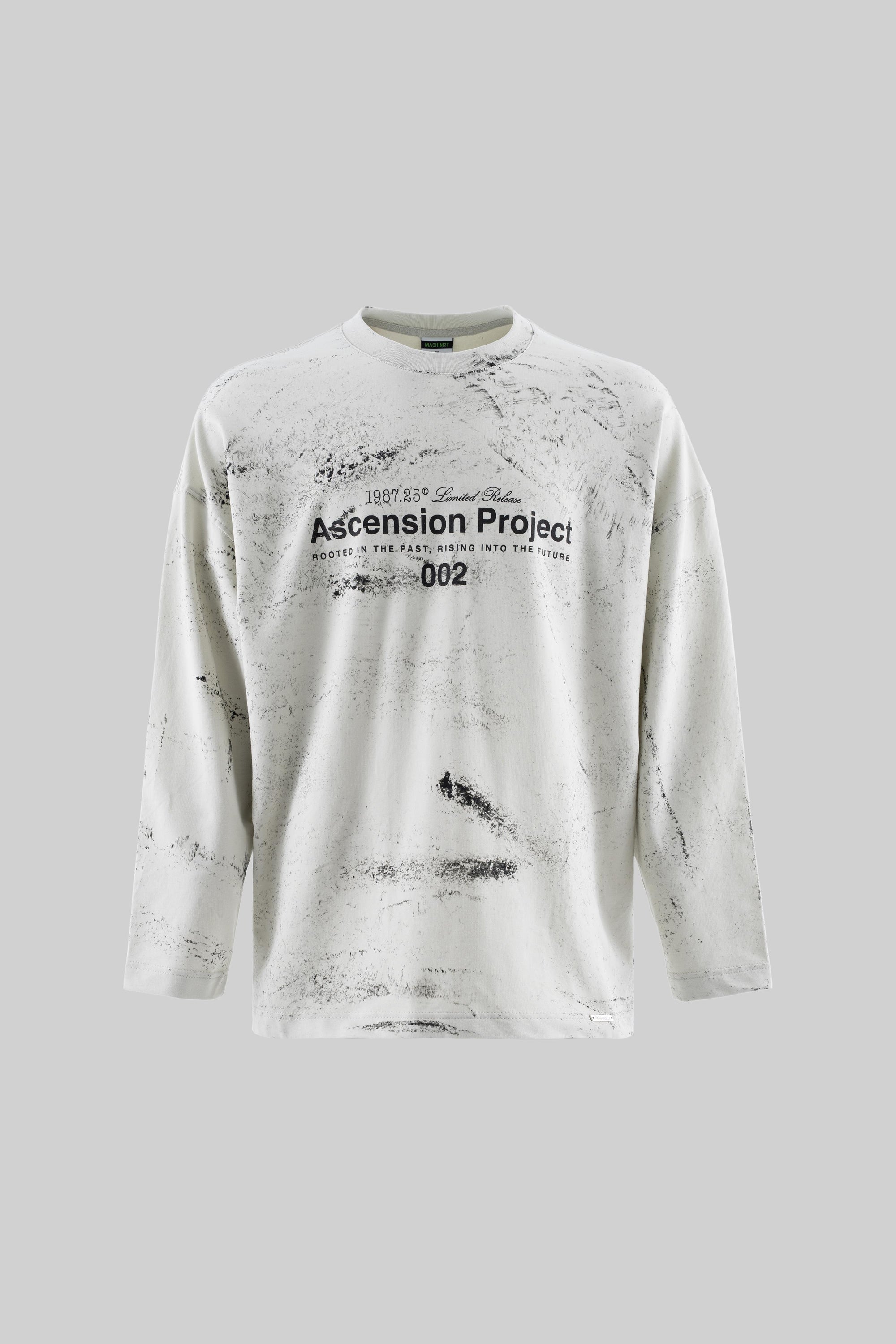 Erkek Hand Made Boya Baskılı Oversize Uzun Kollu Tişört Ekru