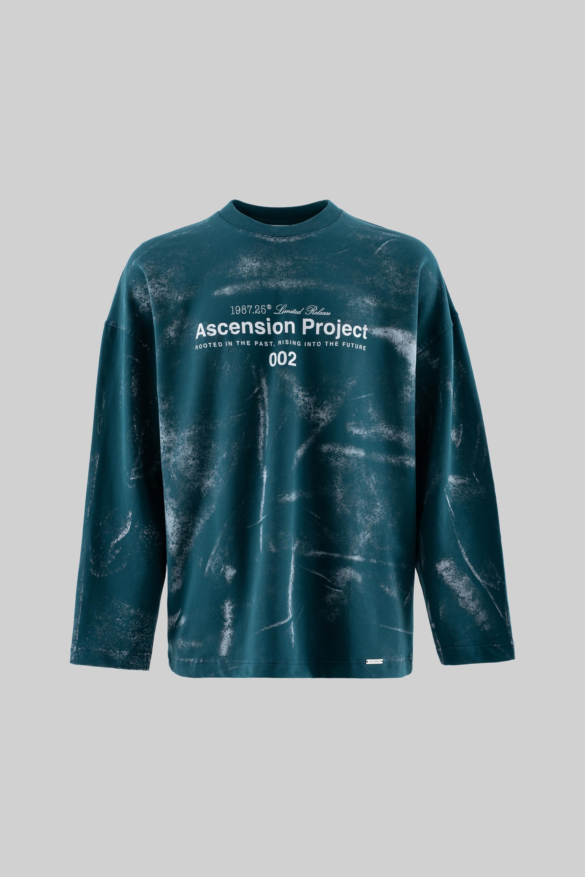 Erkek Hand Made Efekt Baskılı Oversize Uzun Kollu Tişört Uzay Grisi