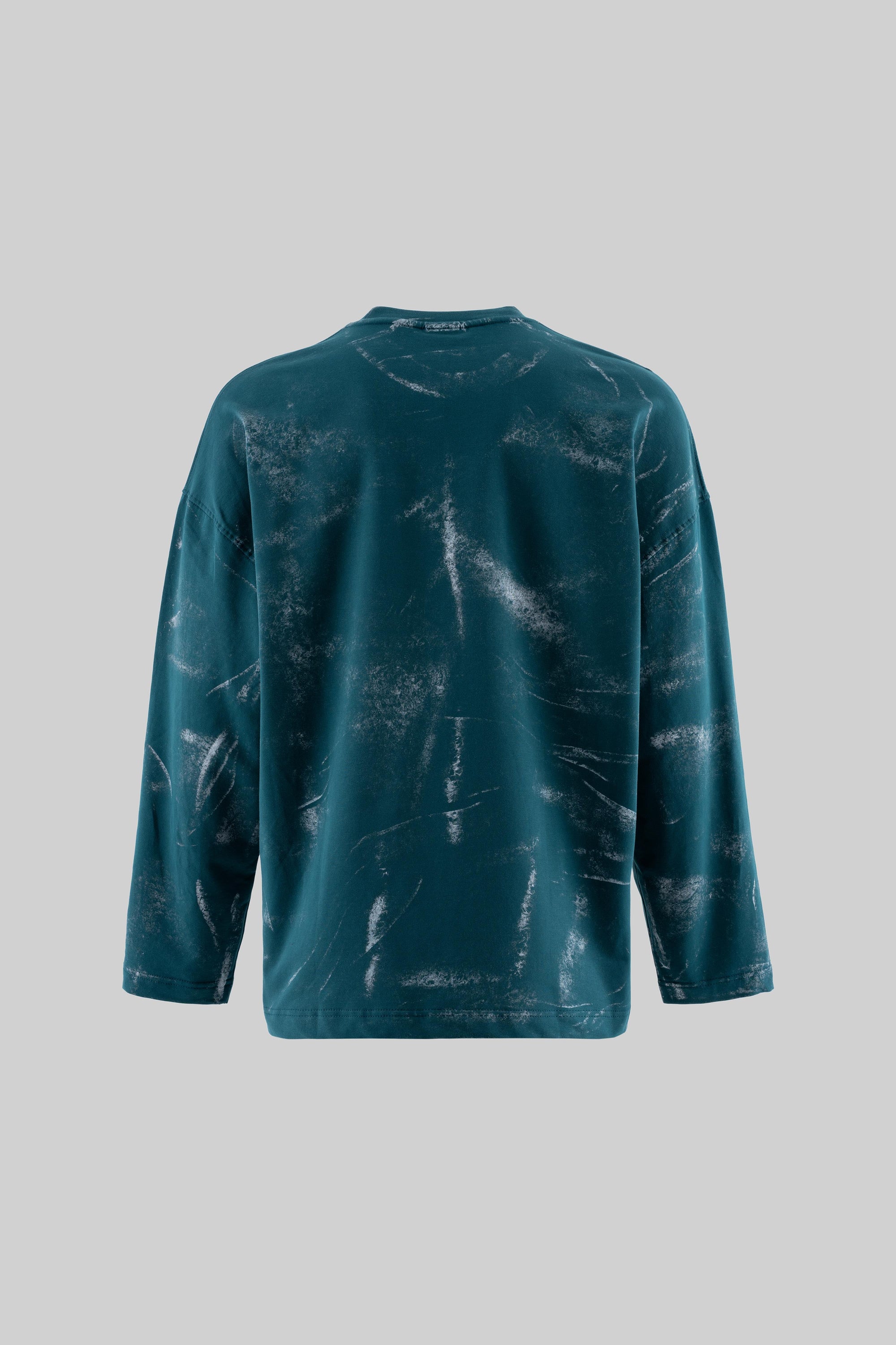 Erkek Hand Made Efekt Baskılı Oversize Uzun Kollu Tişört Gece Mavisi