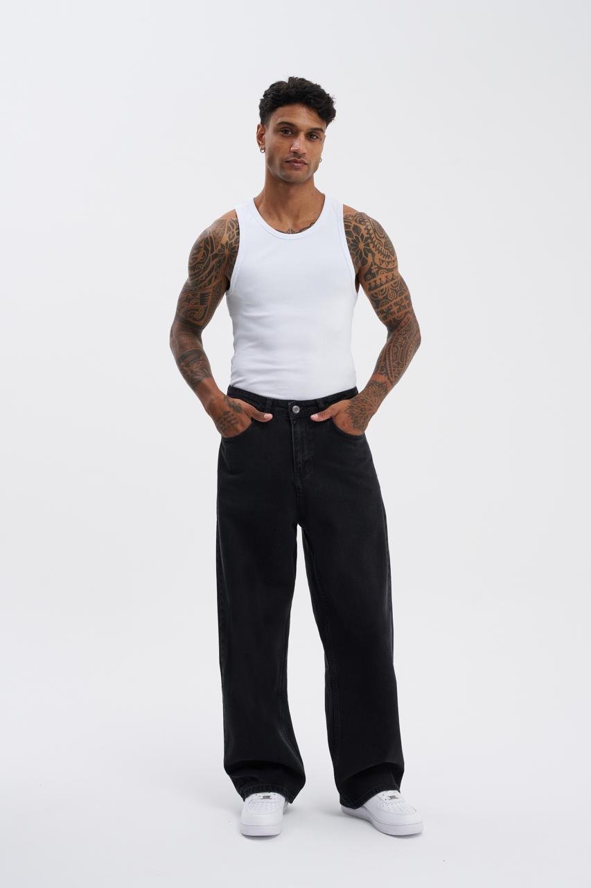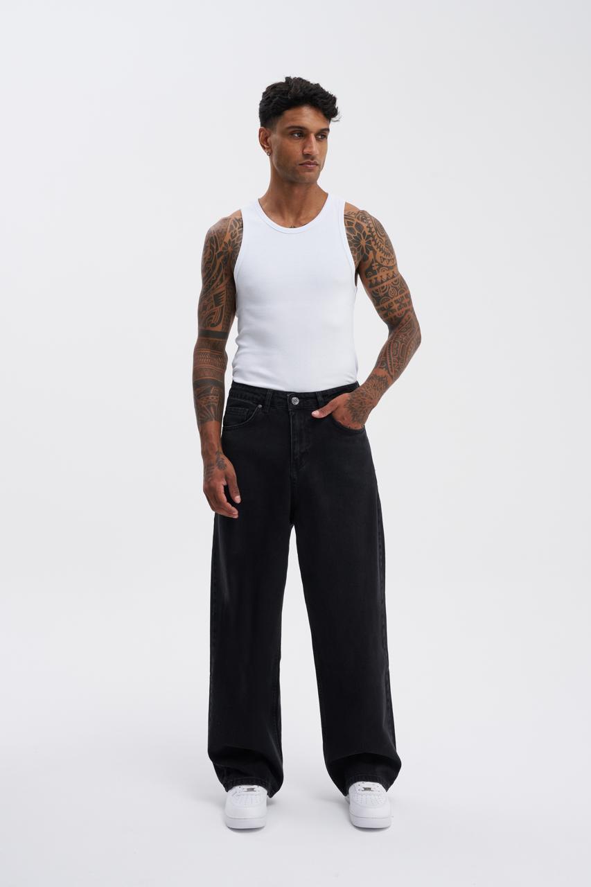 Erkek Relaxed Baggy Jean Pantolon Siyah