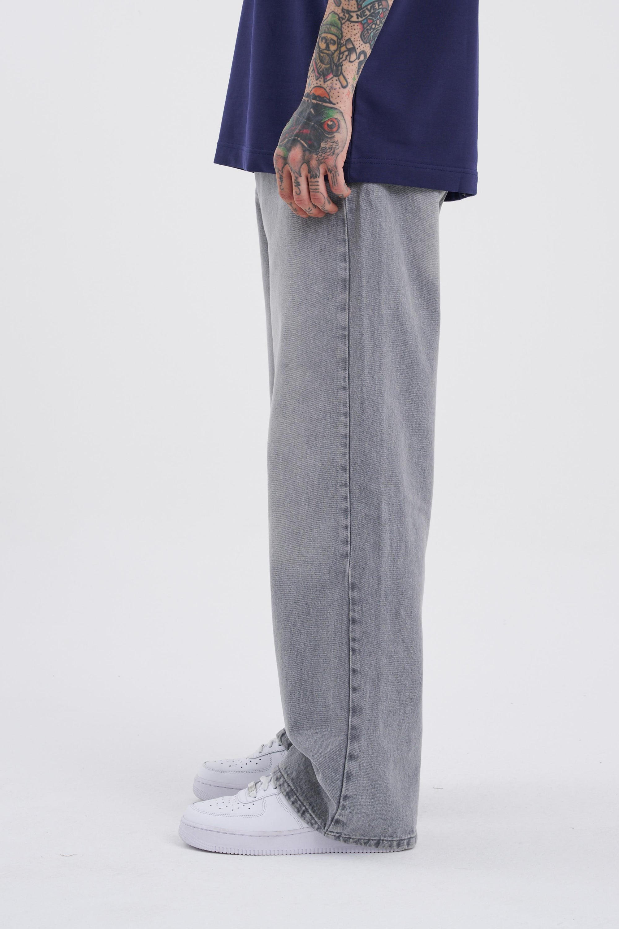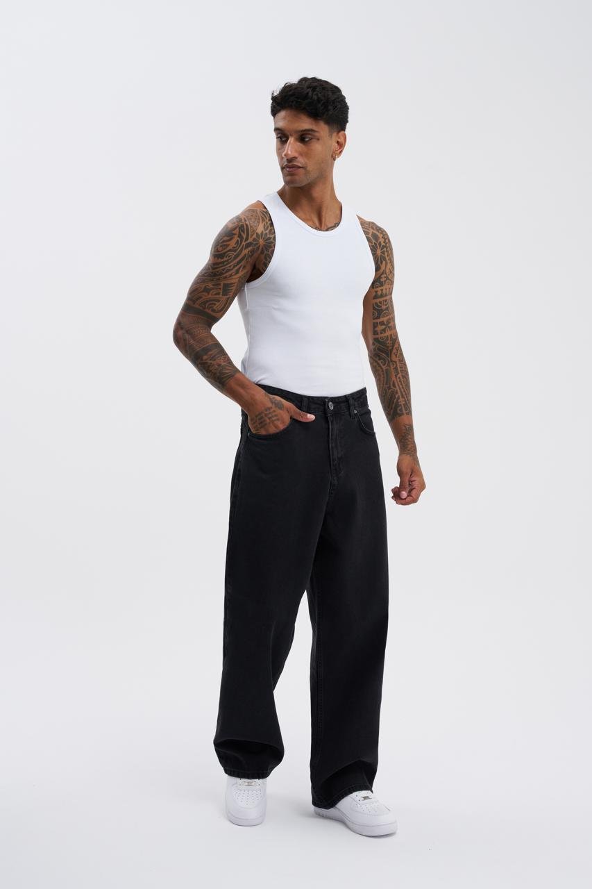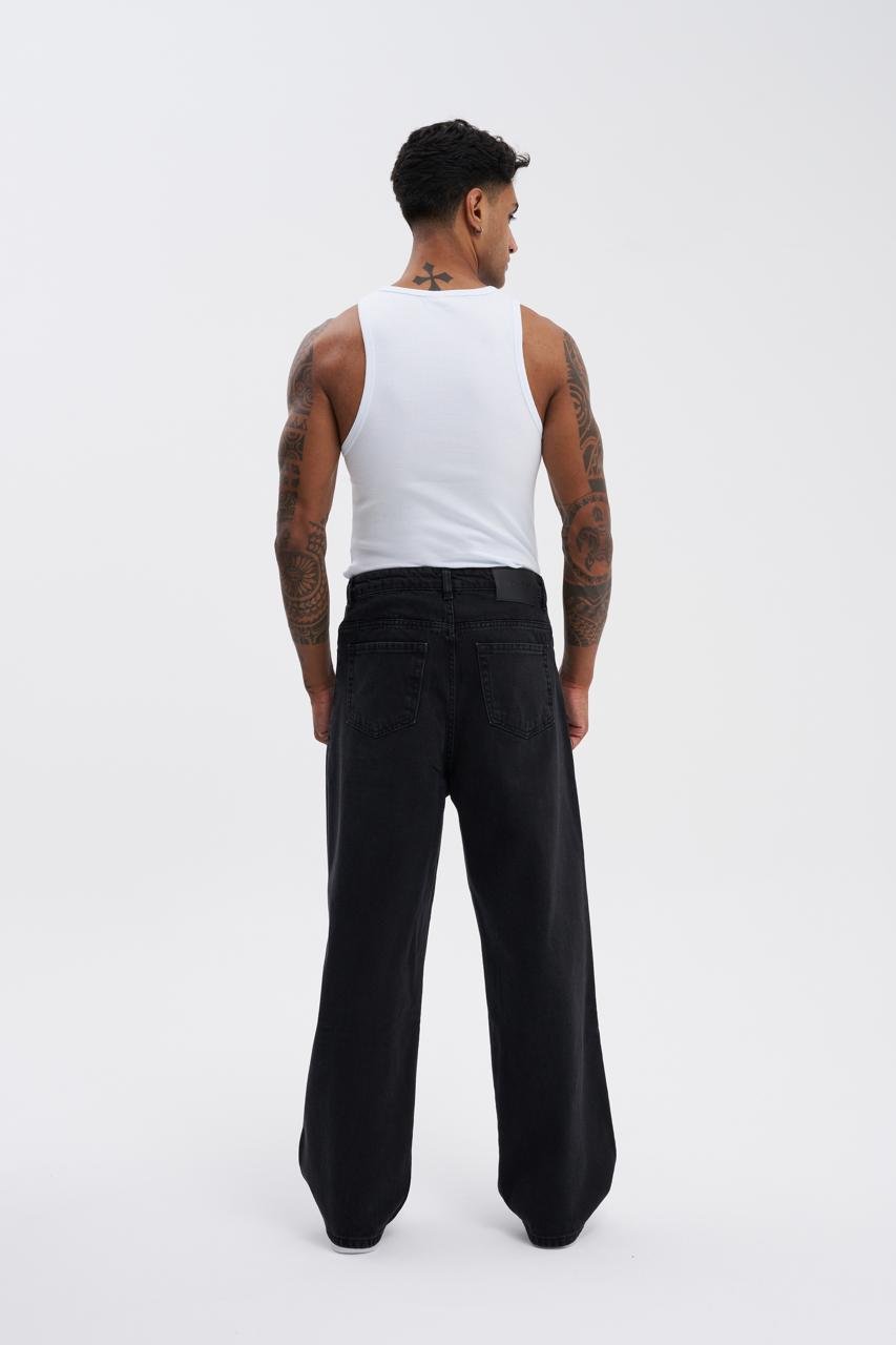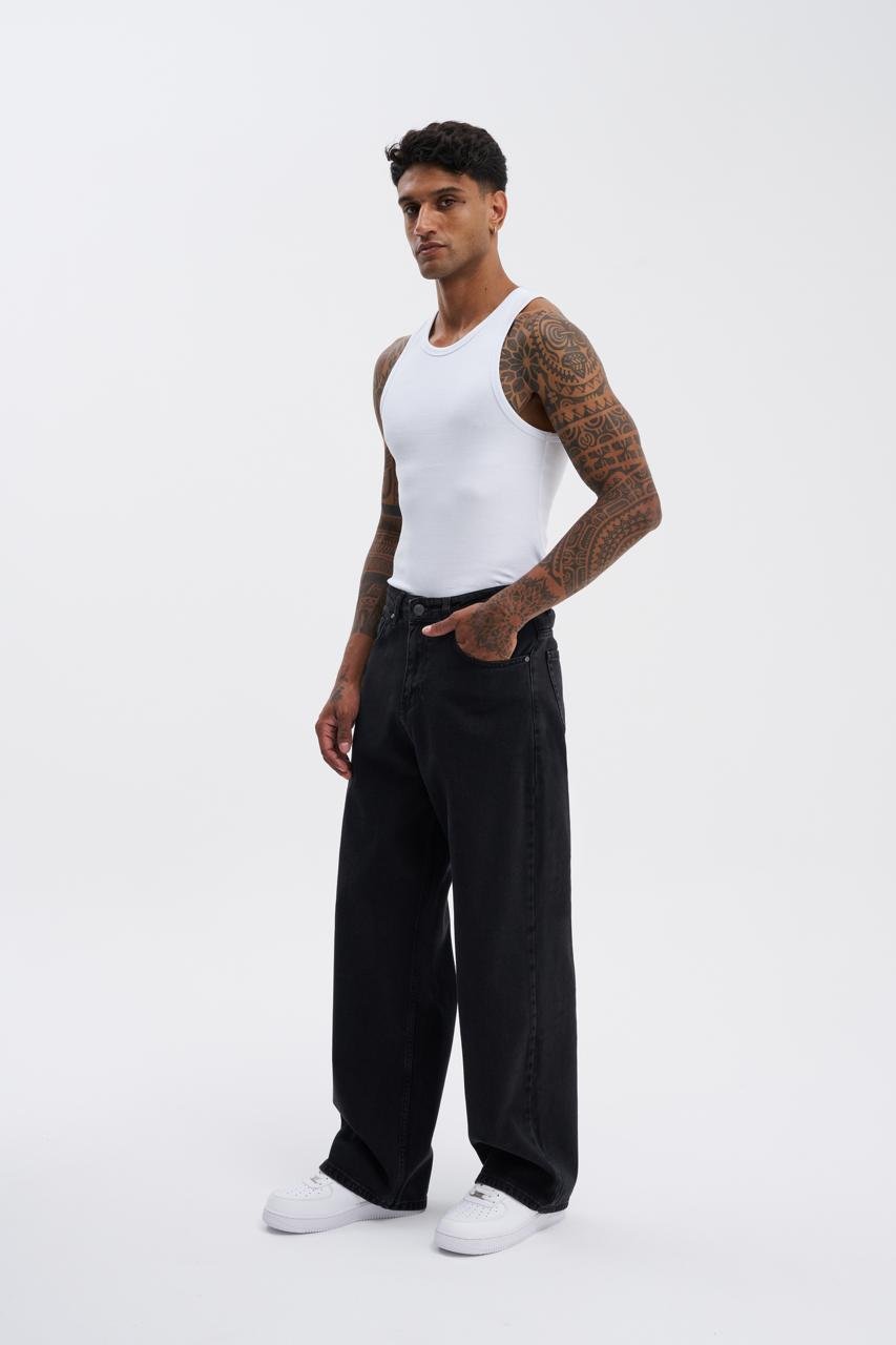 Erkek Basic Baloon Fit Baggy Jean Pantolon Açık Siyah