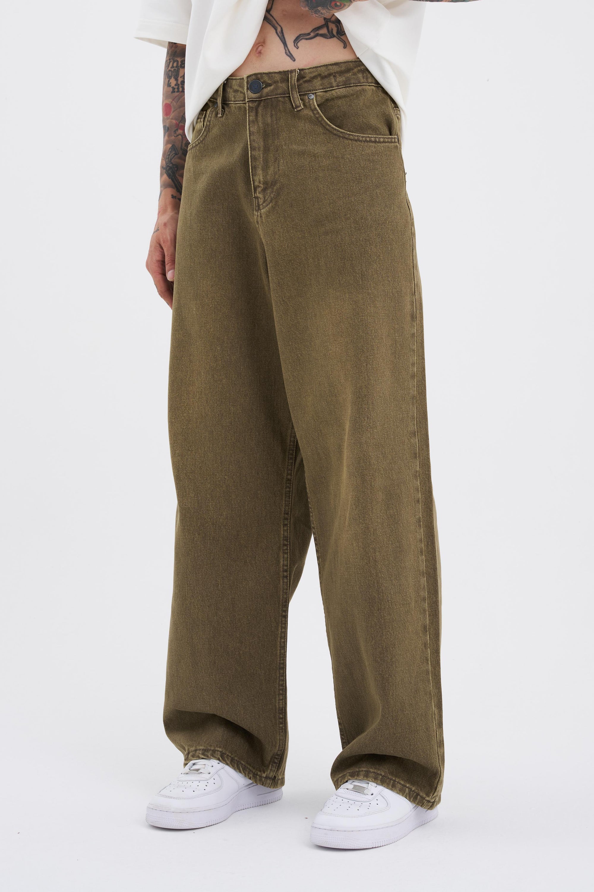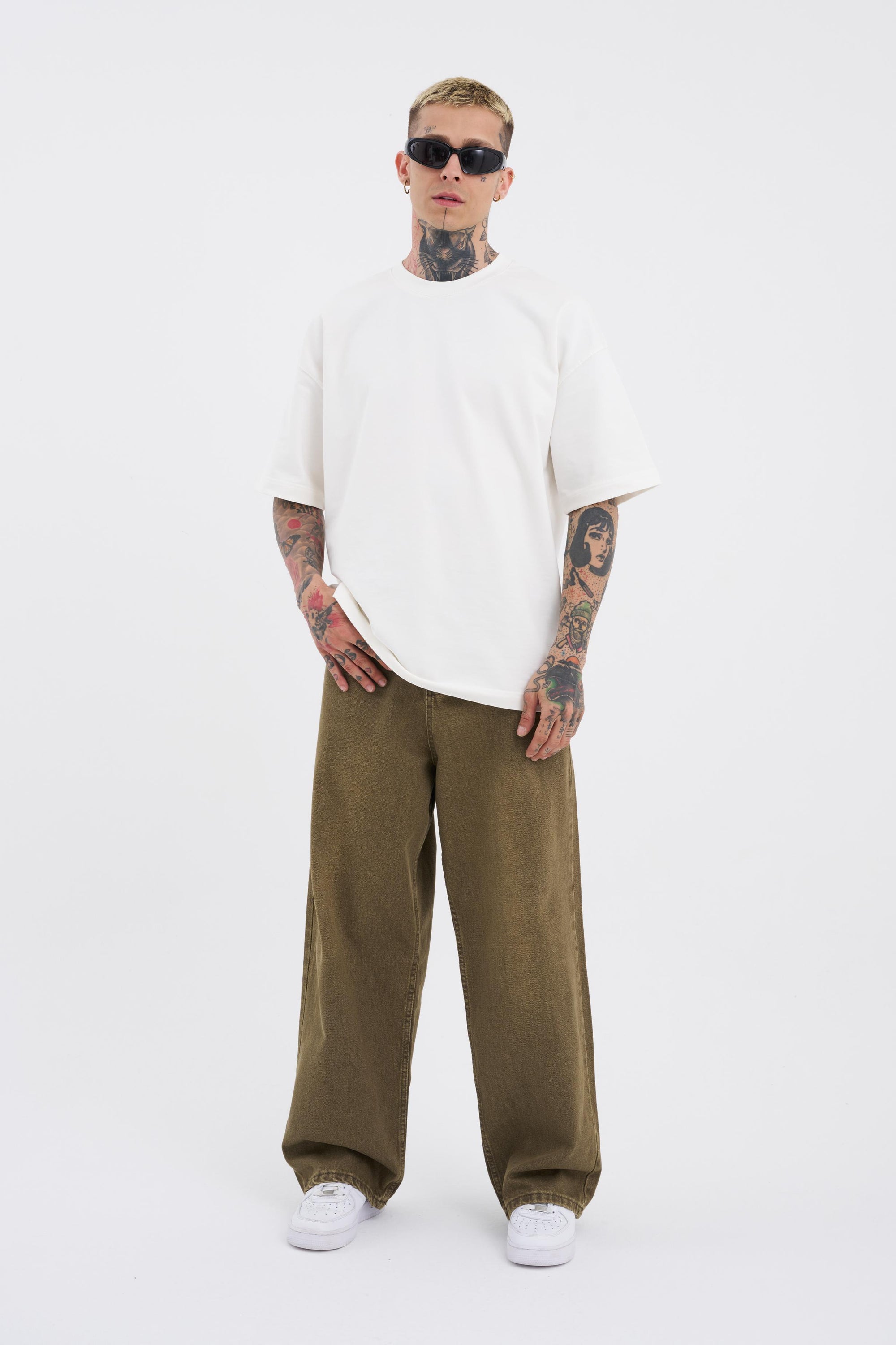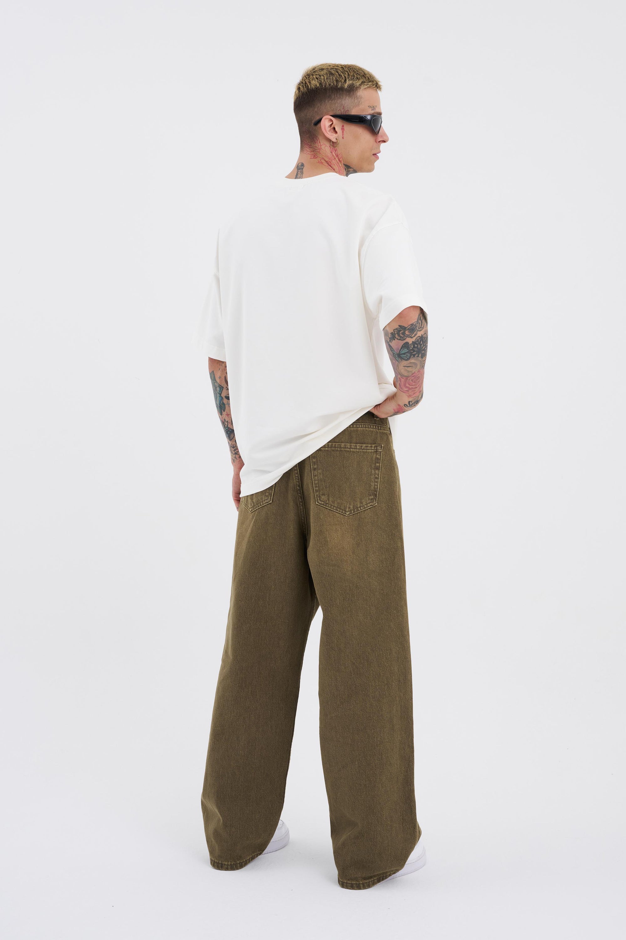Erkek Oversize Baggy Jean Pantolon Asit Haki