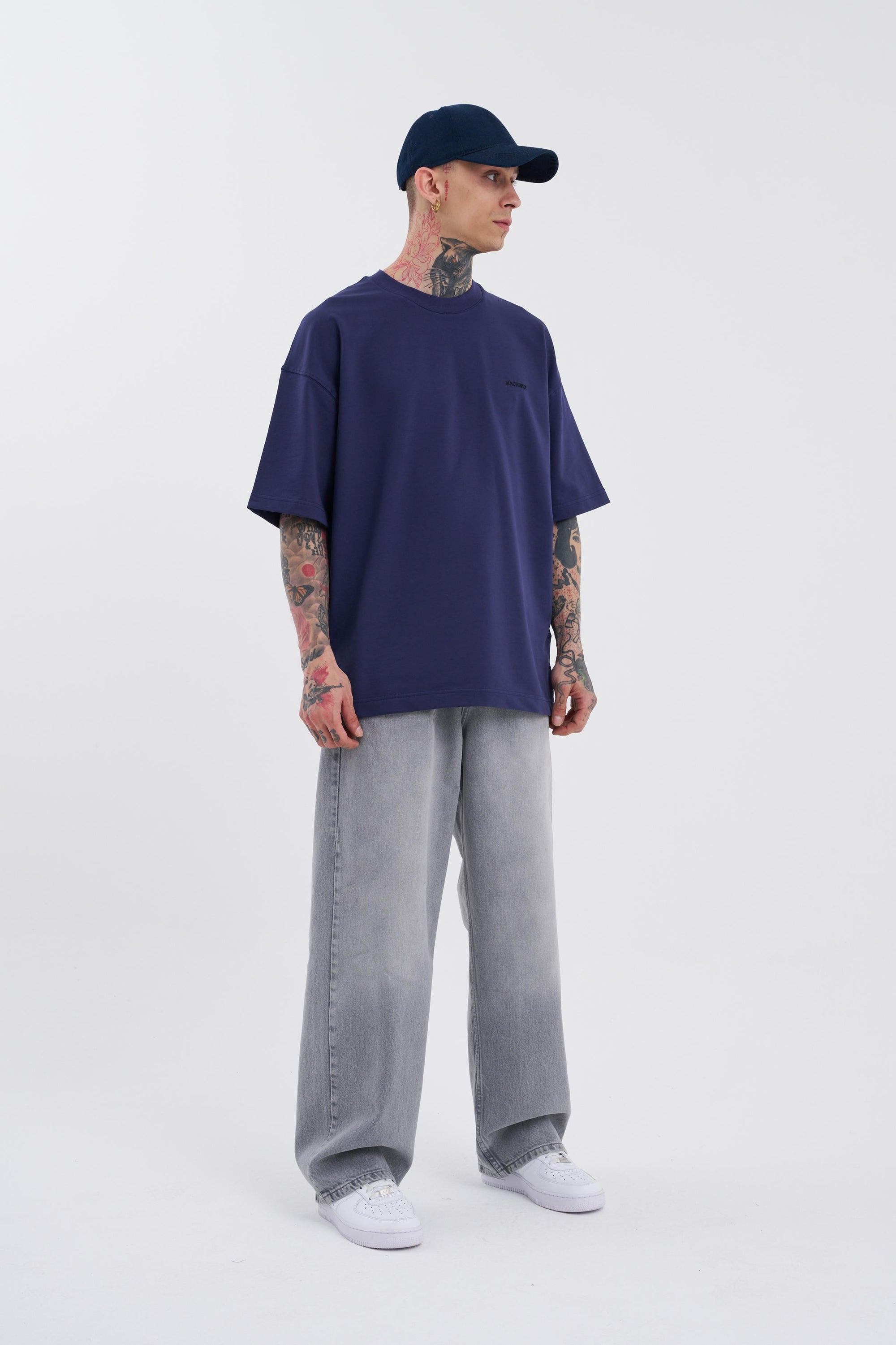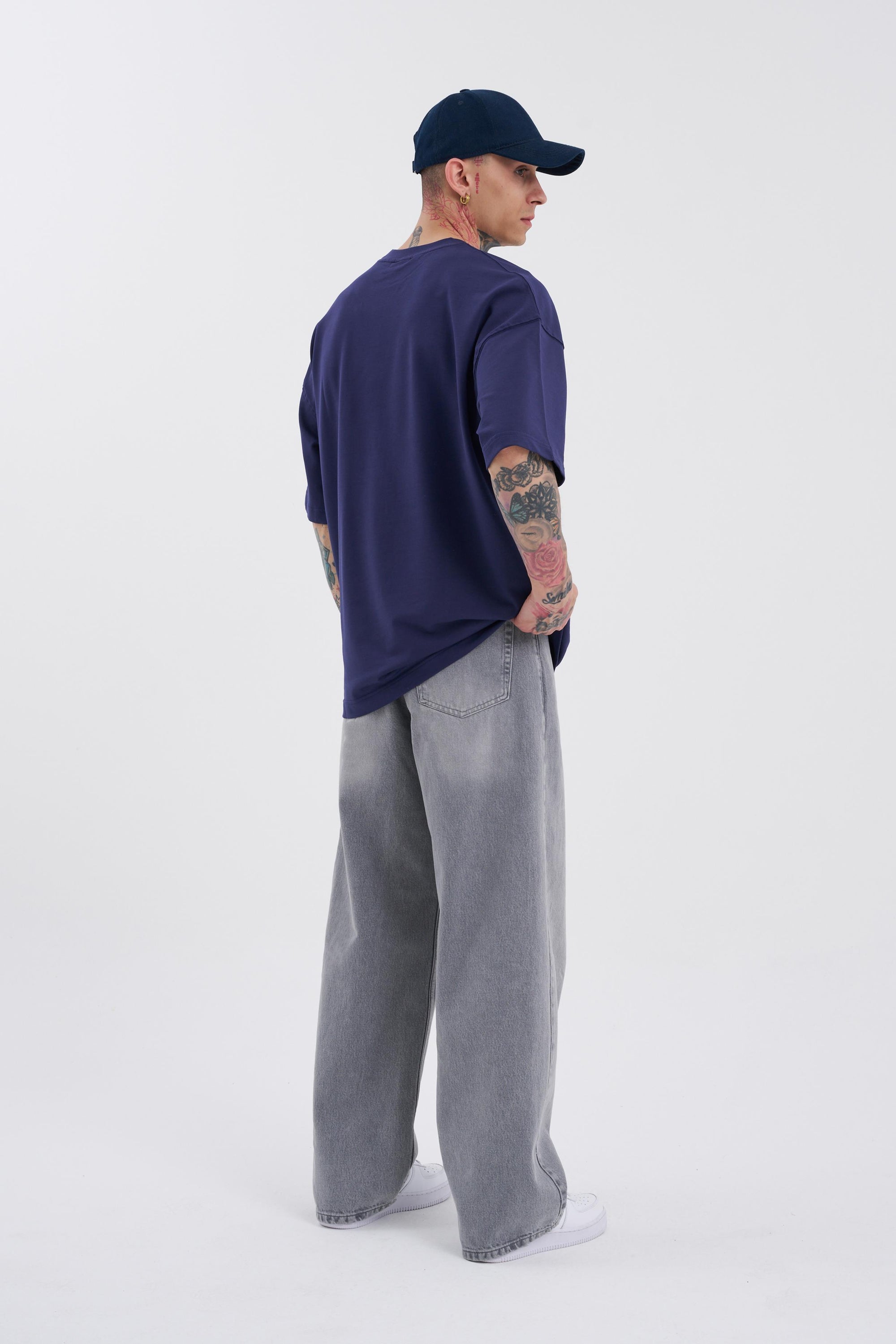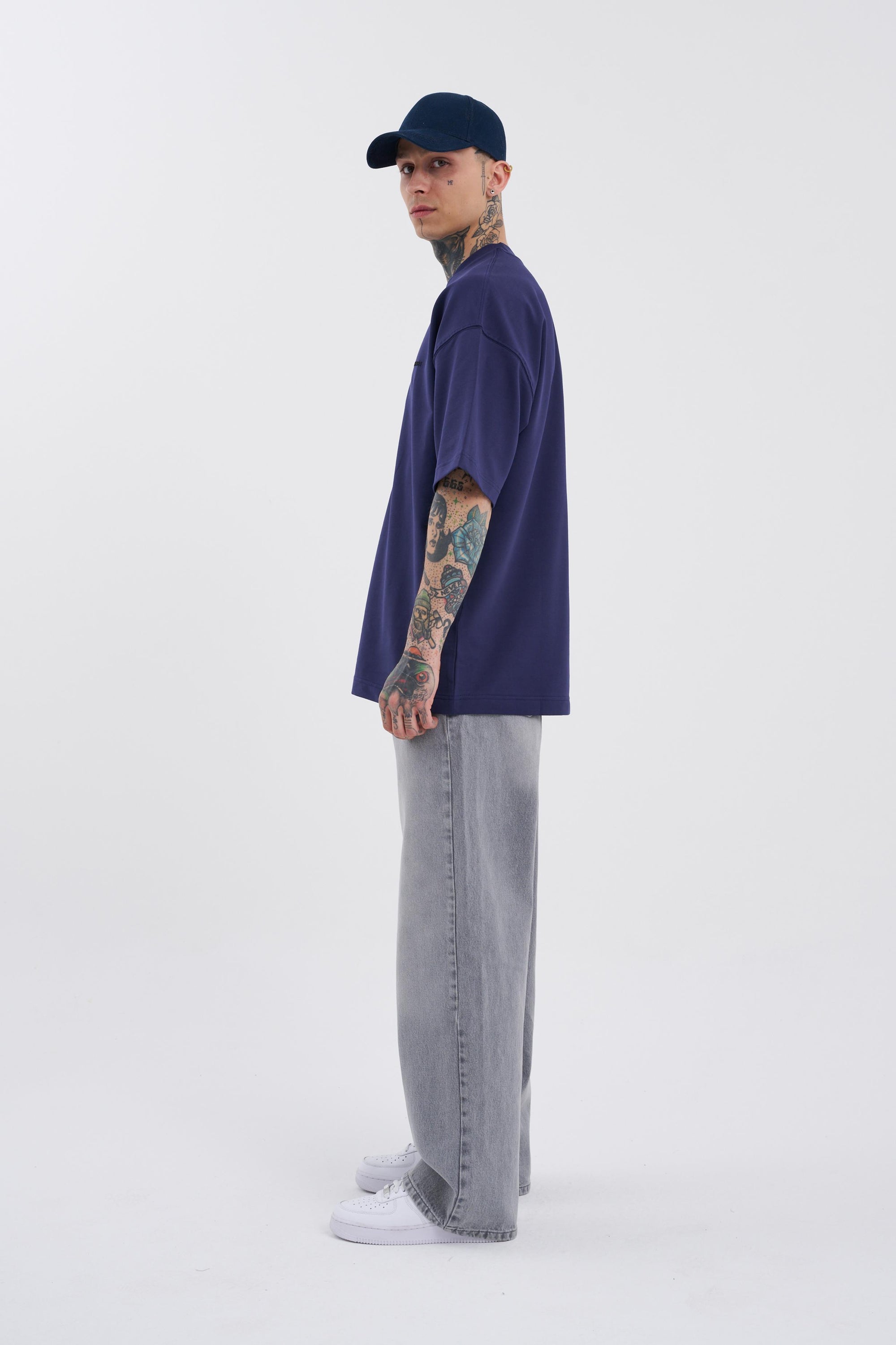 Erkek Basic Super Pamuklu Oversize Tişört Lacivert