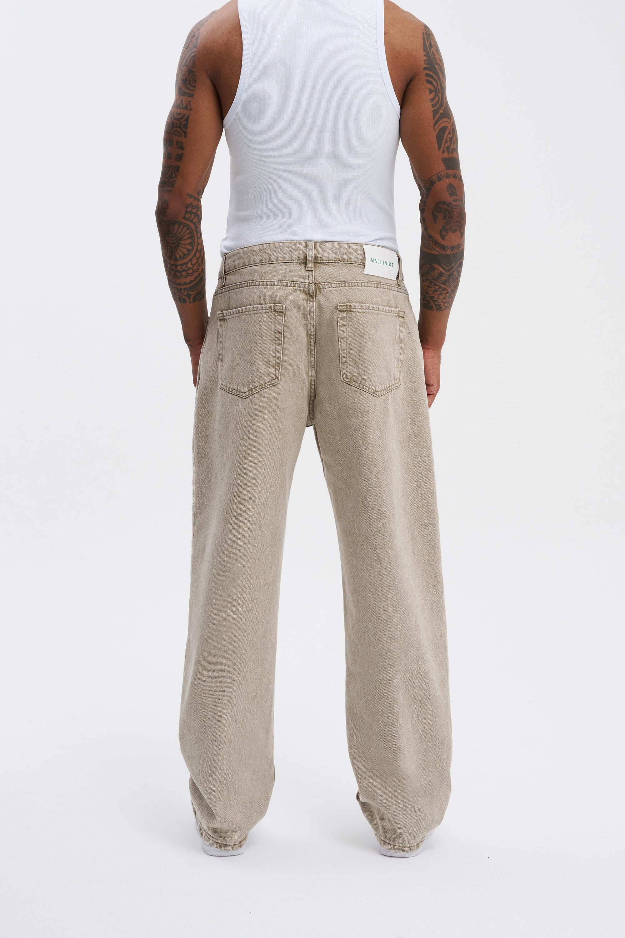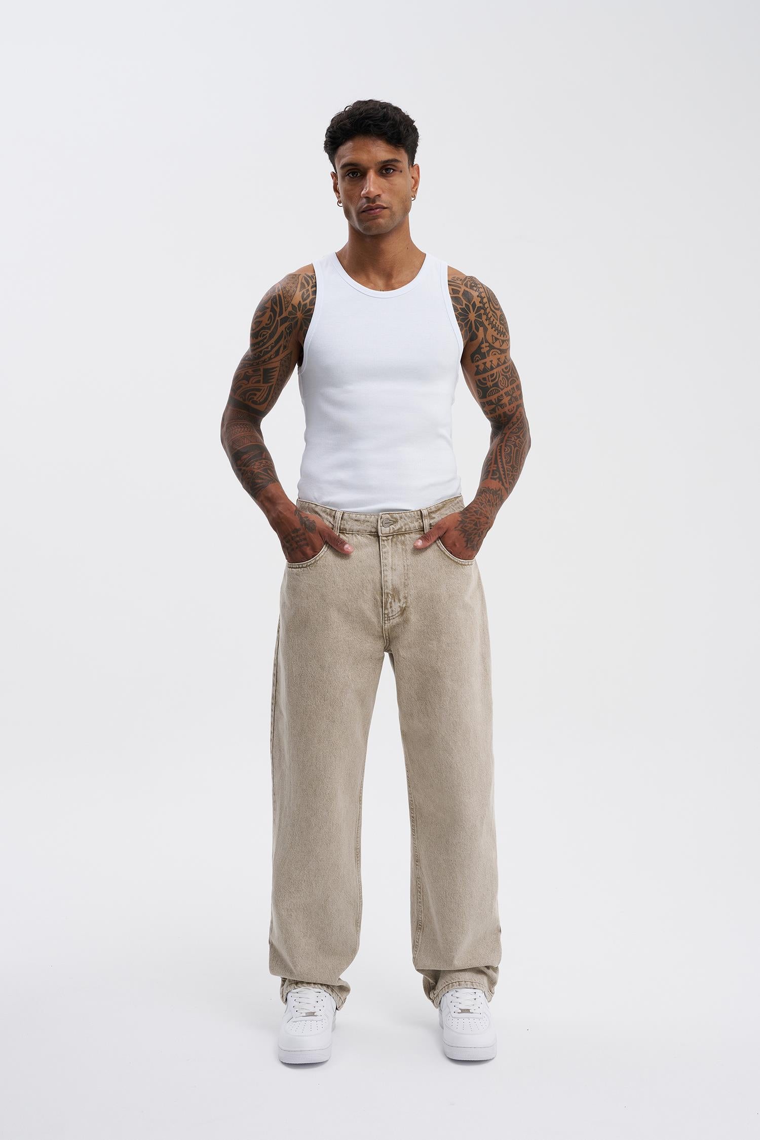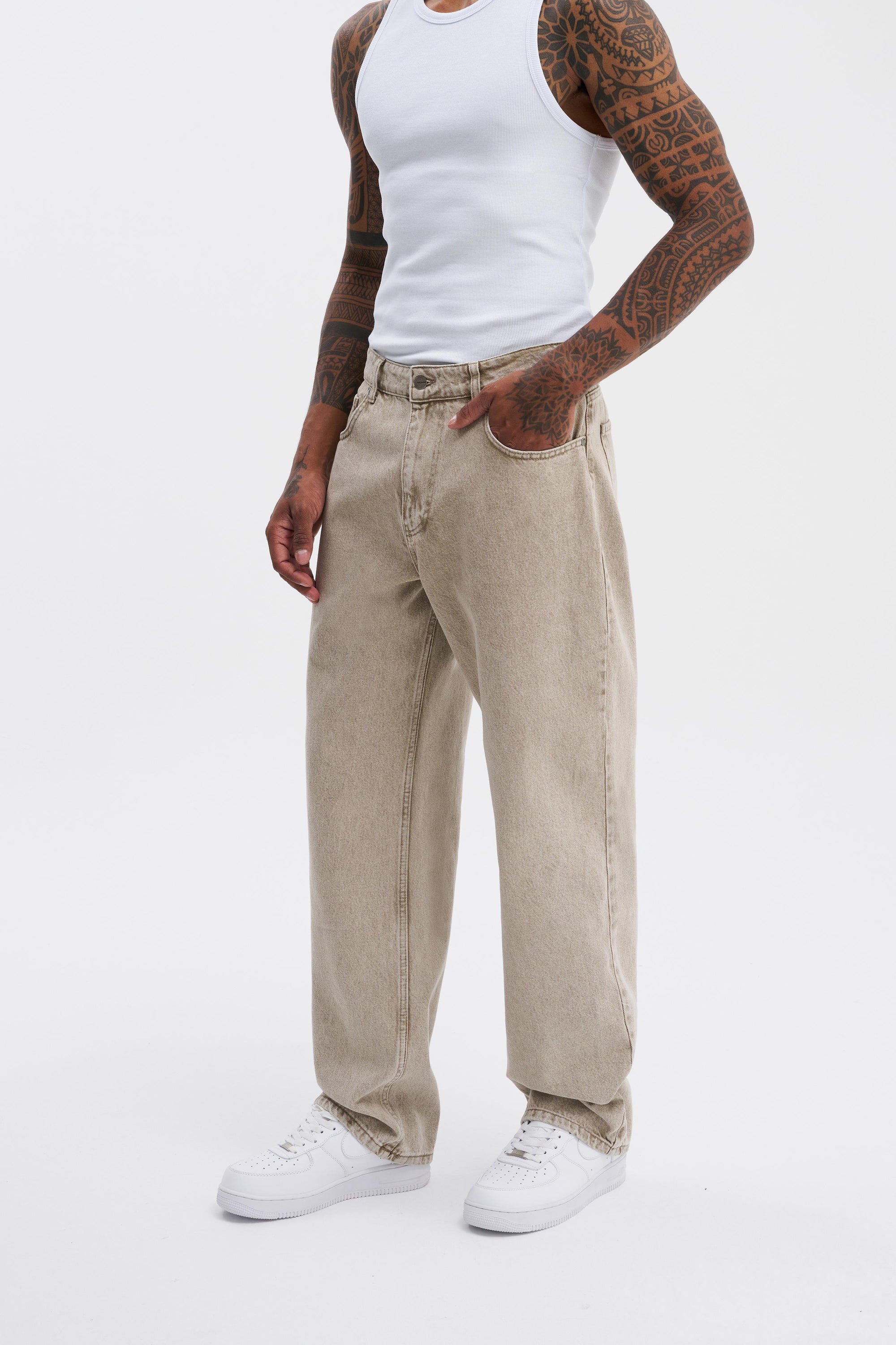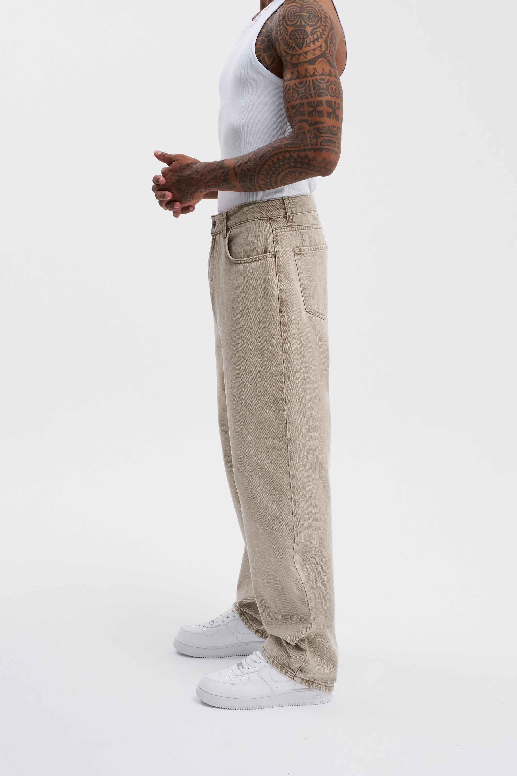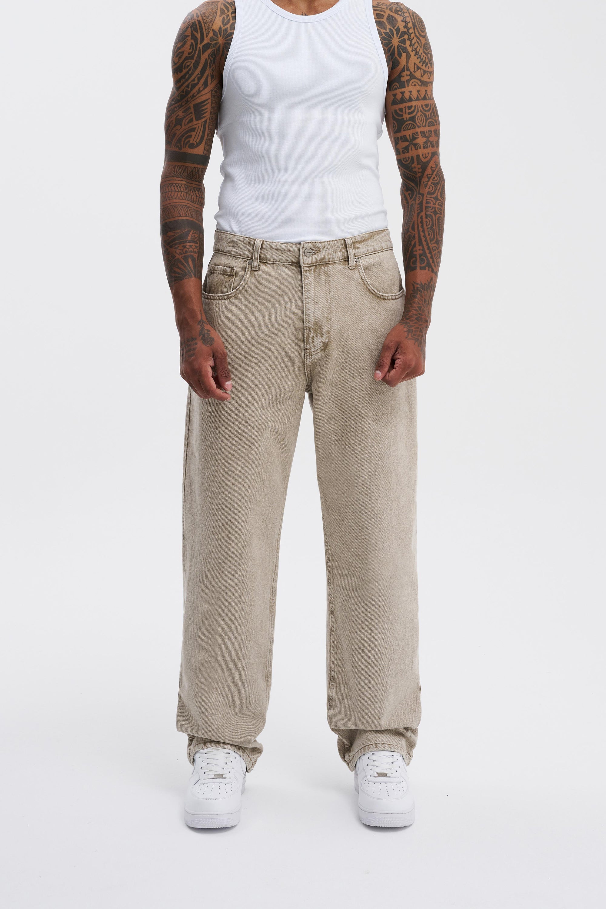 Erkek Relaxed Baggy Jean Pantolon Bej