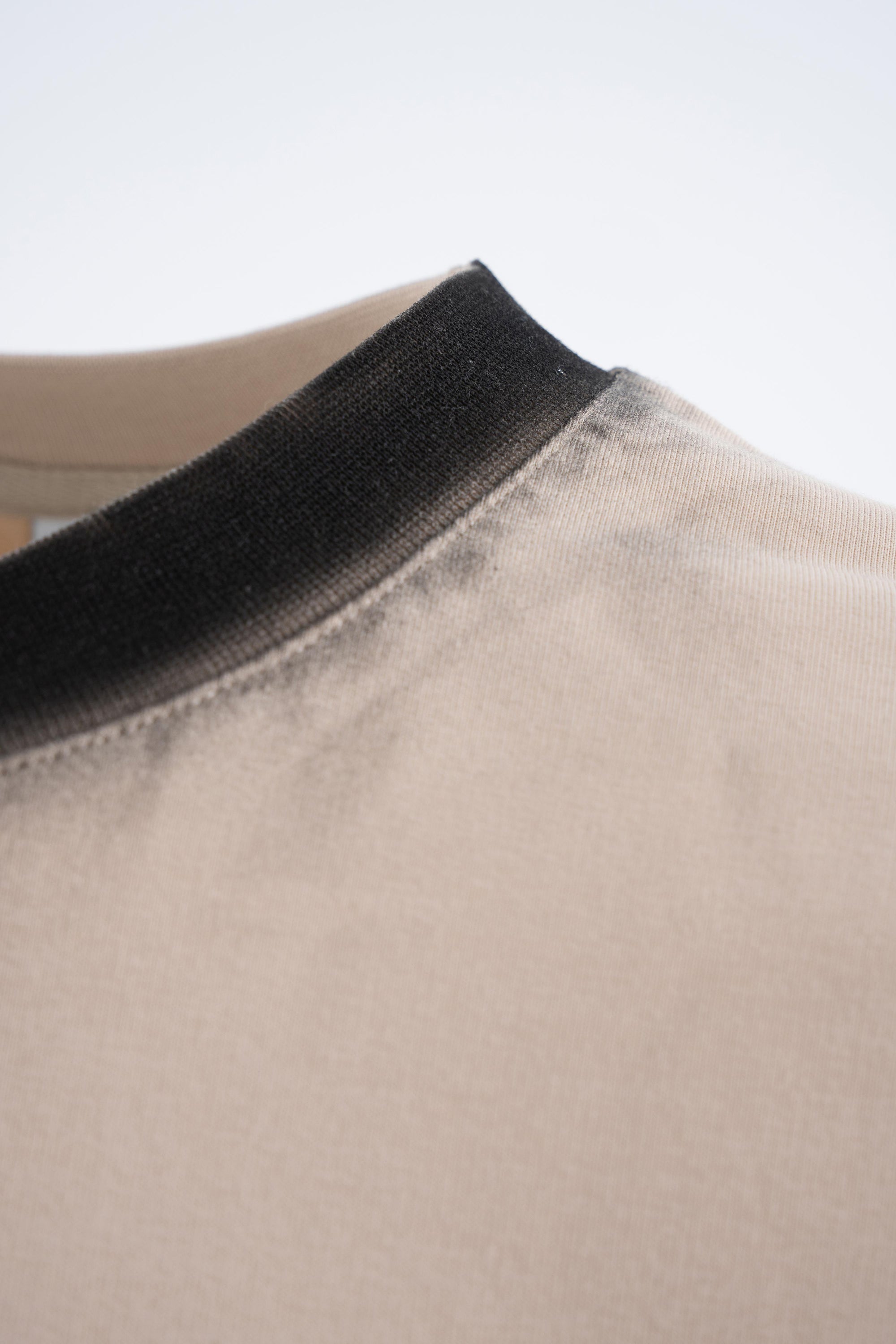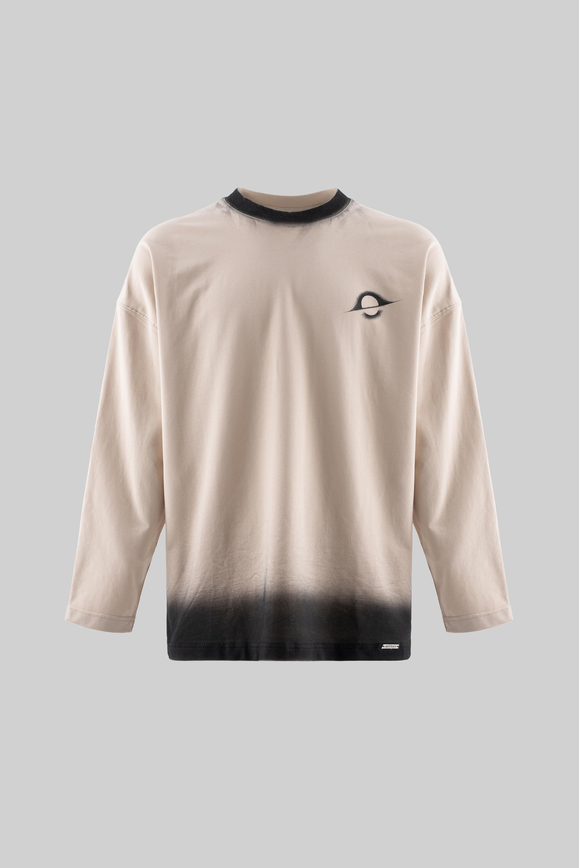 Erkek Sprey Boya Baskılı Oversize Uzun Kollu Tişört Açık Bej