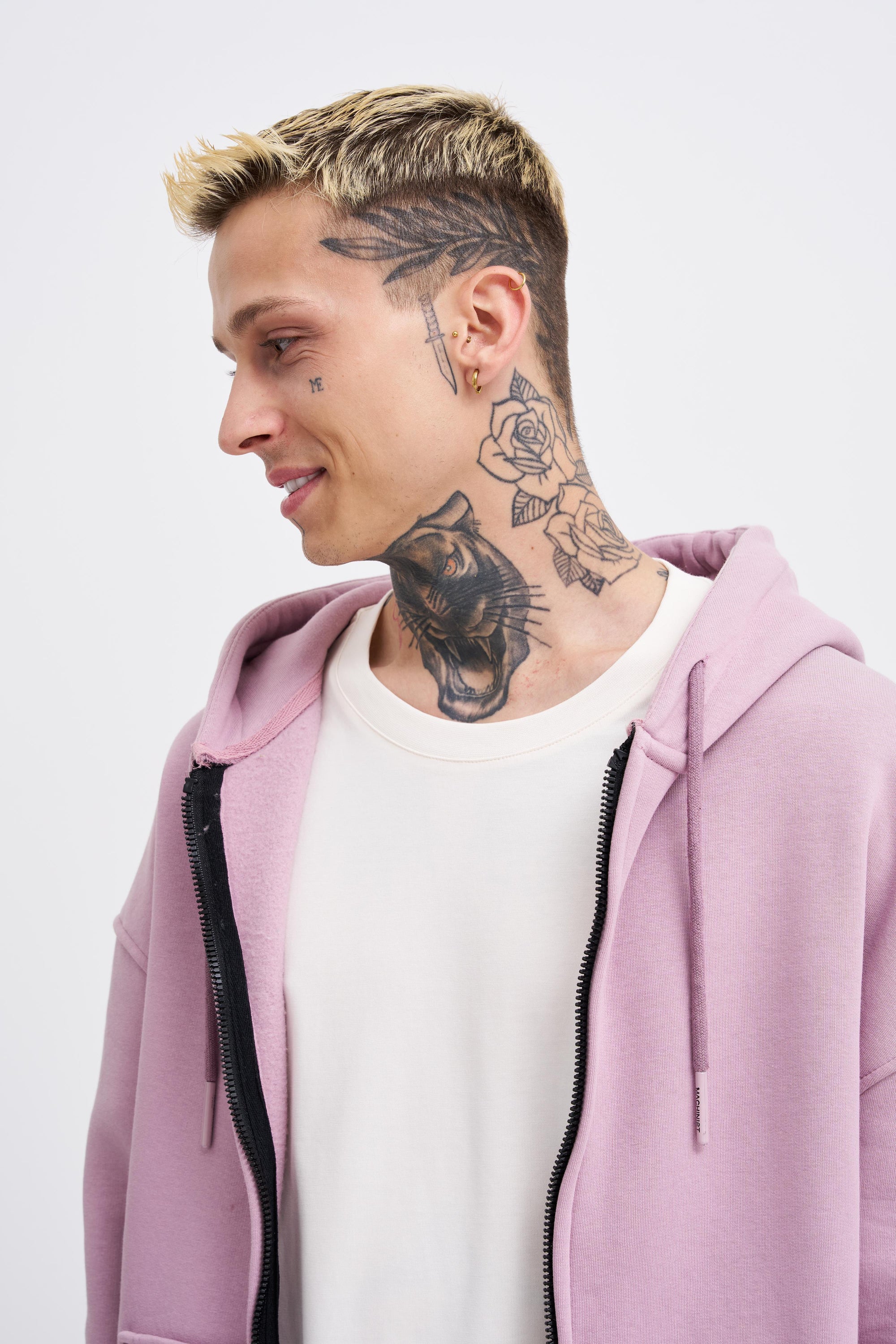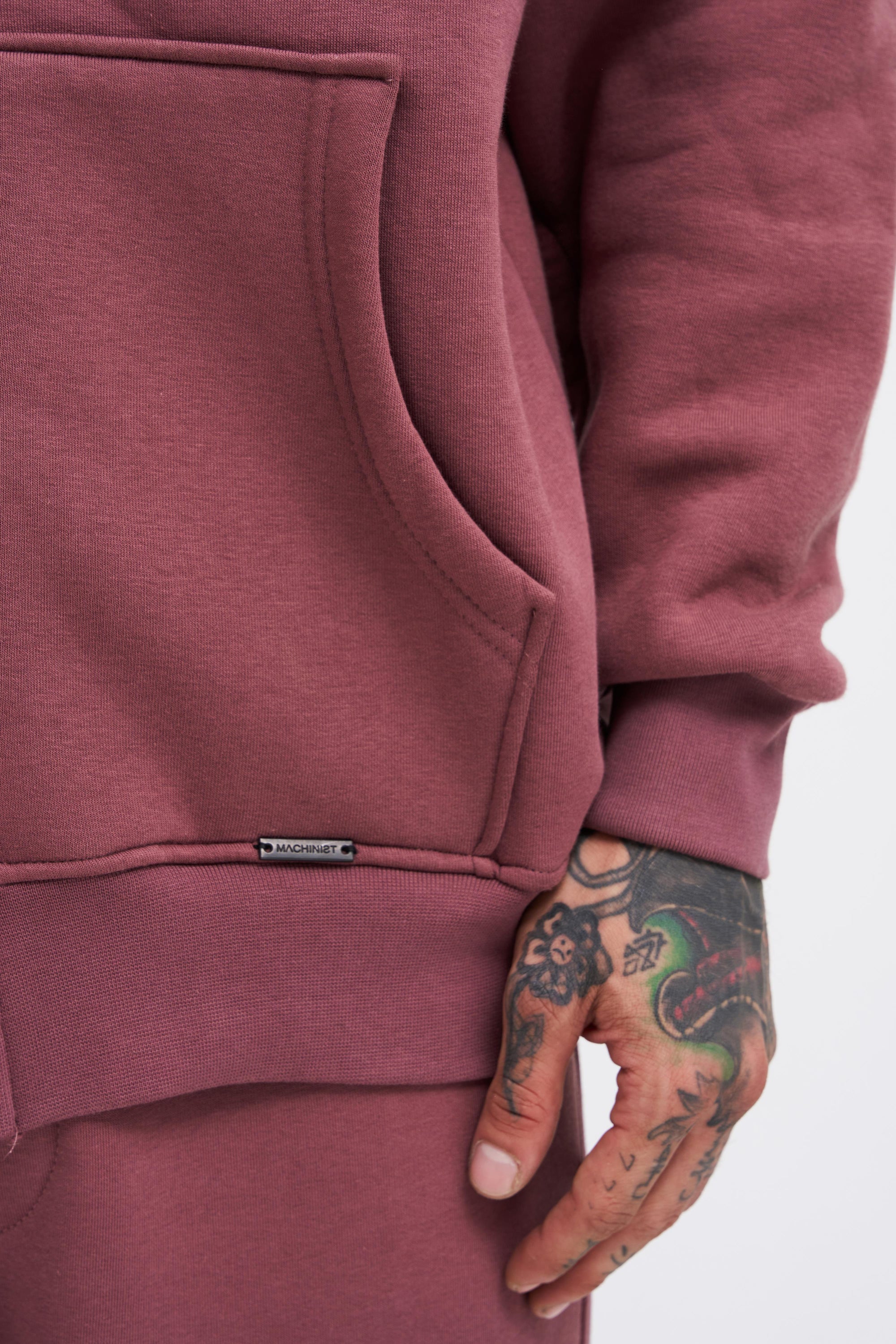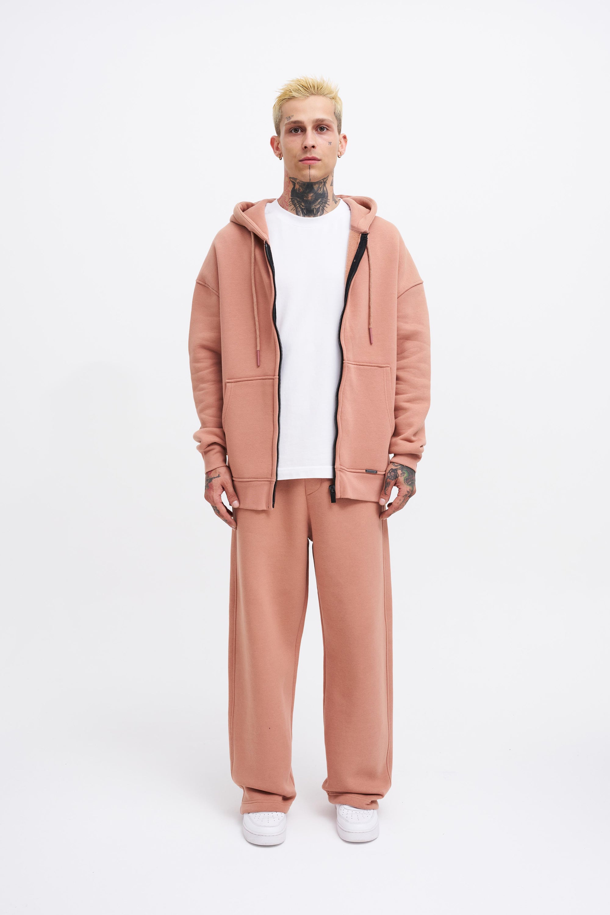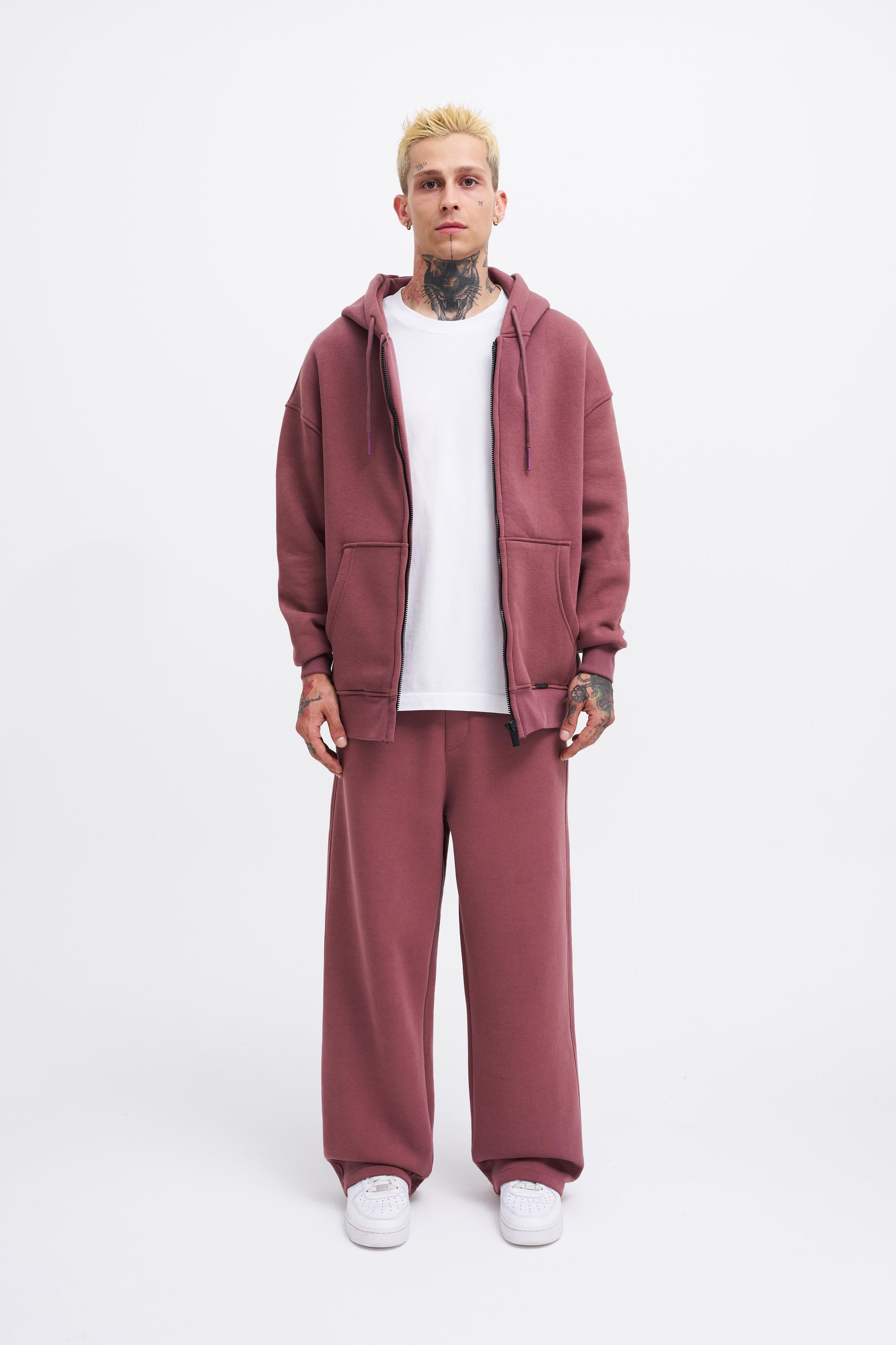 Erkek Oversize Fermuarlı Cepli Kapüşonlu Basic Sweatshirt Kirli Pembe