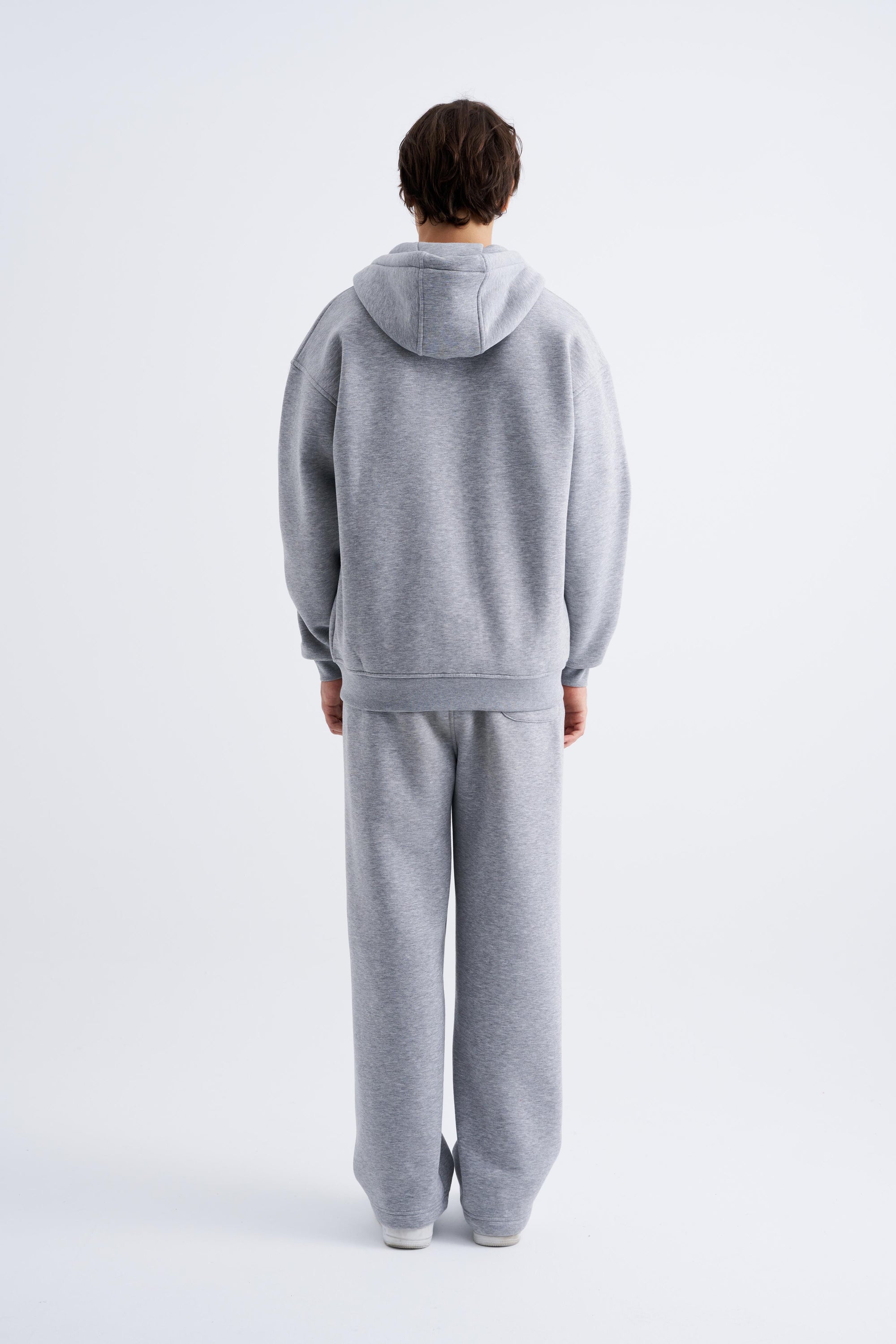 Erkek Oversize Fermuarlı Cepli Kapüşonlu Basic Sweatshirt Gri Melanj