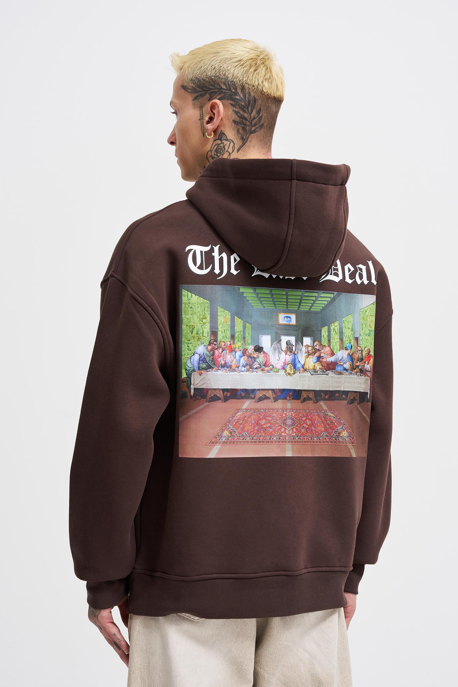 Erkek The Last Deal Baskılı Oversize Kahverengi Sweatshirt